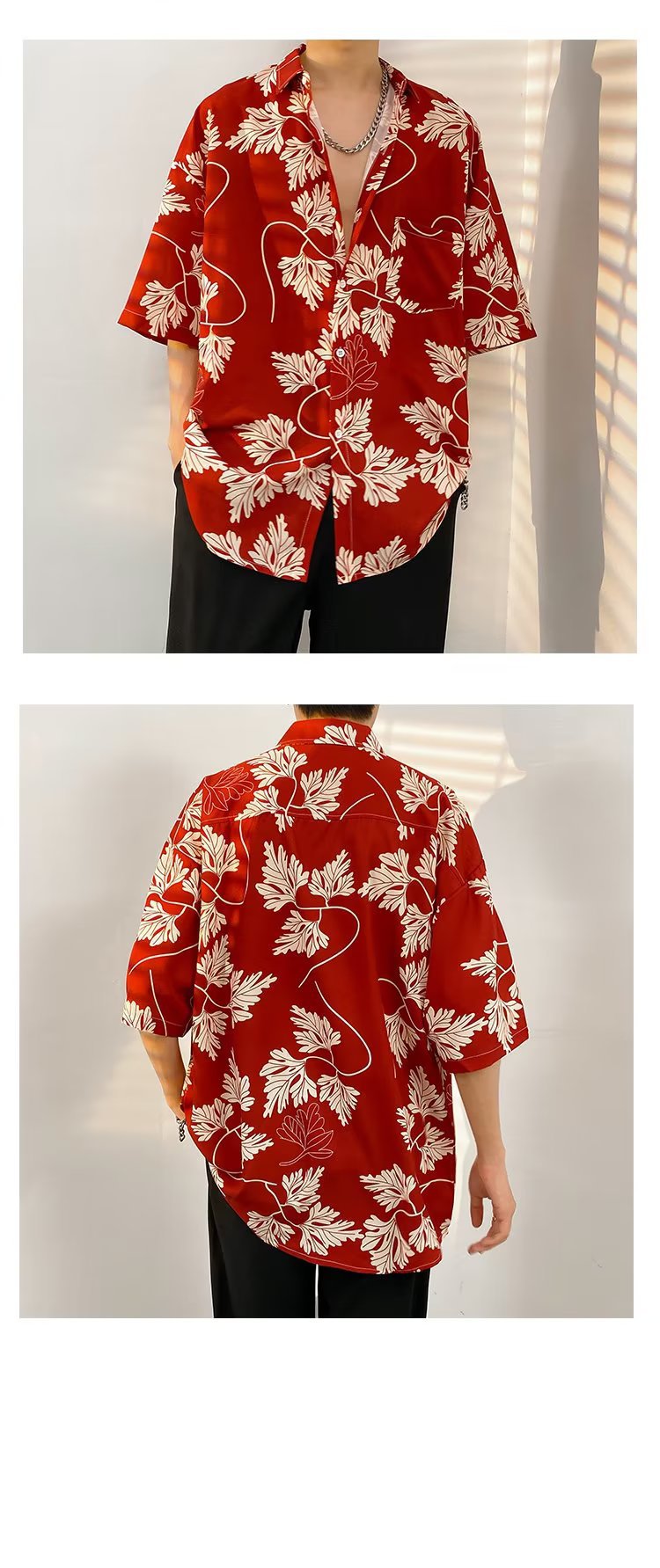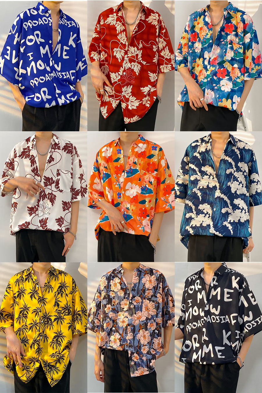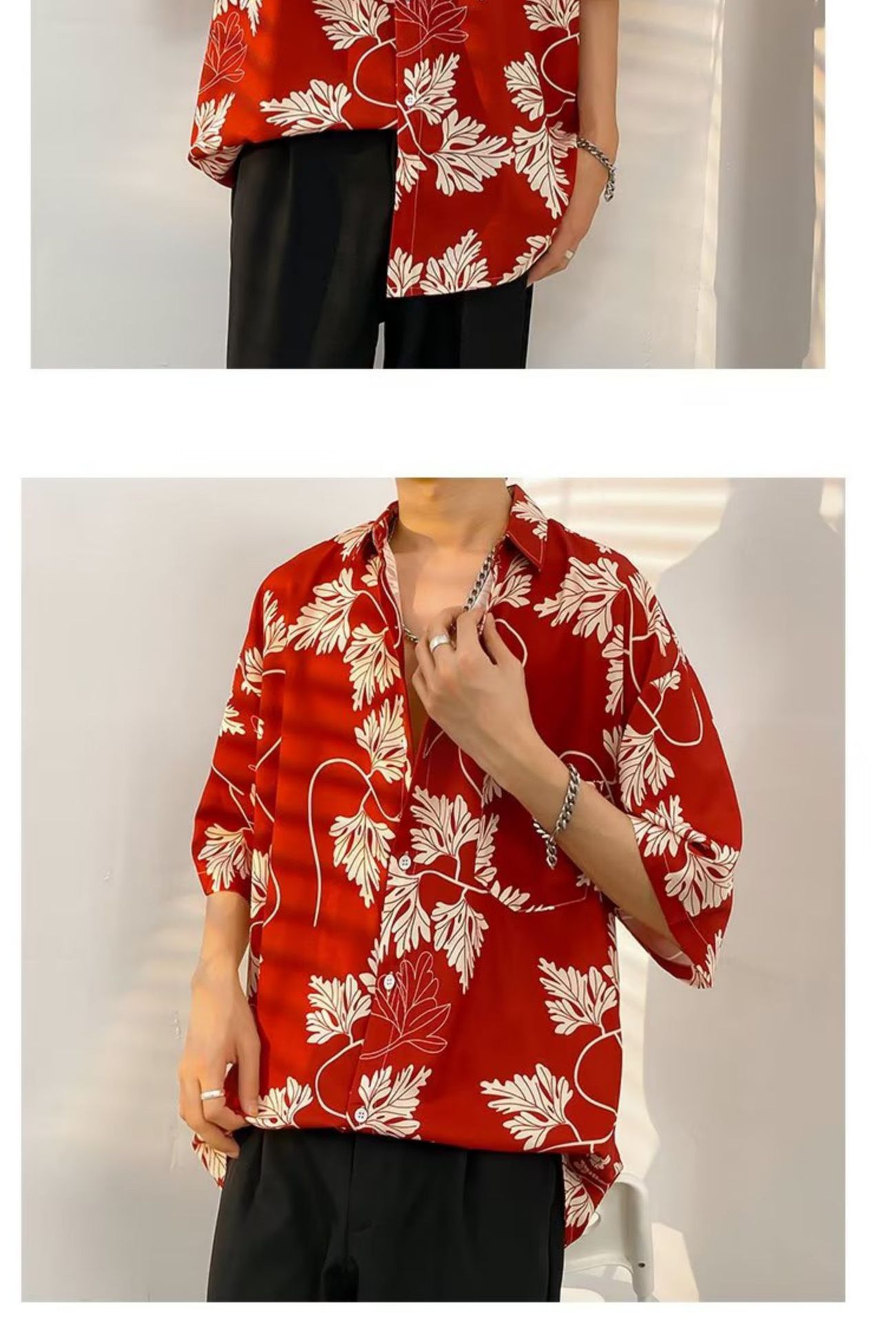 Hong Kong estilo Retro Vintage floral camisa manga corta Estilo Hawaiano tailandés diseño Ruan guapo camisa suelta para hombres y mujeres