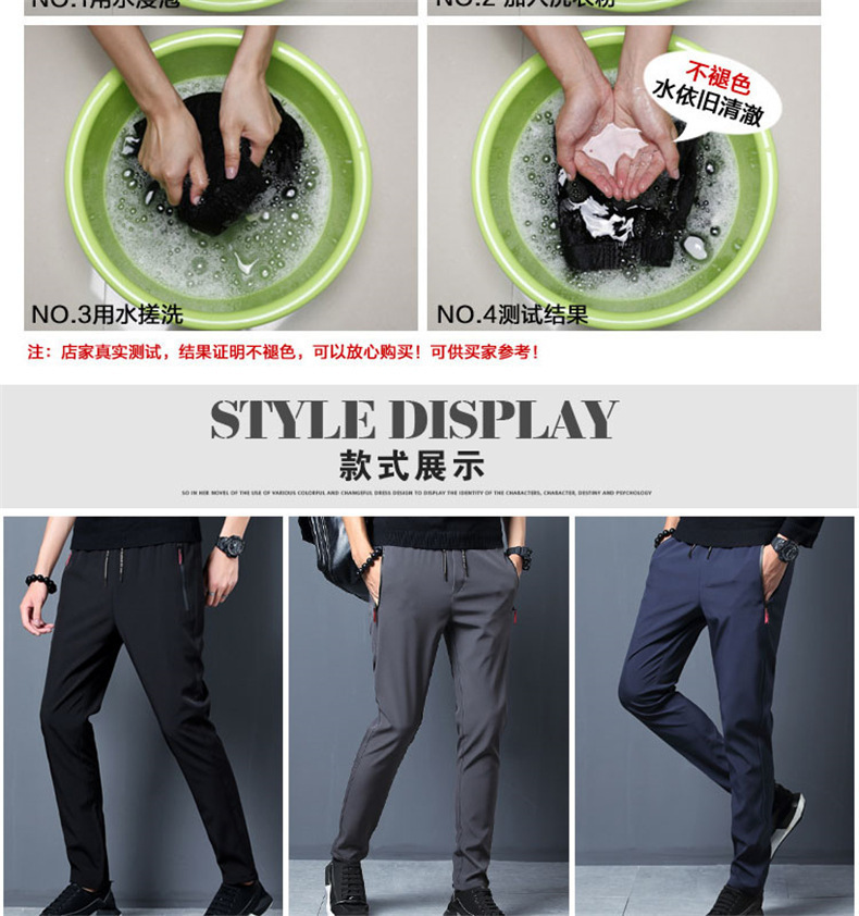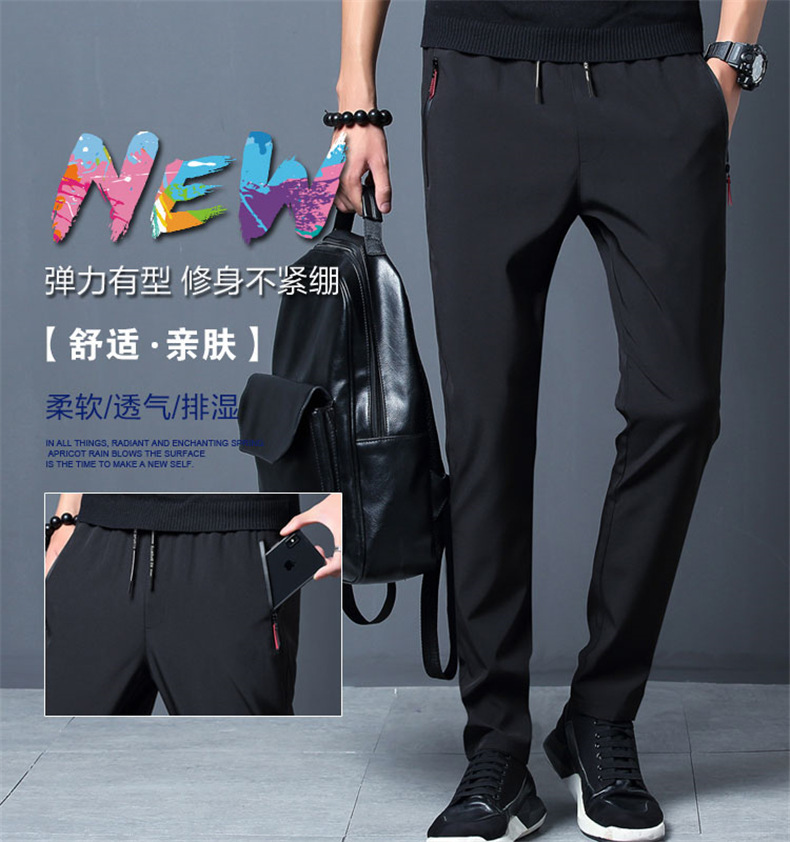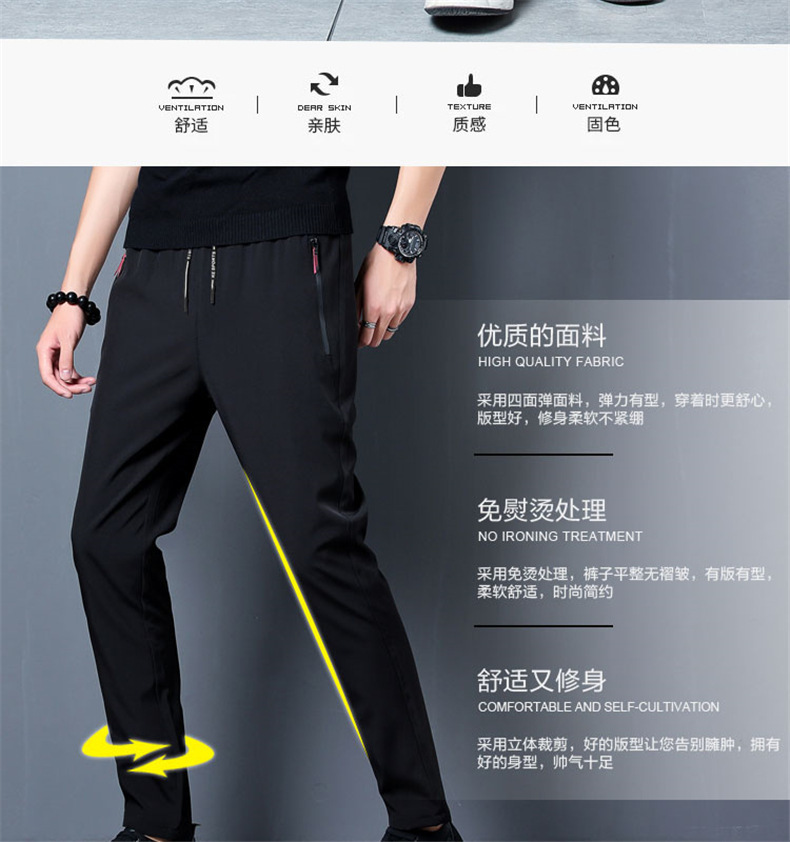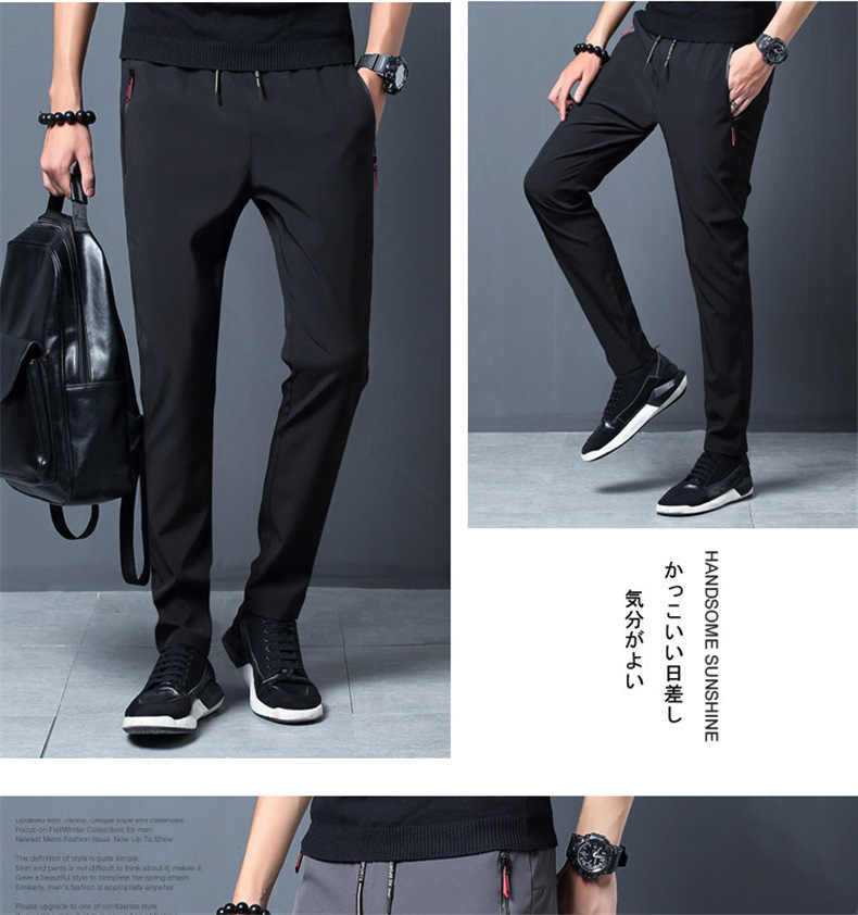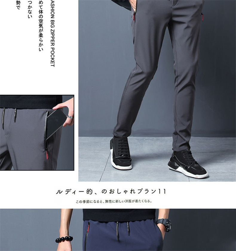 Pantalones de seda fina de verano hielo de los hombres de la cremallera suelta recta delgada pantalones casuales pantalones elásticos de los deportes de los hombres al por mayor