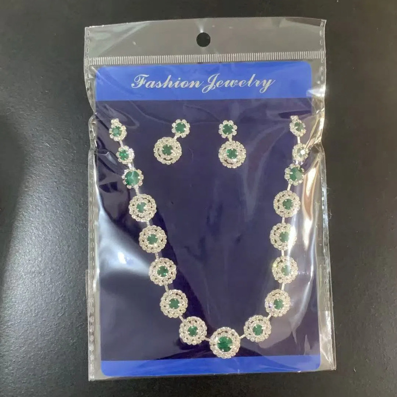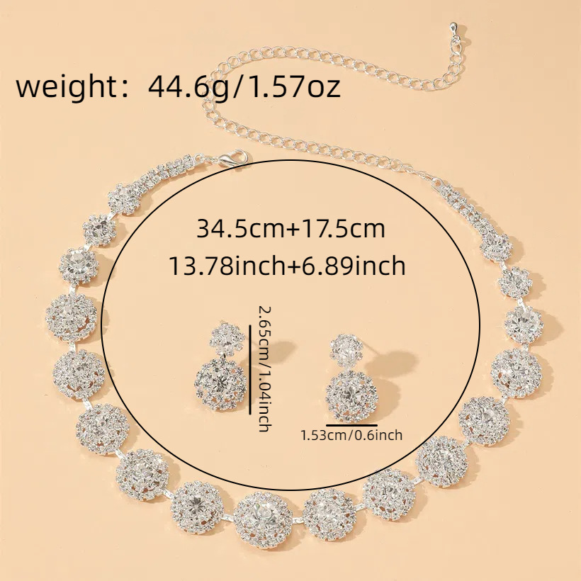 Conjunto de joyería nupcial brillante diamante completo collar redondo geométrico aretes conjunto de joyería de alta calidad al por mayor