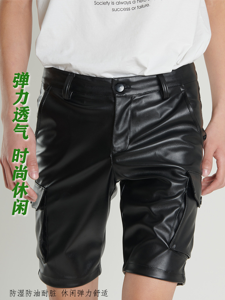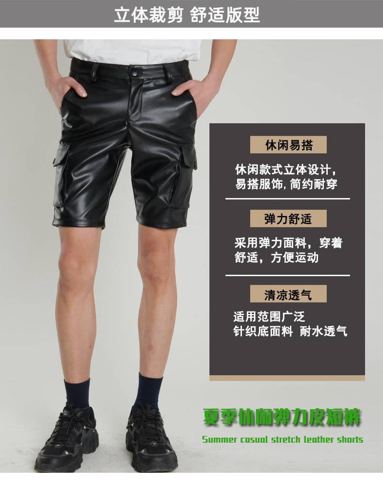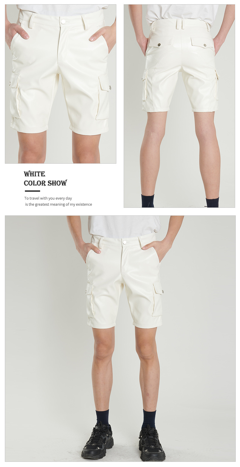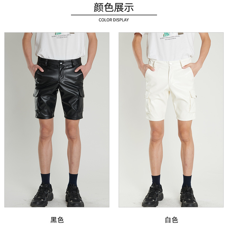 Pantalones de cuero transfronterizos delgados de verano para hombres jóvenes y de mediana edad estiran pantalones de cuero negro blanco pantalones cortos de moda para hombres