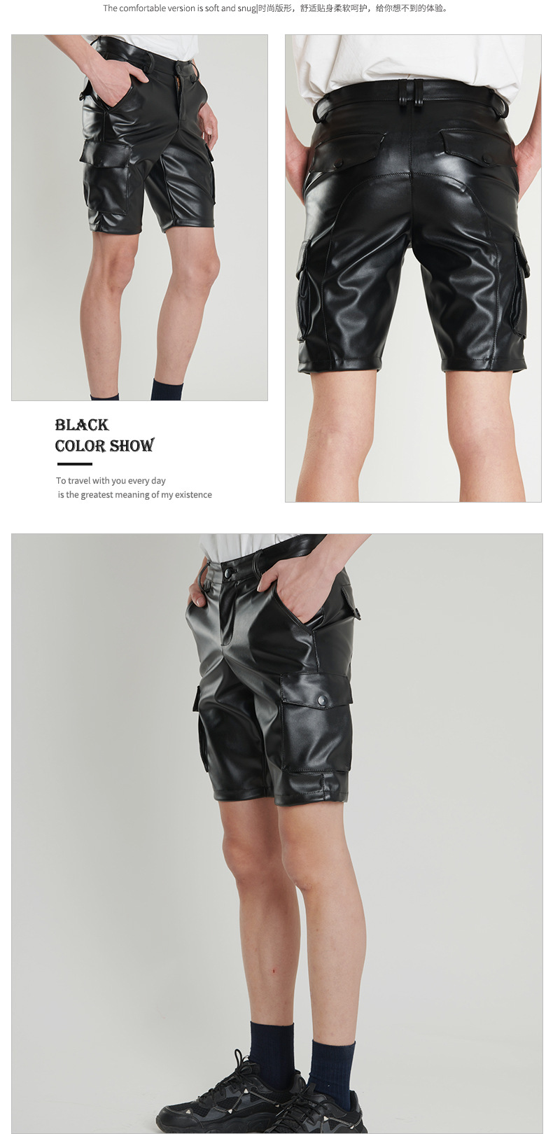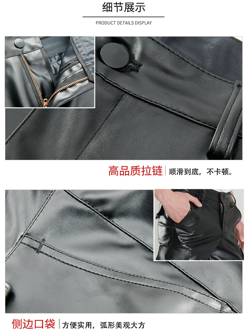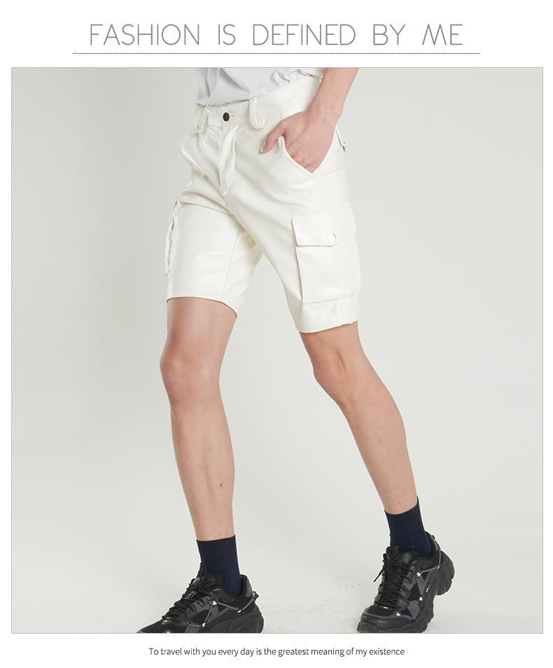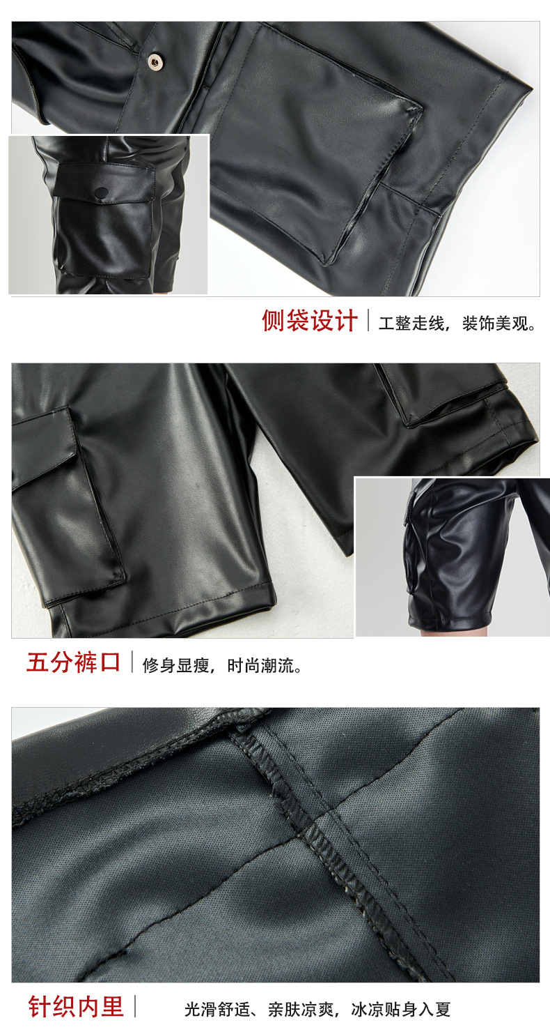 Pantalones de cuero transfronterizos delgados de verano para hombres jóvenes y de mediana edad estiran pantalones de cuero negro blanco pantalones cortos de moda para hombres
