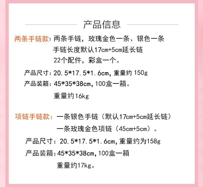 | Color | Dos pulseras,Un collar + una pulsera |