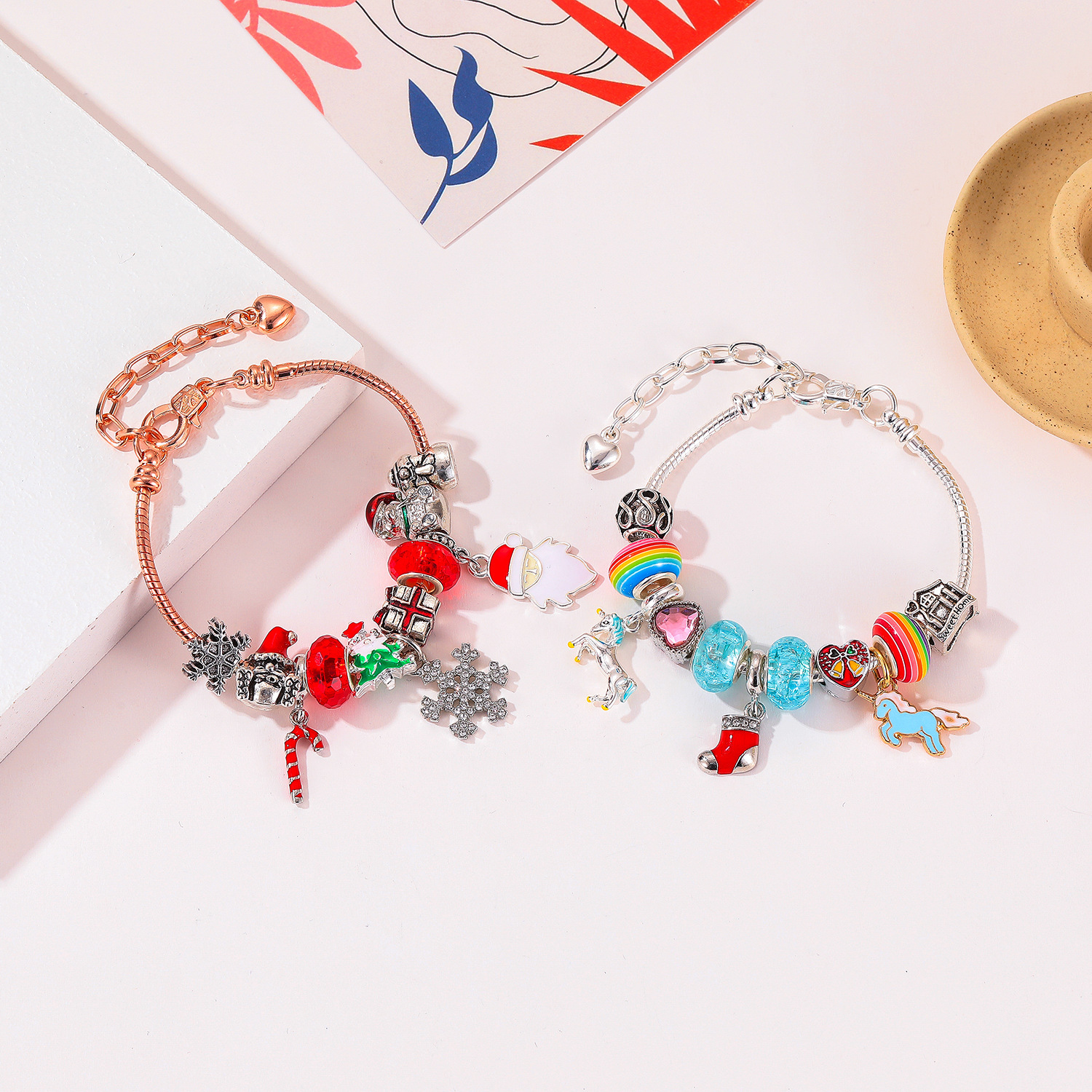 Navidad serie perlas sueltas aleación colgante pulsera collar traje DIY Regalo De vacaciones los niños al por mayor
