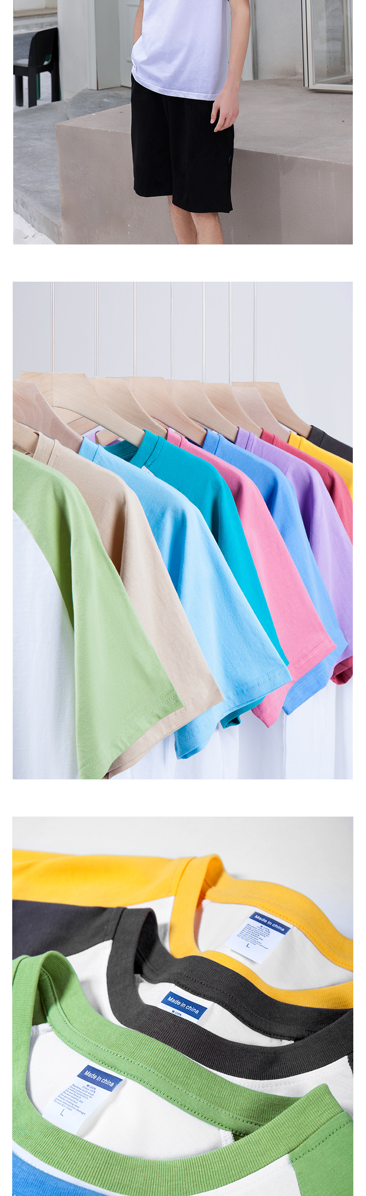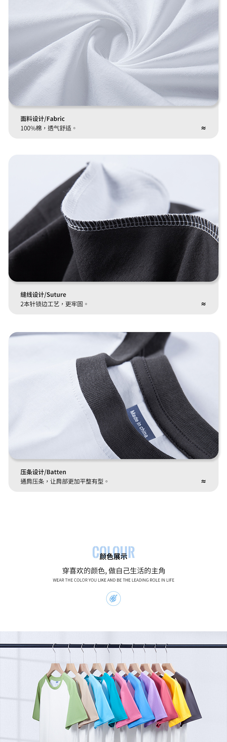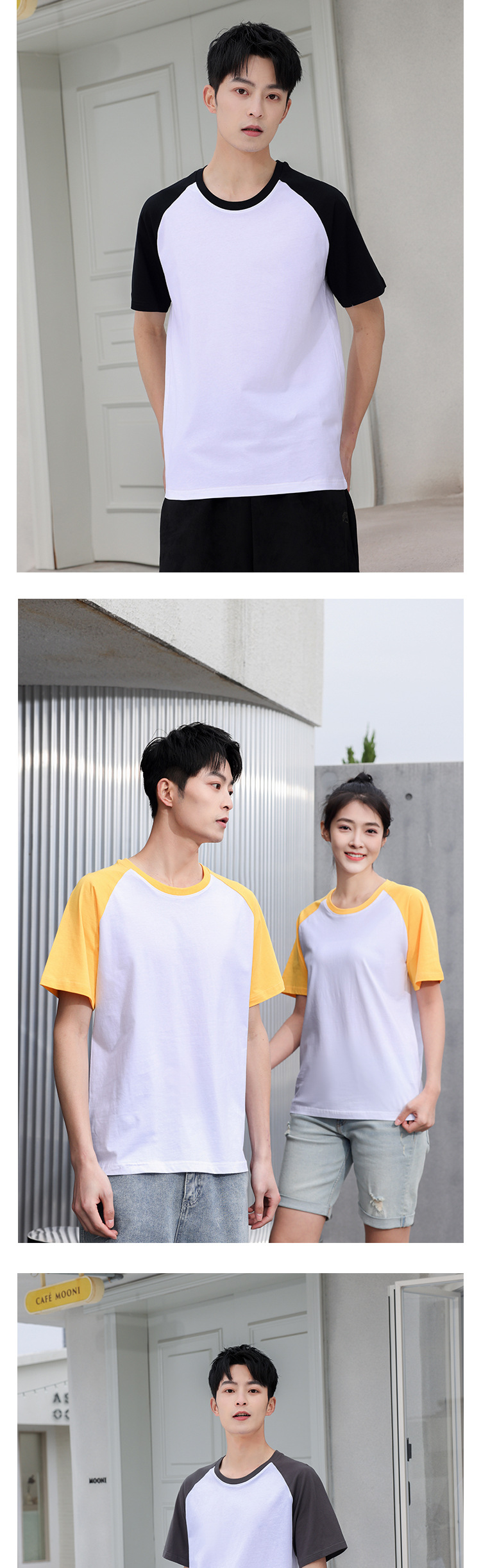 Verano nuevo 200g Raglan color a juego de manga corta camiseta juventud algodón retro contraste suelto color cuello redondo top