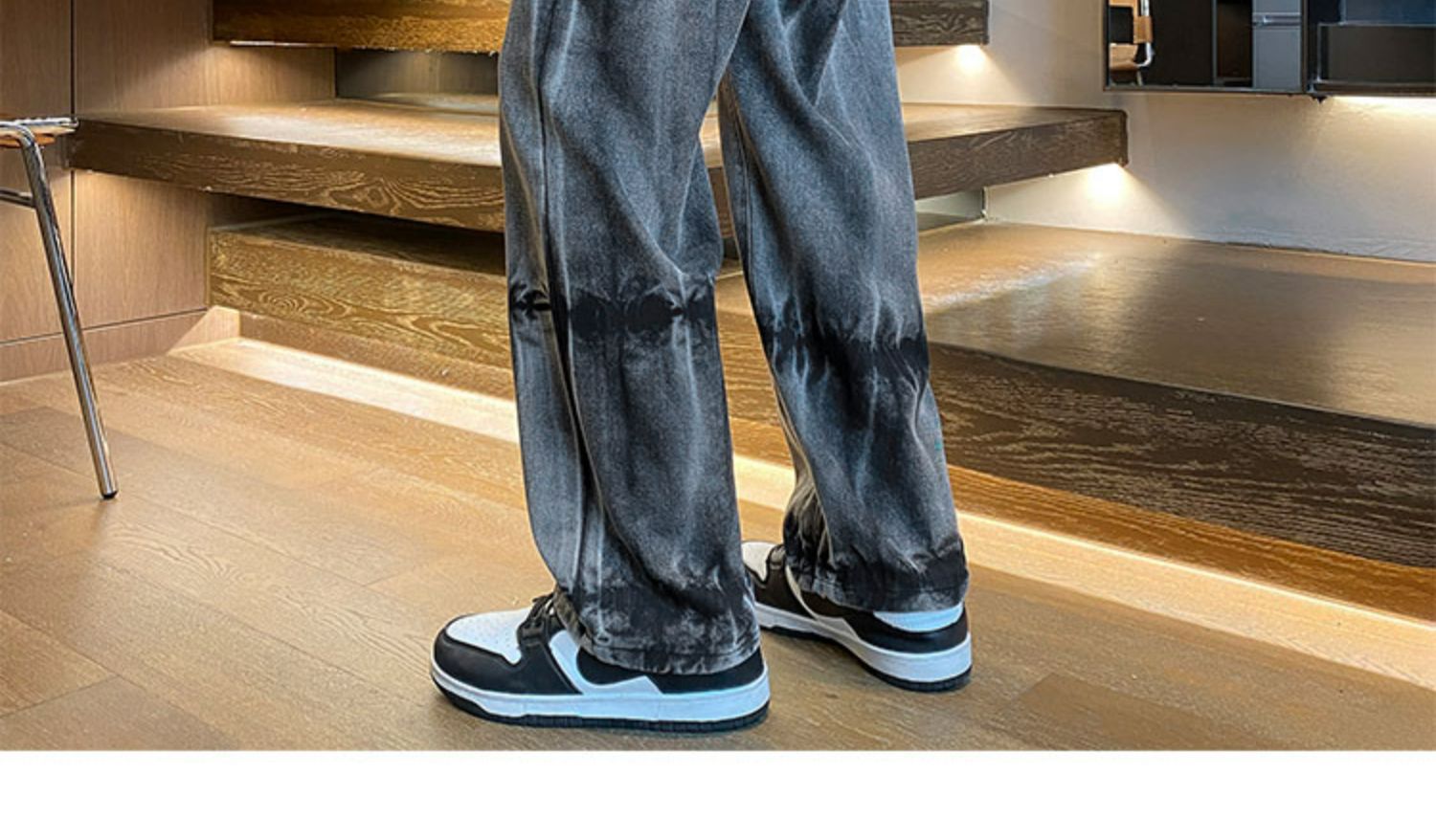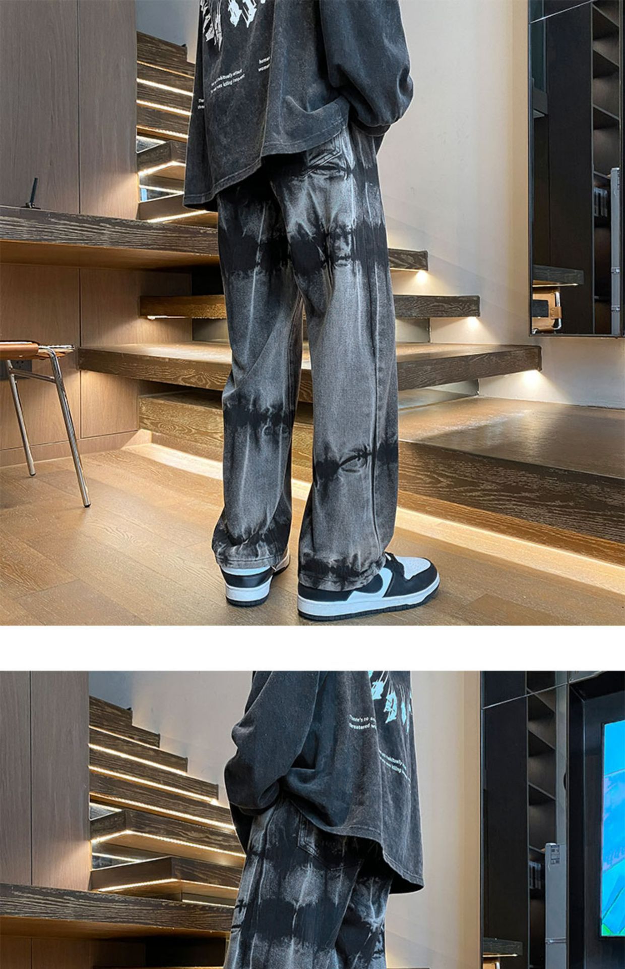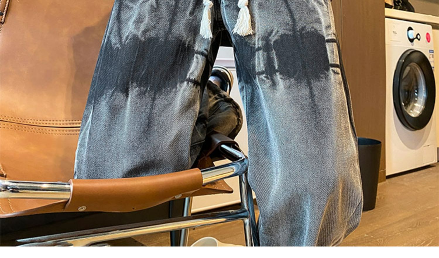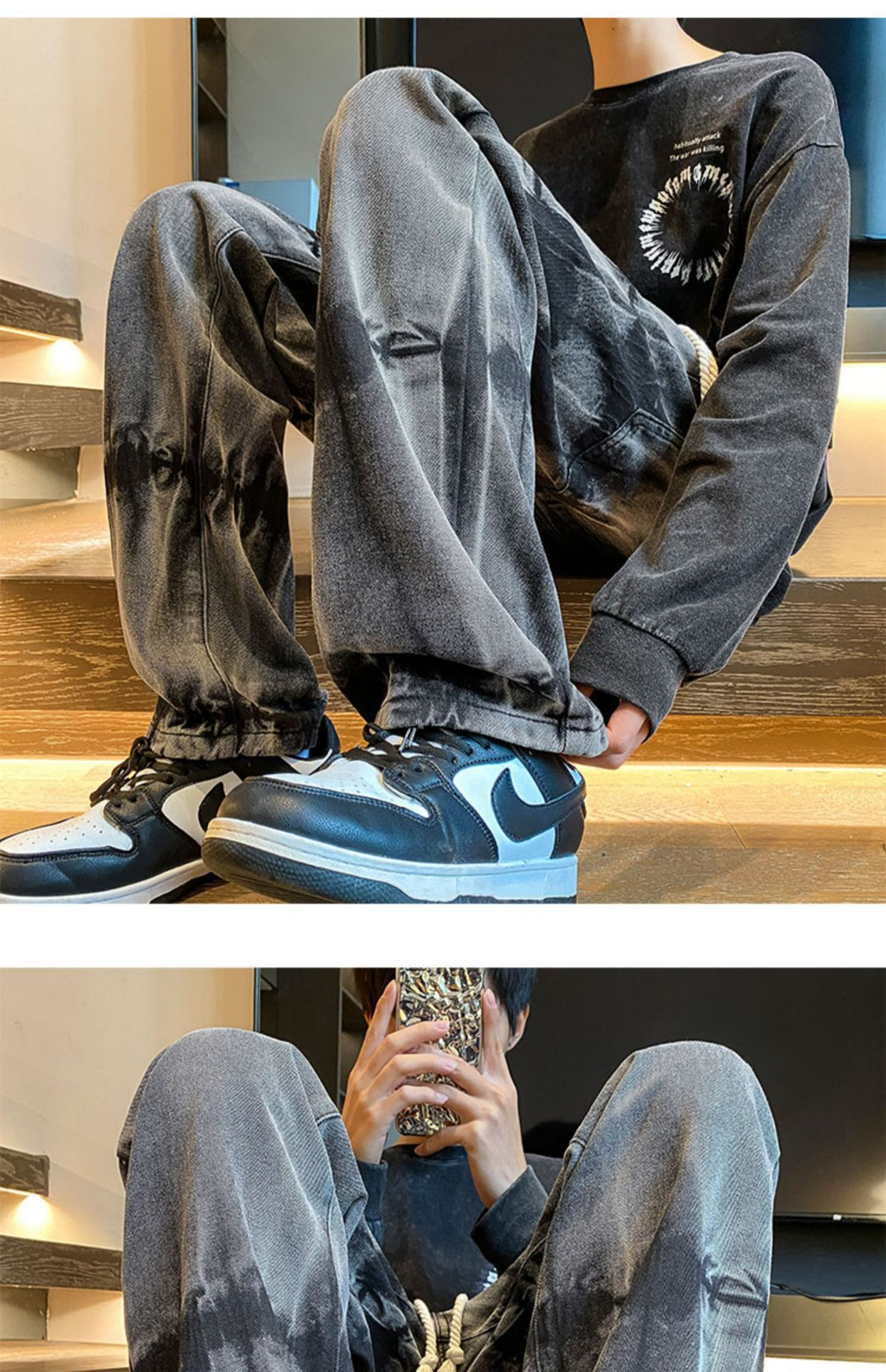 Pantalones europeos y americanos High Street Vibe ins marca de moda tie-dyed vintage drawstring jeans hombres American hiphop Pantalones rectos