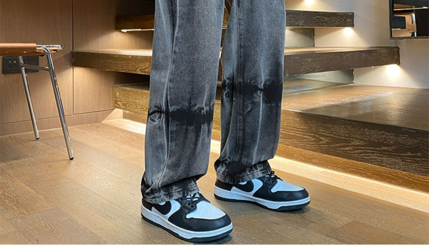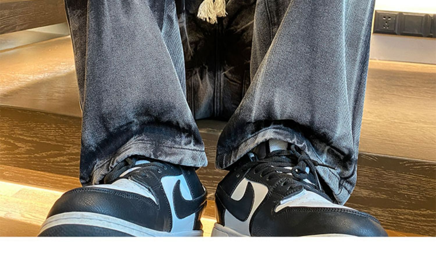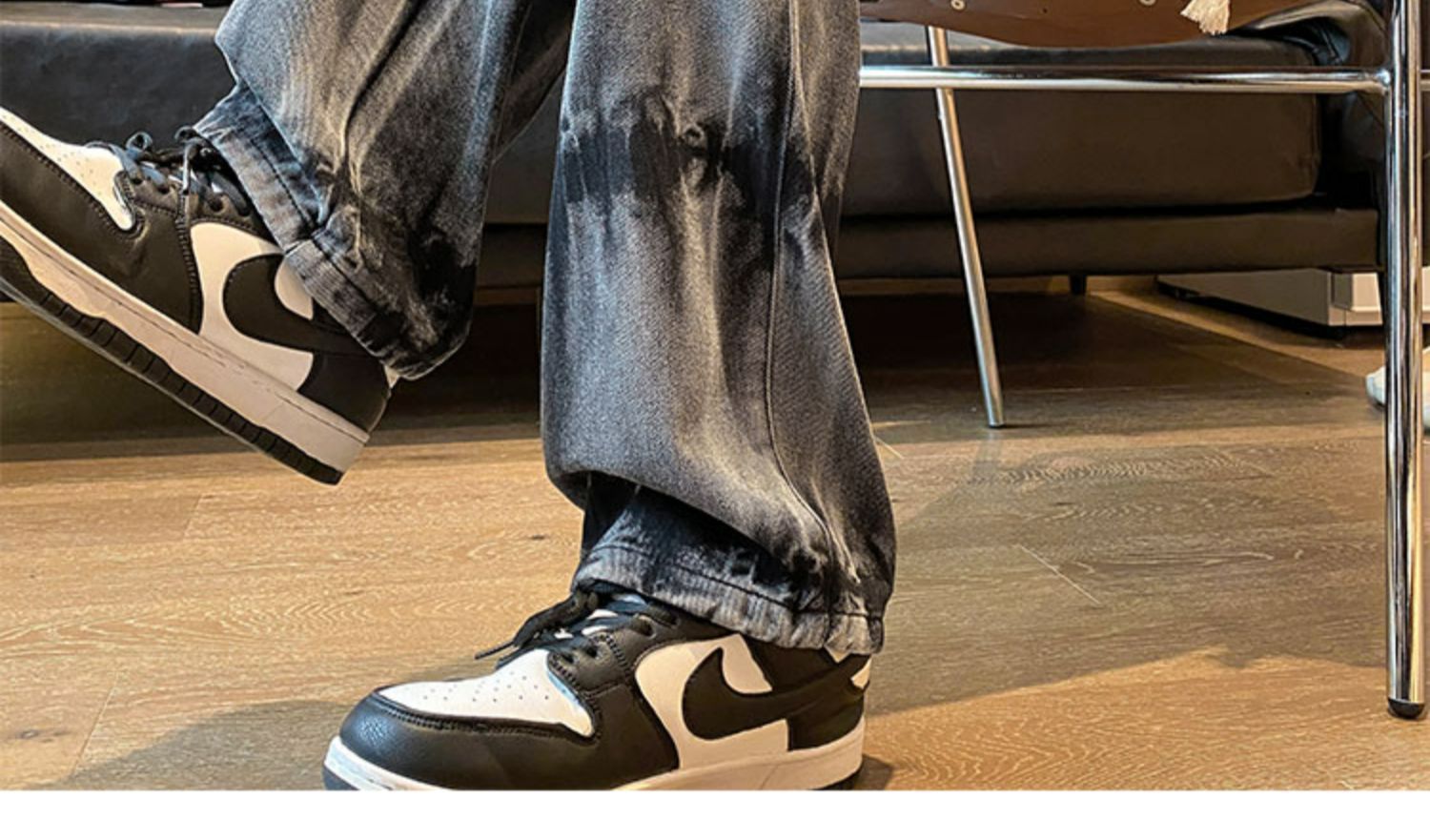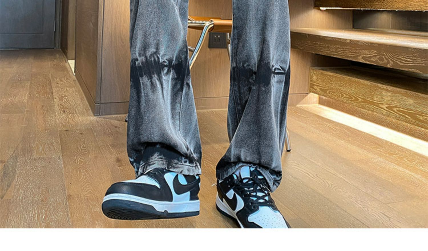 Pantalones europeos y americanos High Street Vibe ins marca de moda tie-dyed vintage drawstring jeans hombres American hiphop Pantalones rectos
