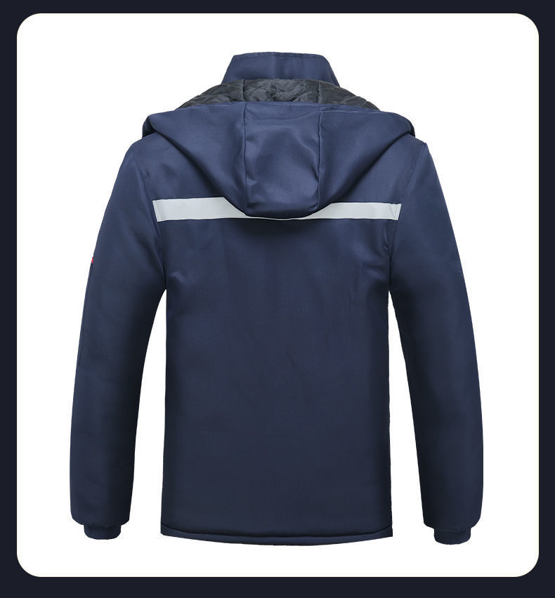 Chaqueta acolchada de algodón de invierno para hombre engrosada a prueba de frío chaqueta de rayas reflectantes cálida capa acolchada de algodón protección laboral al aire libre sitio de almacenamiento en frío soldadura chaqueta acolchada de algodón