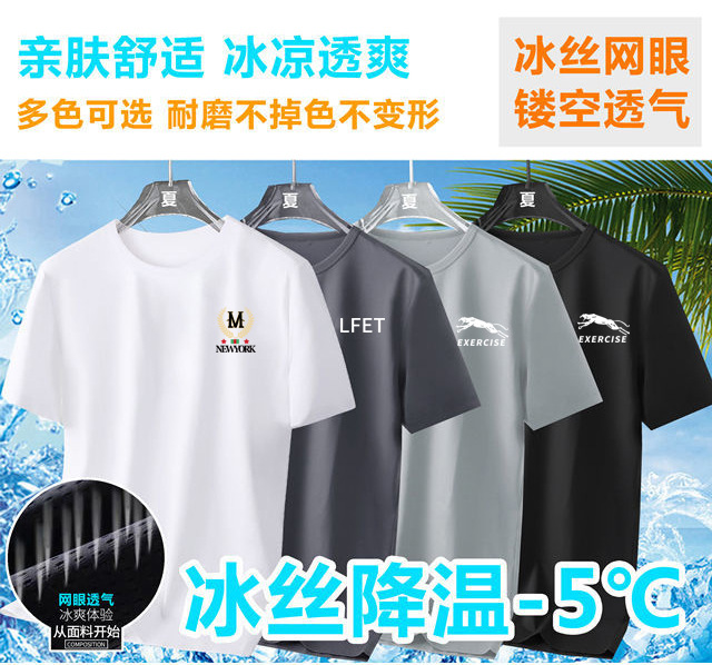 Camiseta de manga corta de seda helada para hombre, corte holgado, talla grande, camiseta versátil de color sólido, estampado geométrico moderno, informal de secado rápido.
