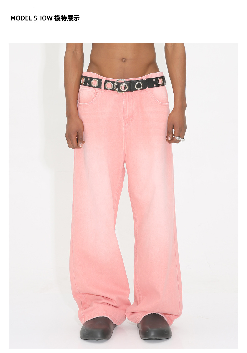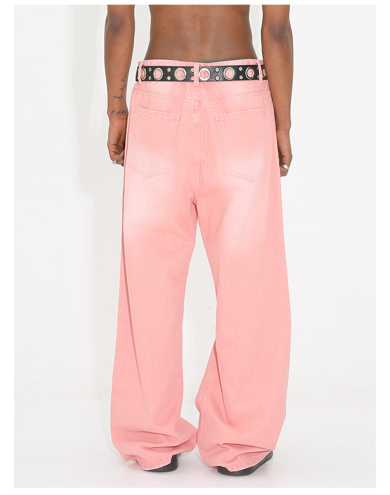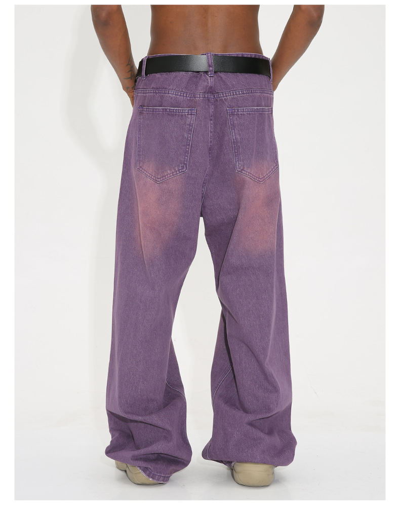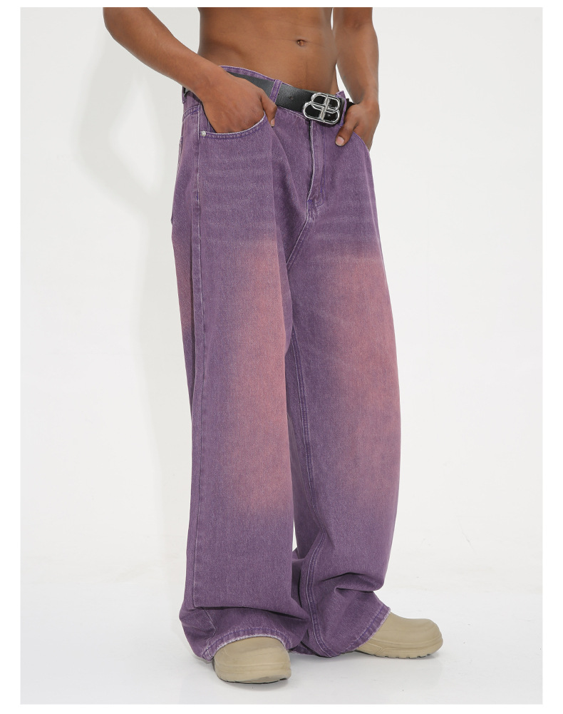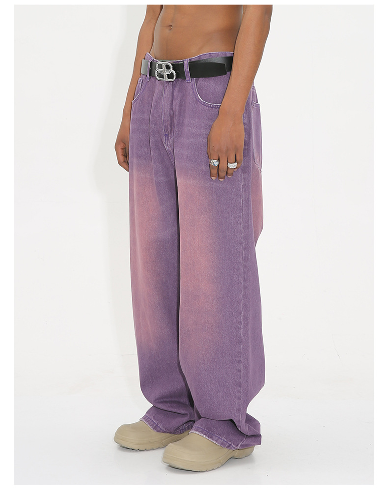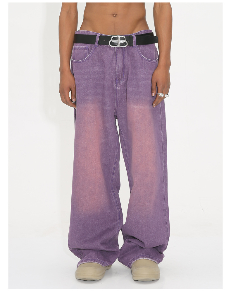 EF JEANS | 2023 nuevo estilo americano personalizado retro degradado retro púrpura suelta jeans de pierna ancha para hombres y mujeres