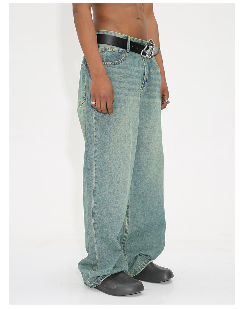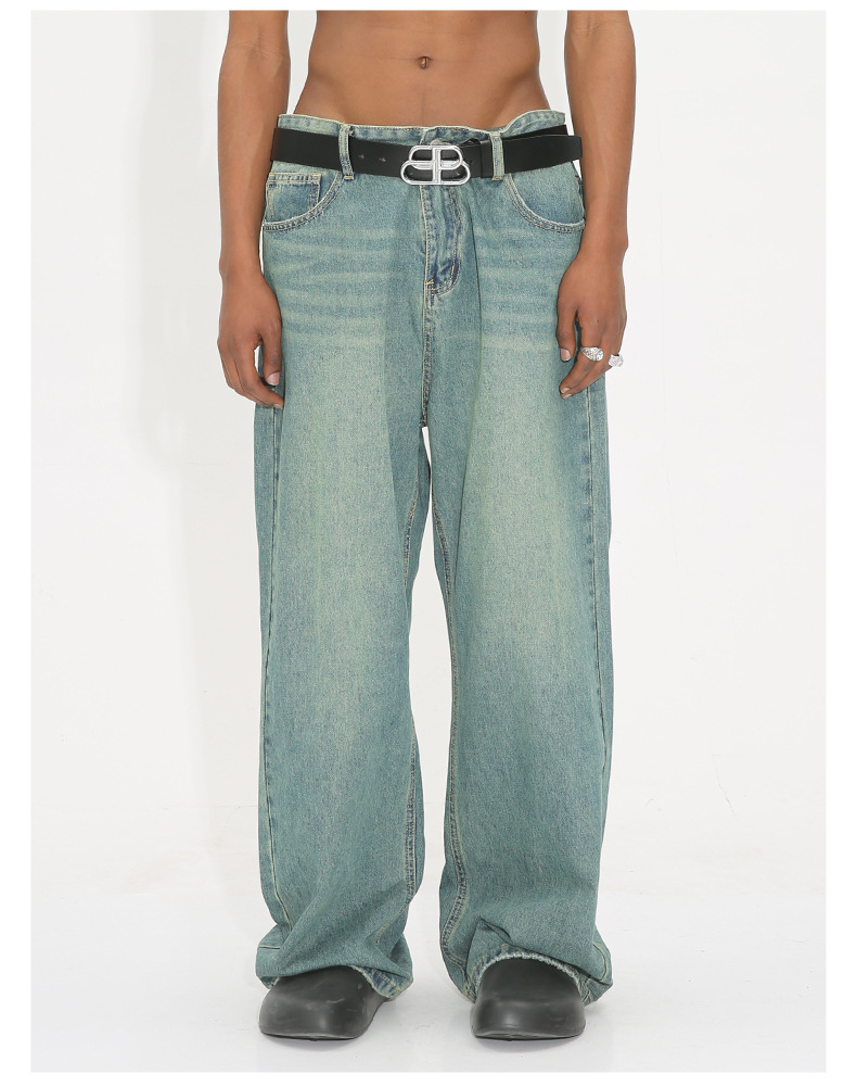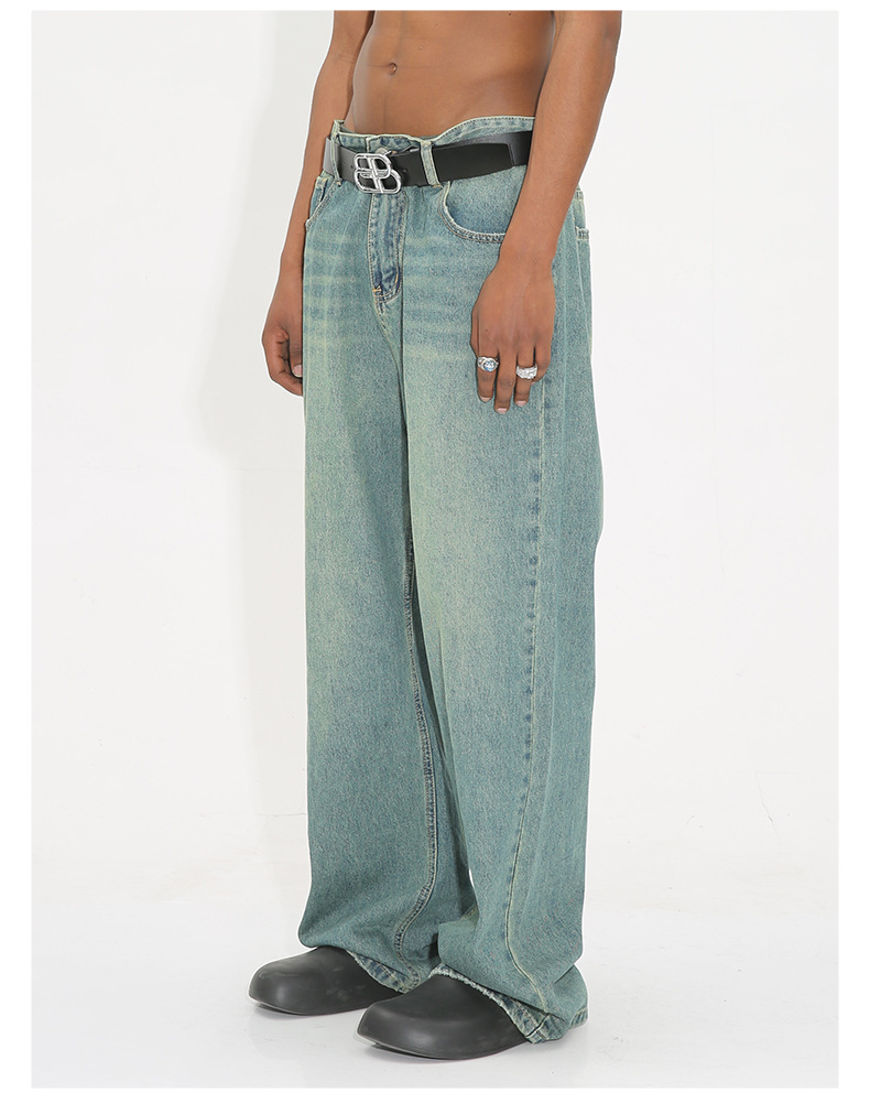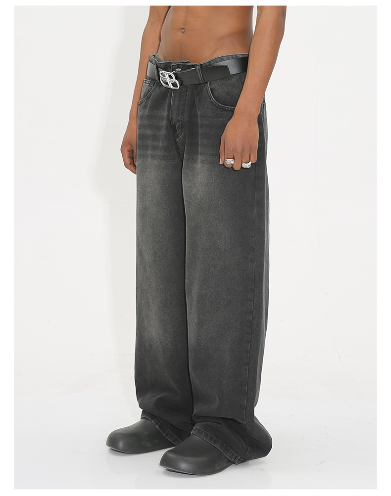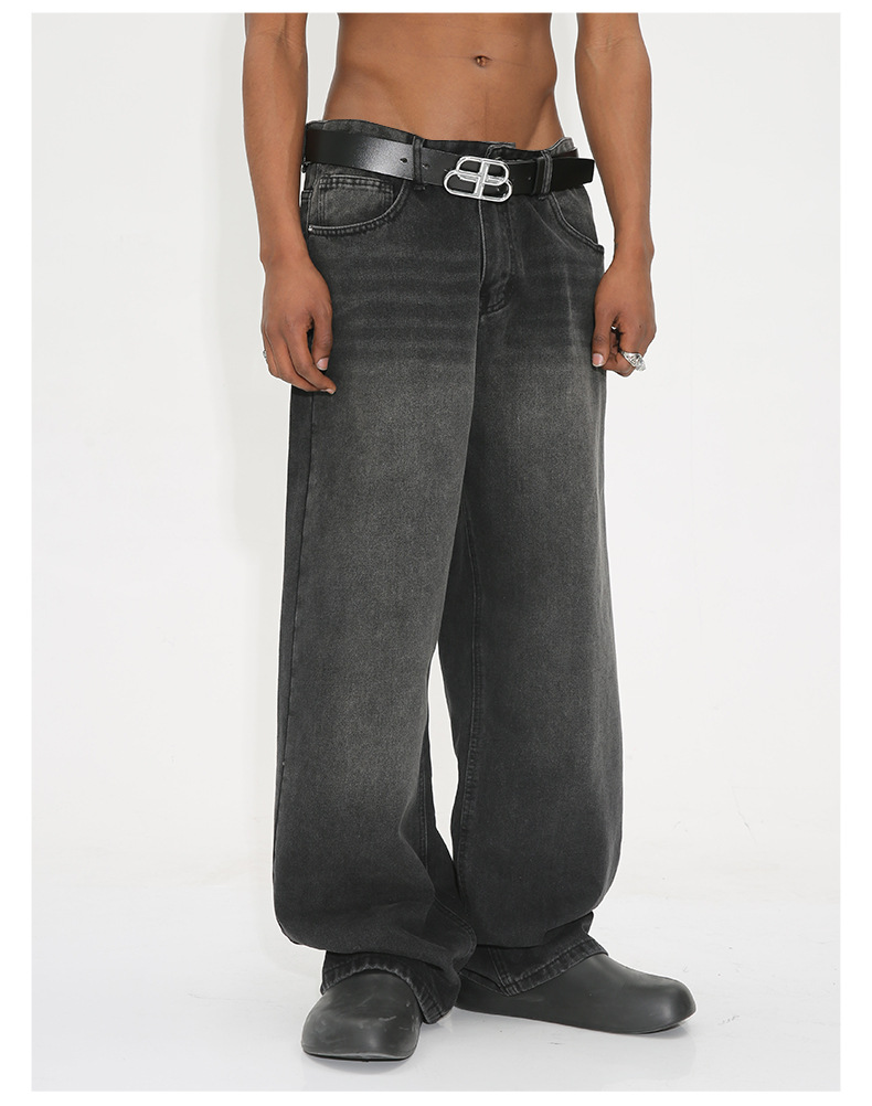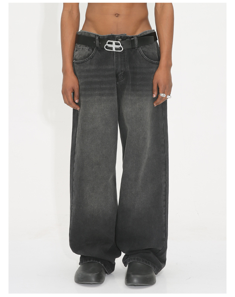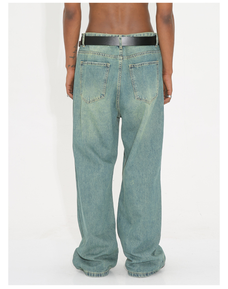 EF JEANS | 2023 nuevo estilo americano personalizado retro degradado retro púrpura suelta jeans de pierna ancha para hombres y mujeres