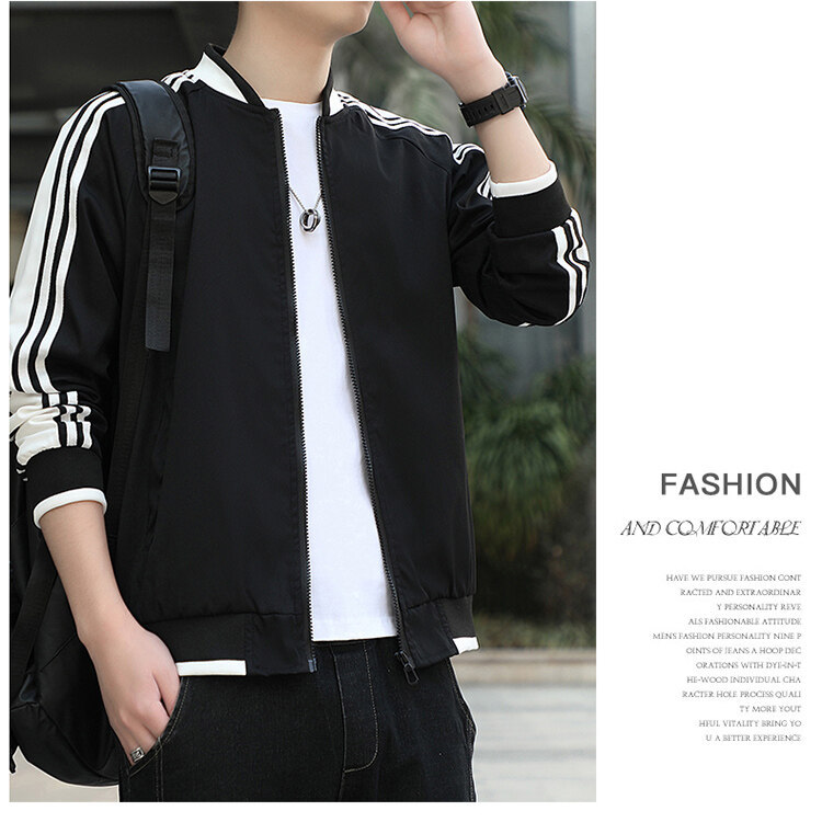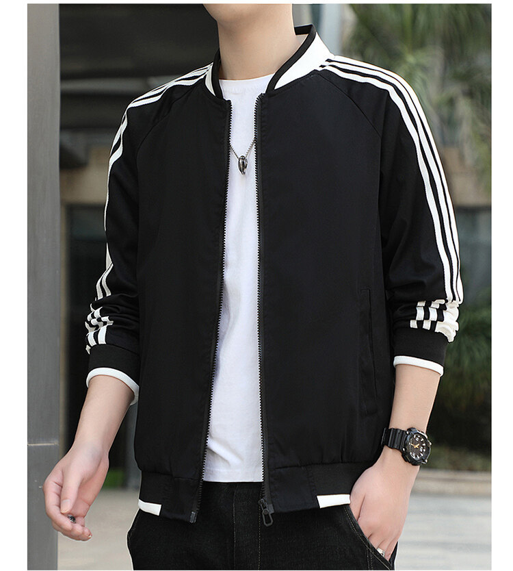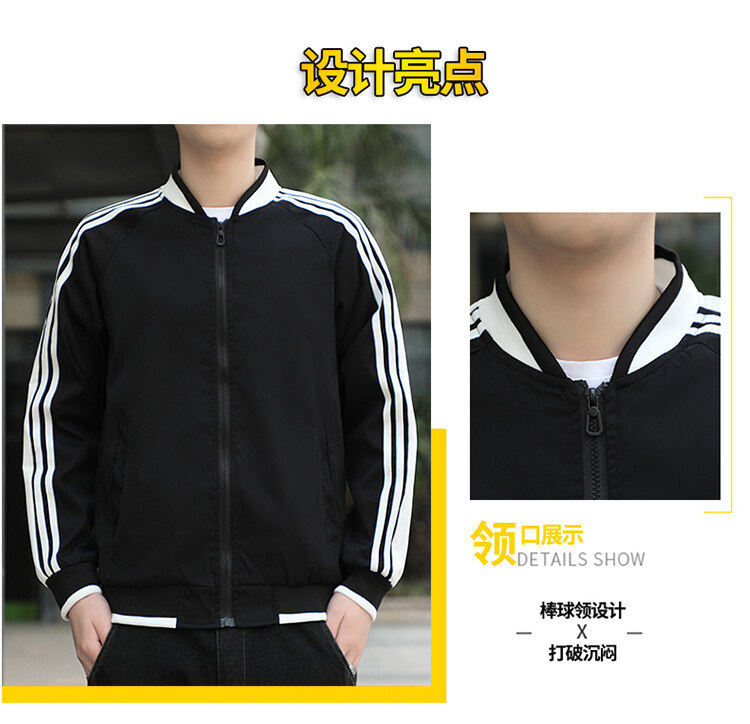 Venta directa de fábrica tres barras chaqueta con capucha hombres 2023 primavera y otoño nuevo a prueba de viento guapo juventud chaqueta casual