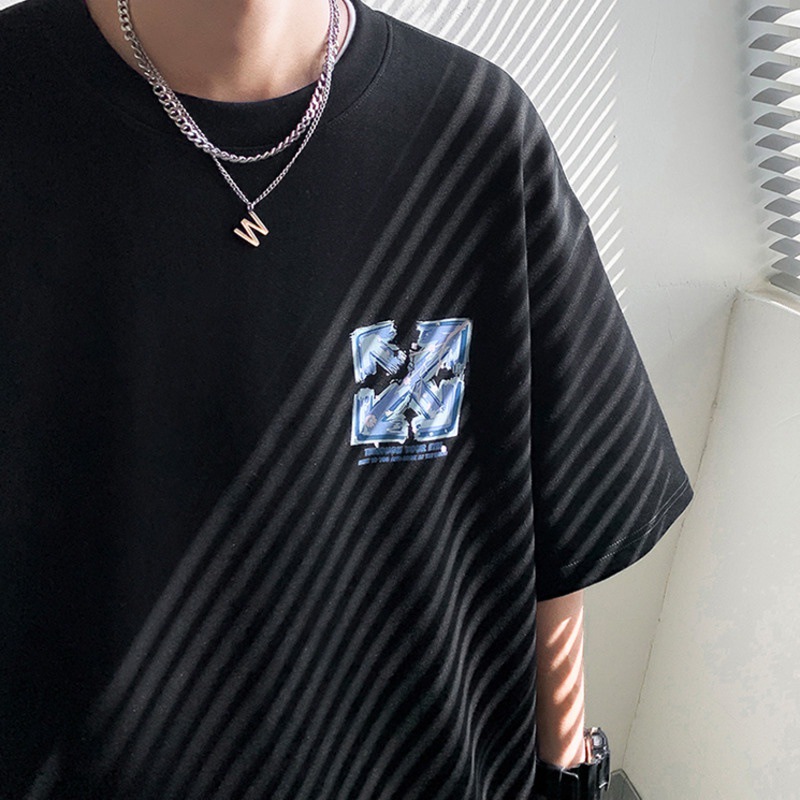 Camiseta de manga corta cuello redondo de los Hombres estilo coreano camiseta suelta de gran tamaño versátil hip hop hombres de moda pullover tee top