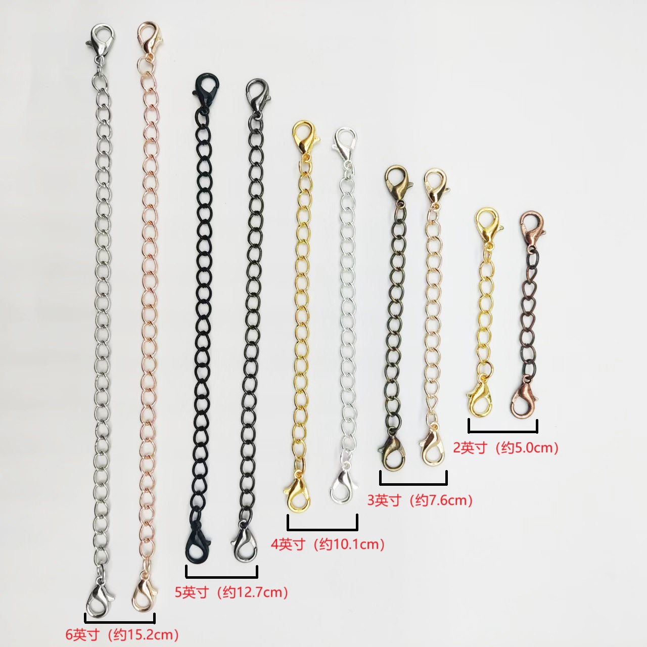 Hebilla de langosta de doble cabeza con cadena de cola cadena ajustable Cadena de extensión de cadena de cuerda de cuero material de joyería de bricolaje Cadena de todo partido al por mayor