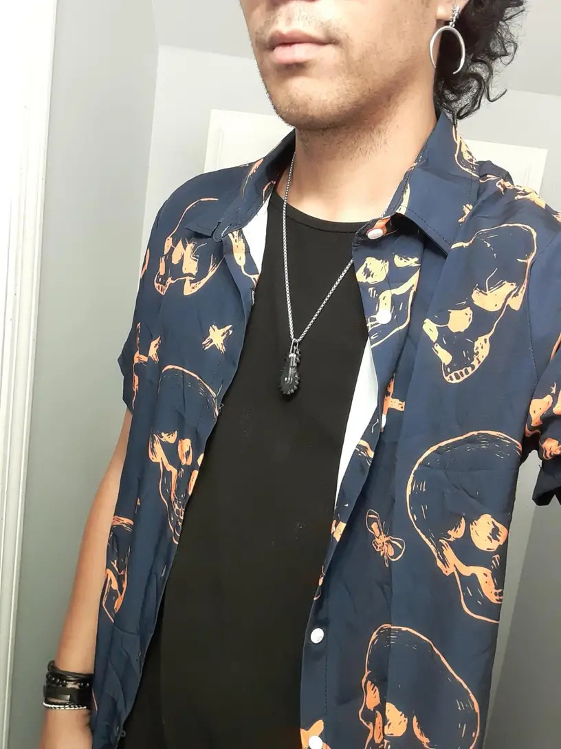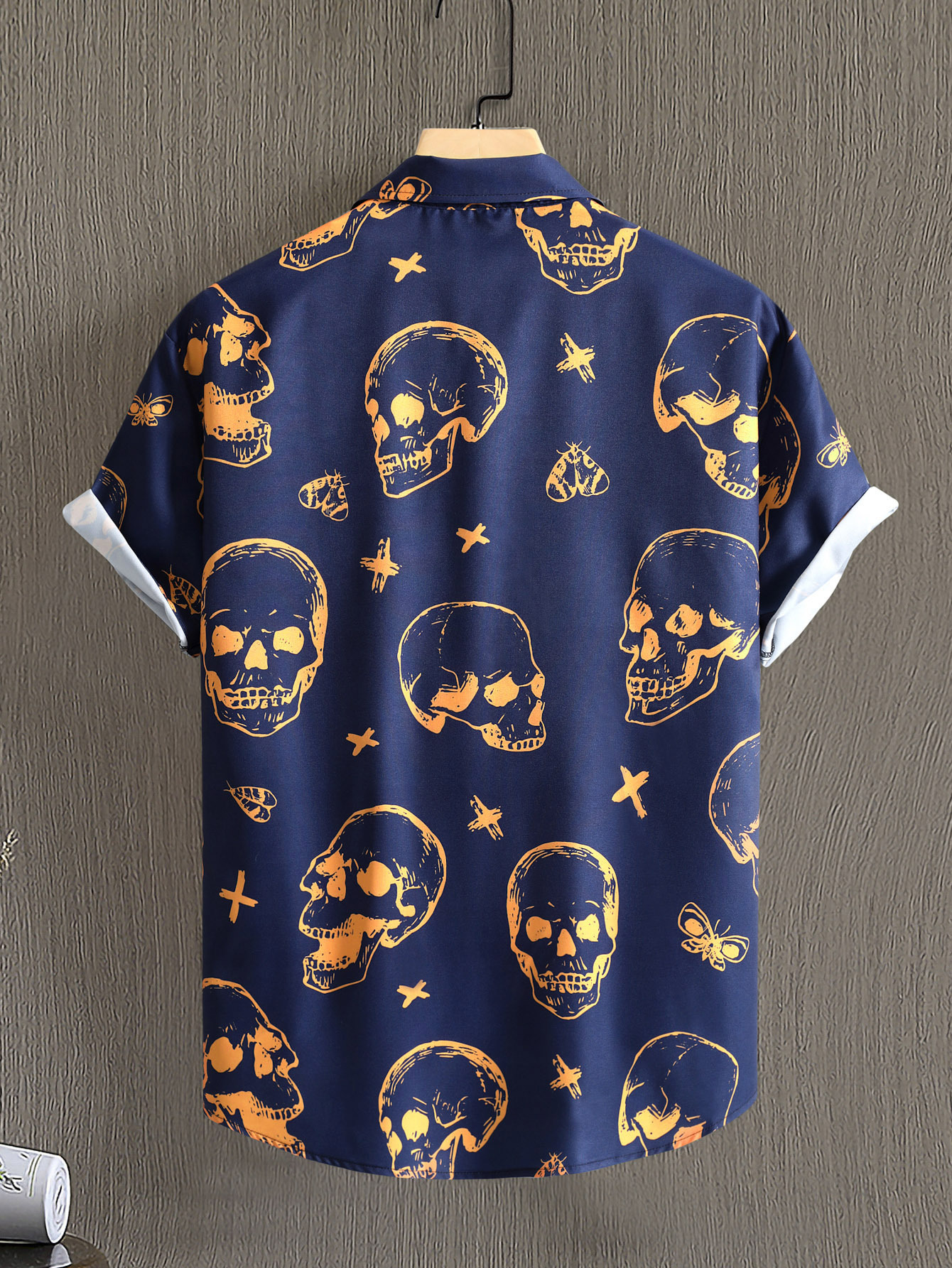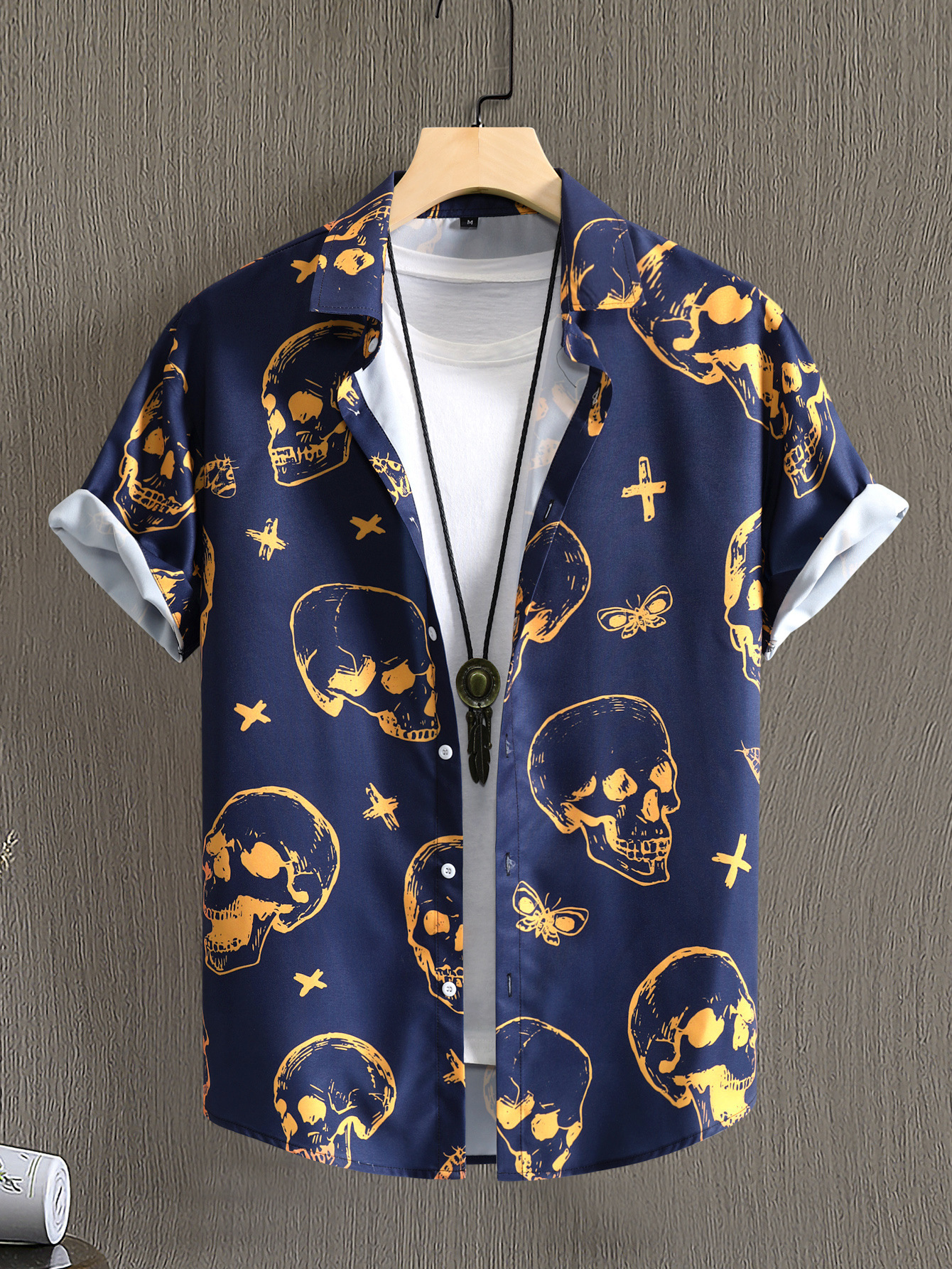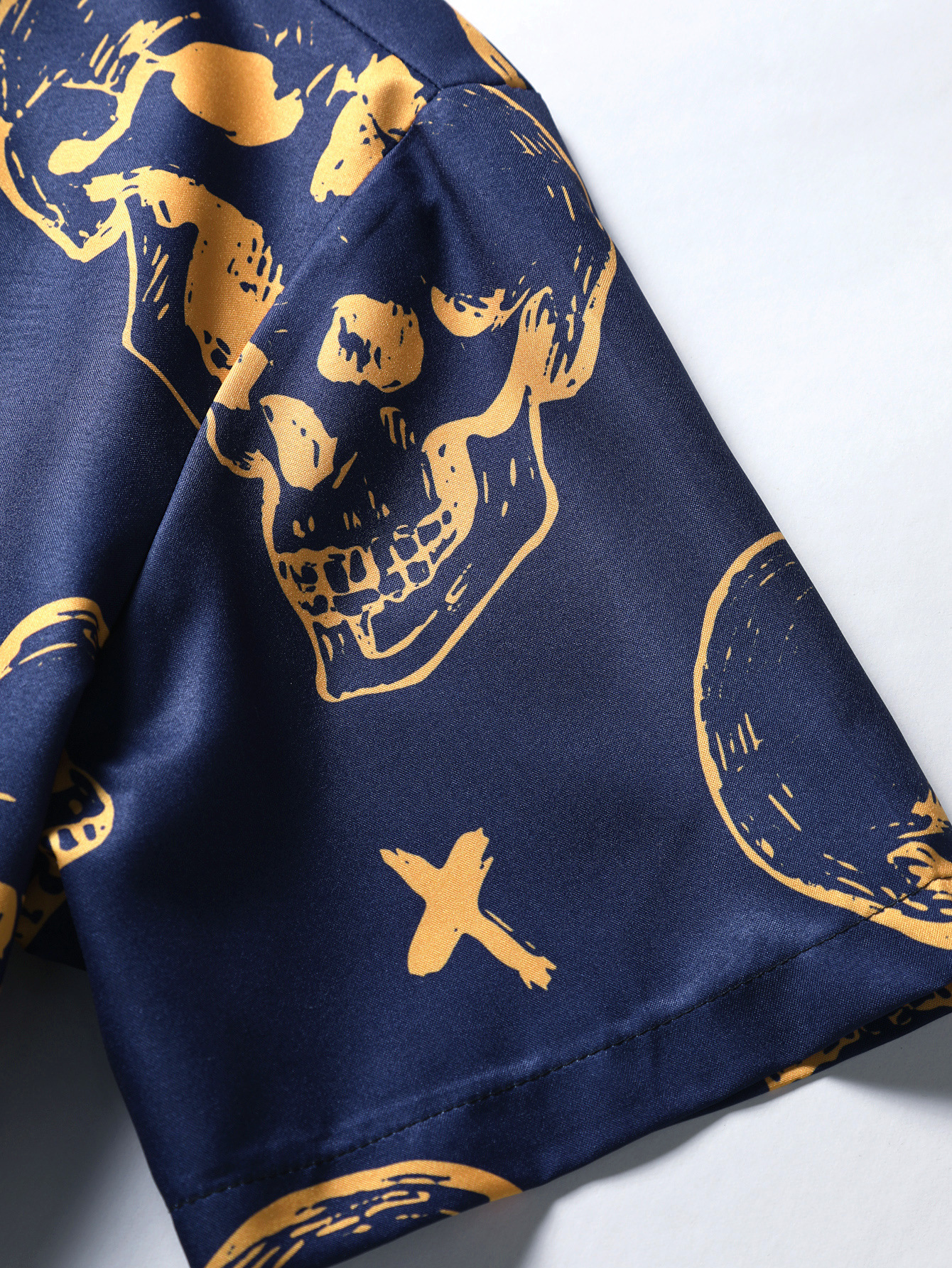 Camisa de los hombres del estilo punk de los hombres azul marino gran cráneo digital impreso camisa de manga corta 2023 verano nuevo