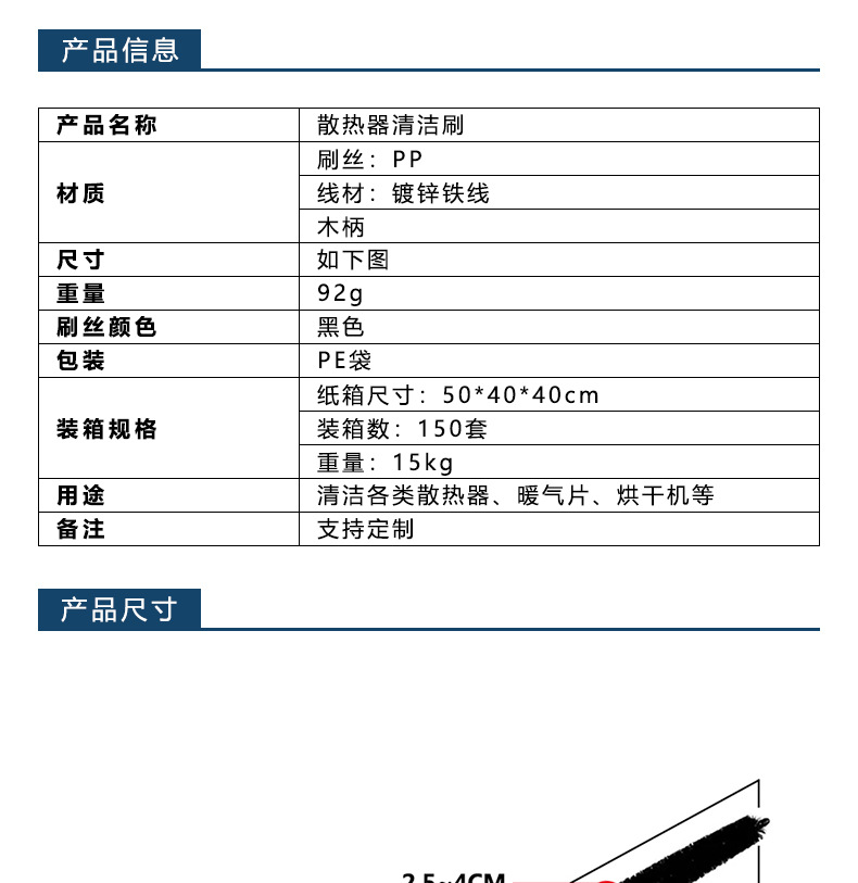Radiador de limpieza cepillo secador tubo cepillo de limpieza de polvo chimenea radiador lavadora suministro de fábrica