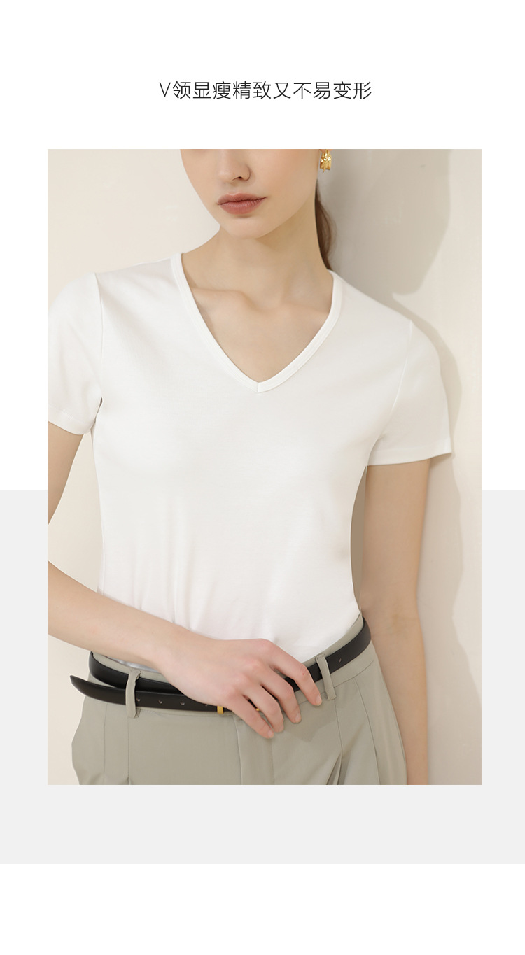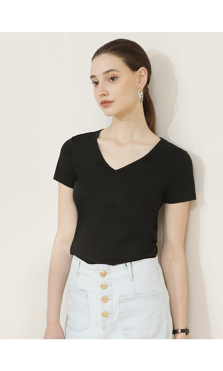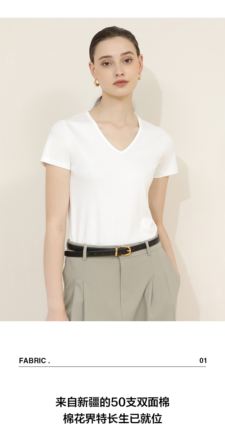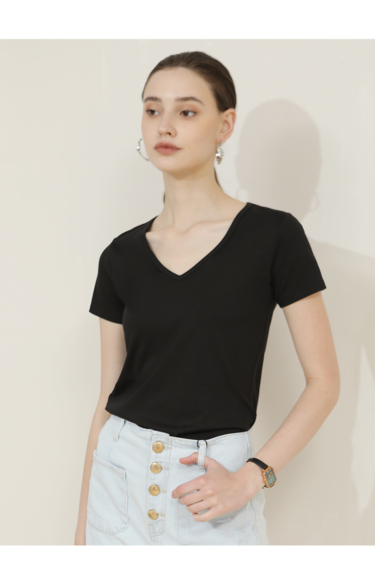 CANVAUS nueva camiseta de manga corta de algodón con cuello en V para mujer slim fit verano Xinjiang algodón textura bottoming camisa moda