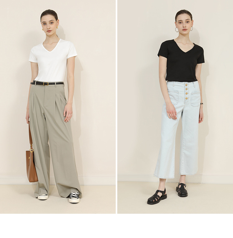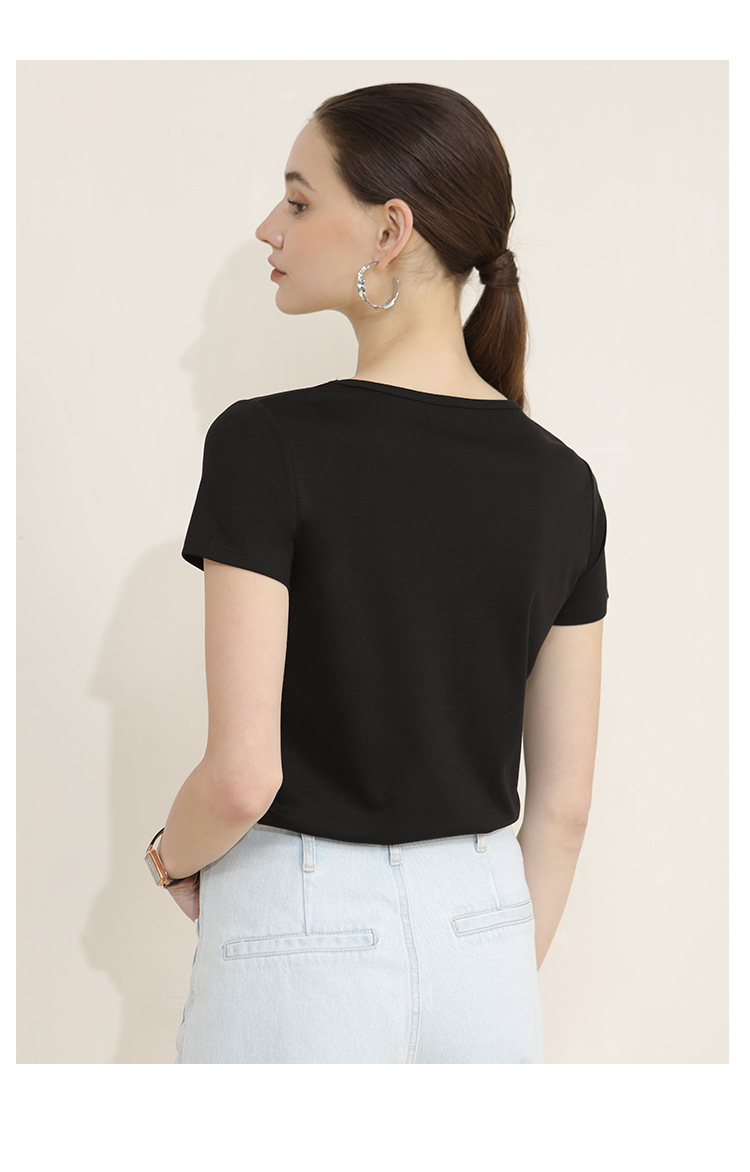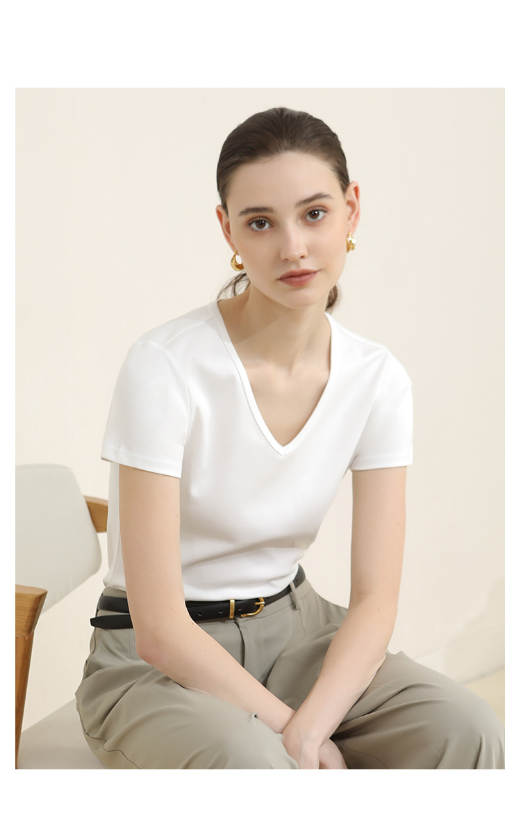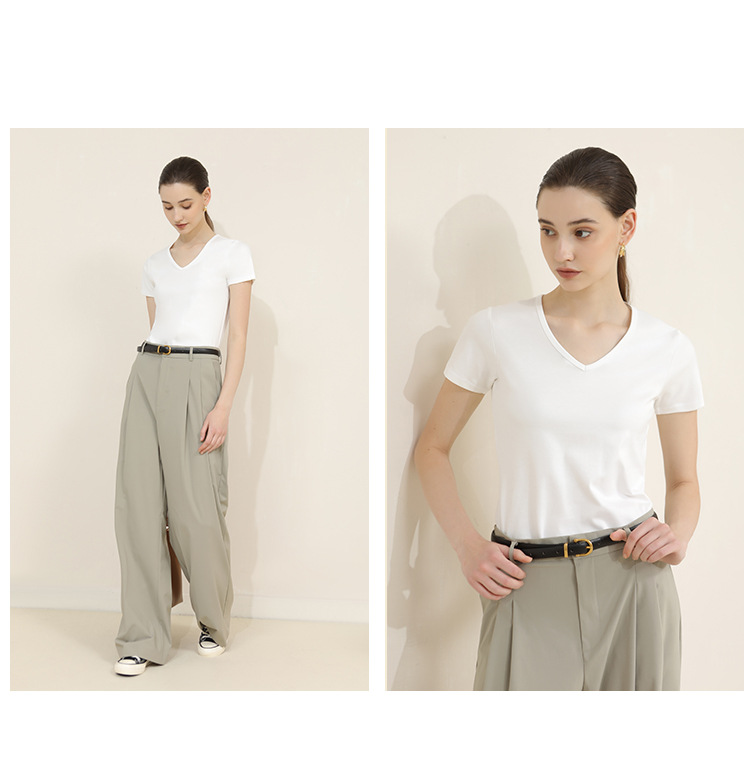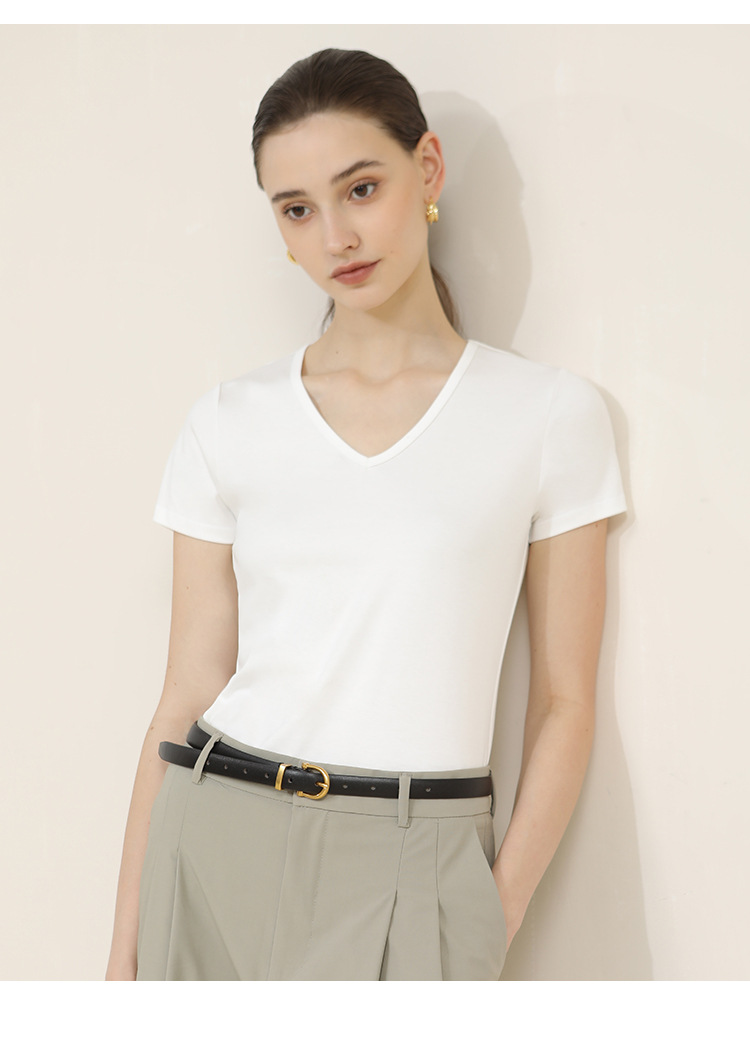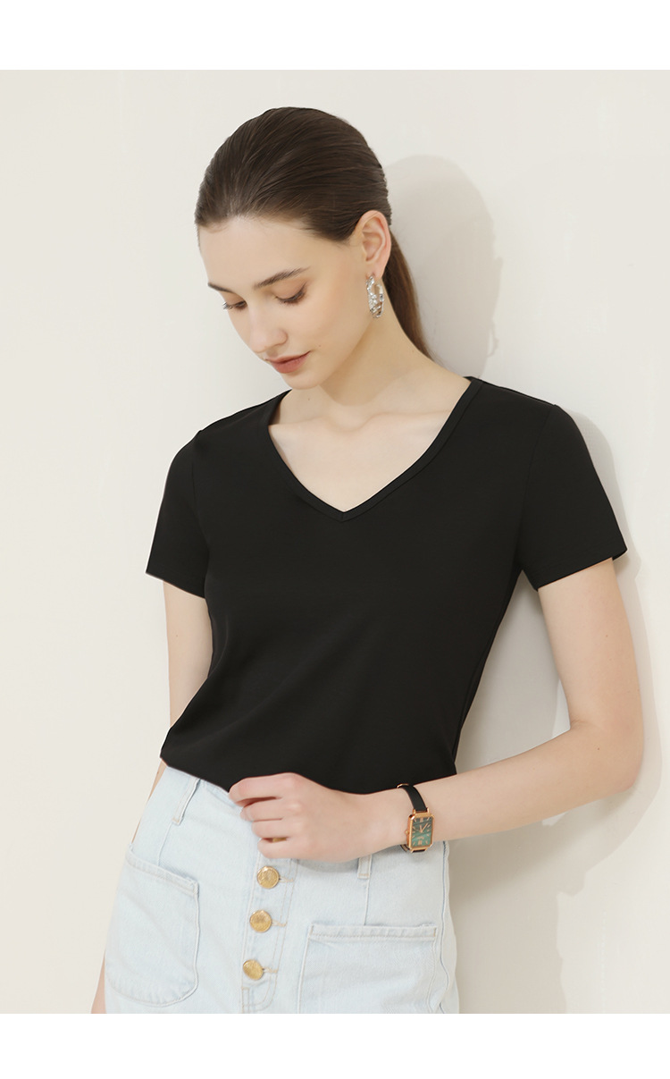 CANVAUS nueva camiseta de manga corta de algodón con cuello en V para mujer slim fit verano Xinjiang algodón textura bottoming camisa moda