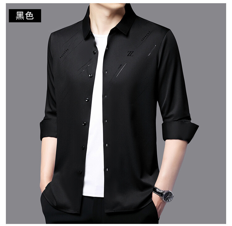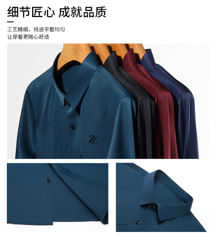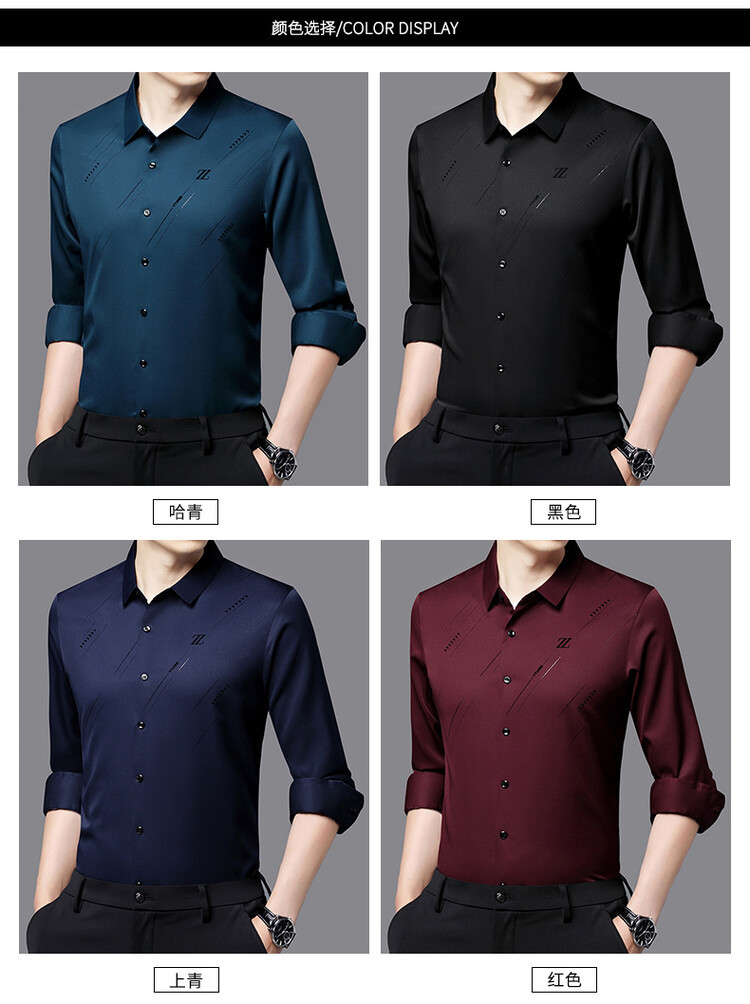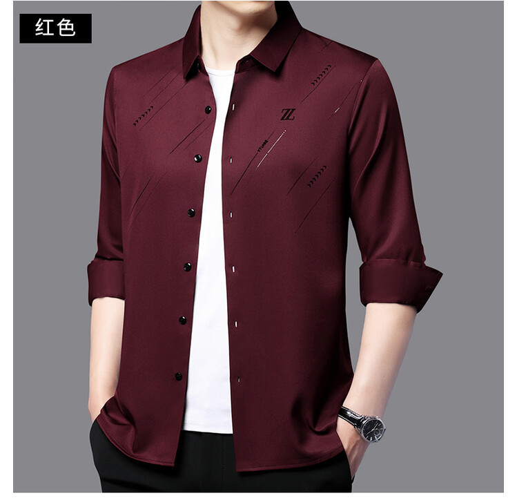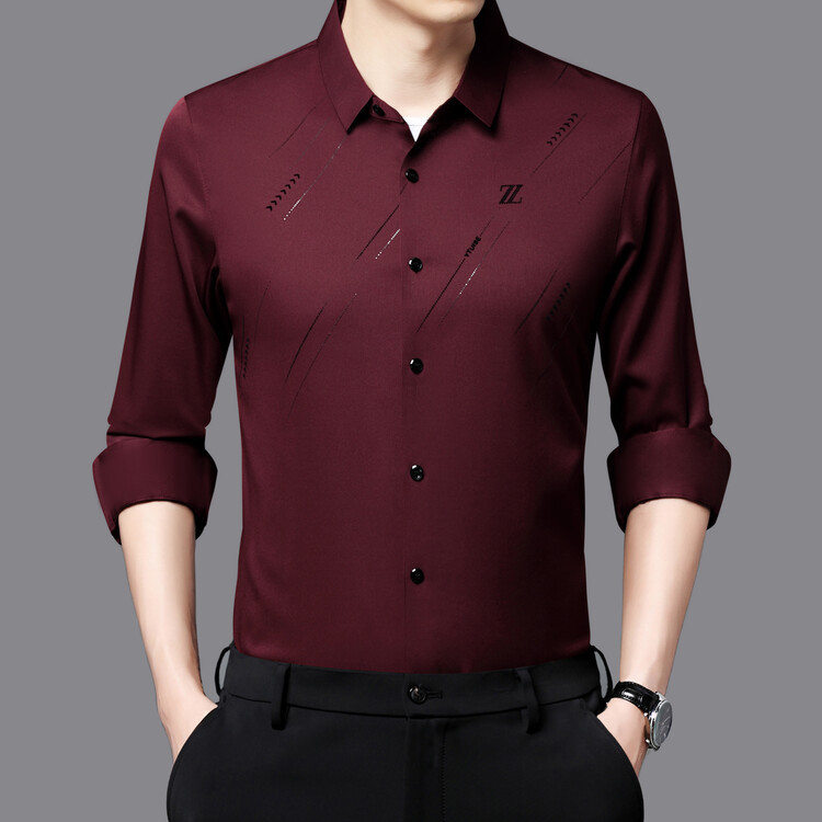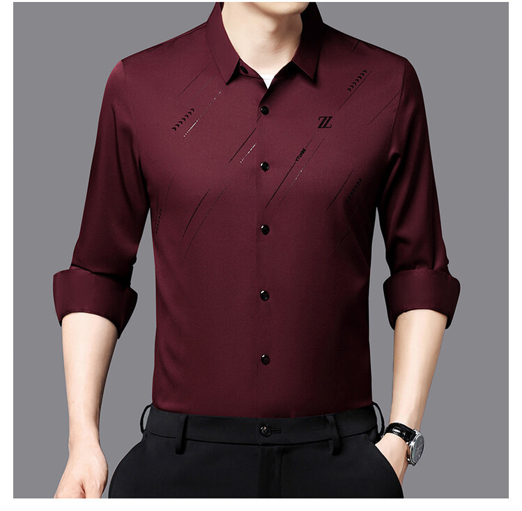Naijia Camisa de manga larga de diamantes calientes flocados sin costuras de negocios de primavera para hombres Xi Dad Boda Suegro Camisa roja