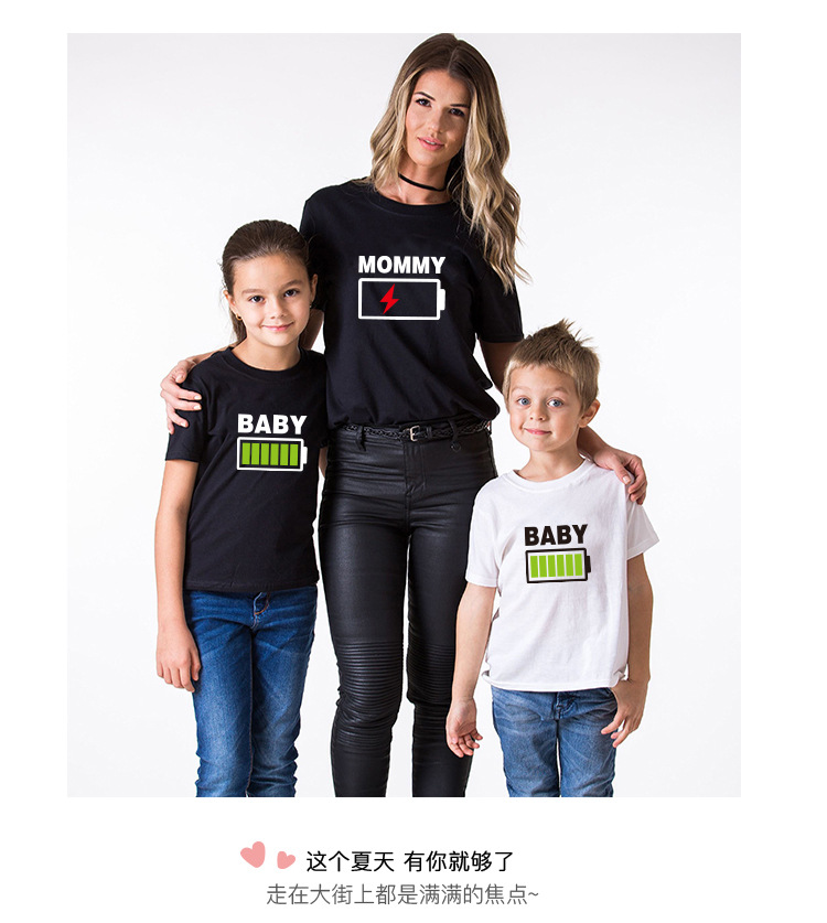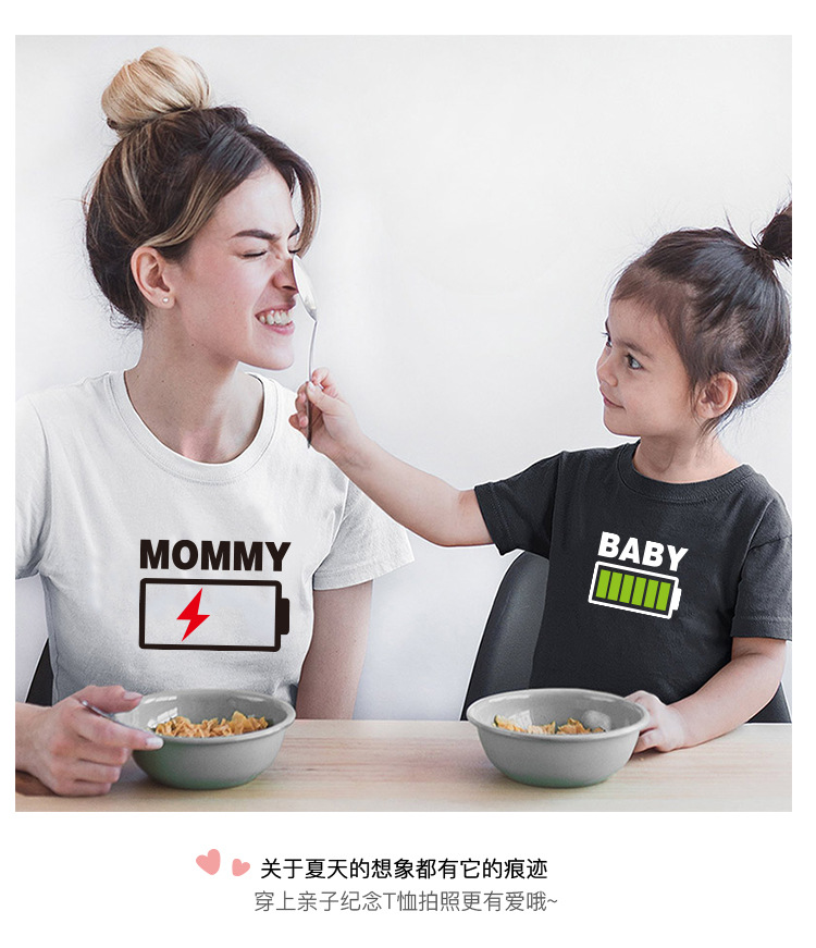 Transfronterizo exclusivo padre-hijo desgaste verano Camiseta de manga corta familia madre-hijo madre-hija vaina blanco y negro camiseta bebé foto