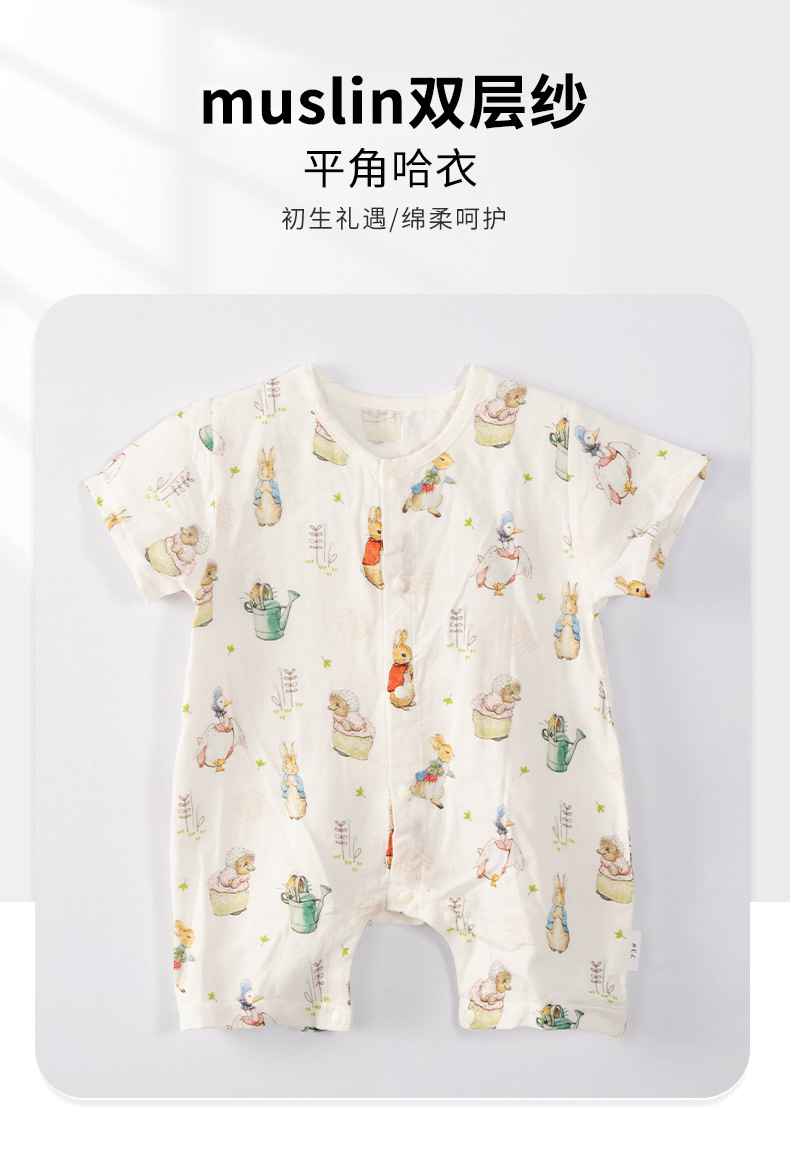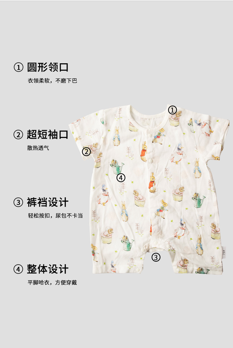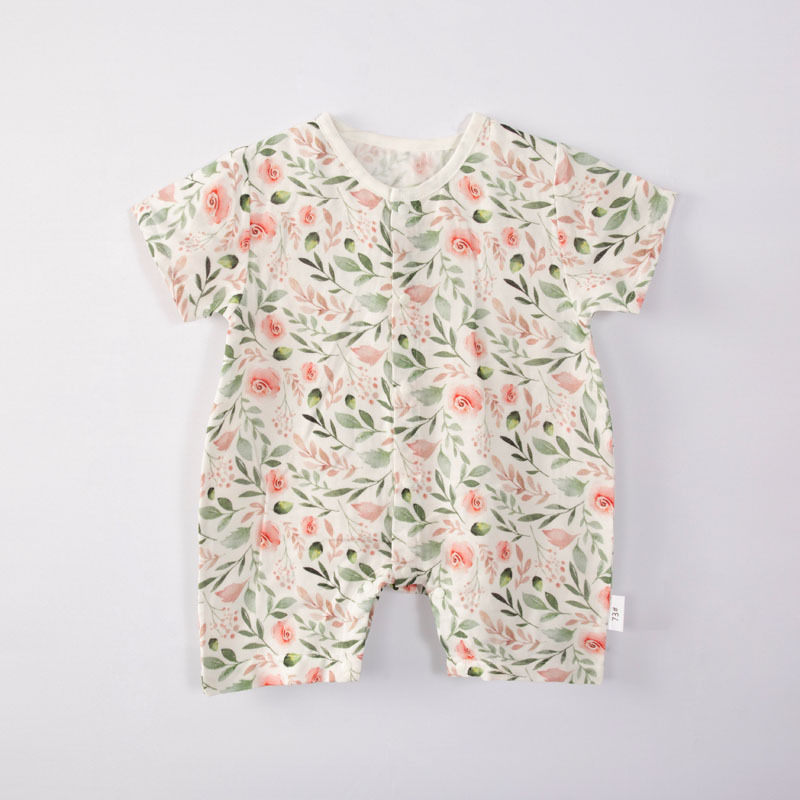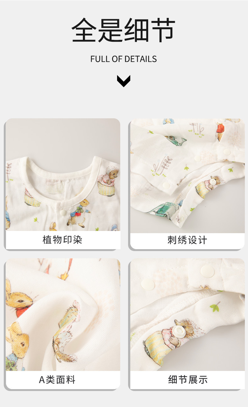 Ropa fresca de verano para bebé, mono de manga corta de gasa de algodón de bambú antibacteriano tipo A, fino.