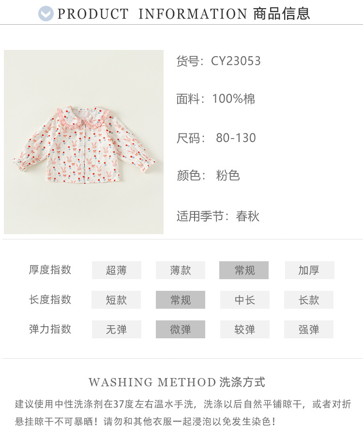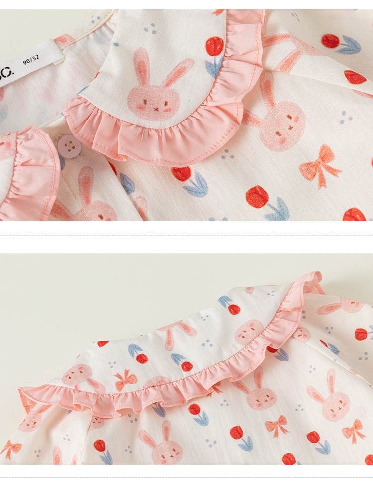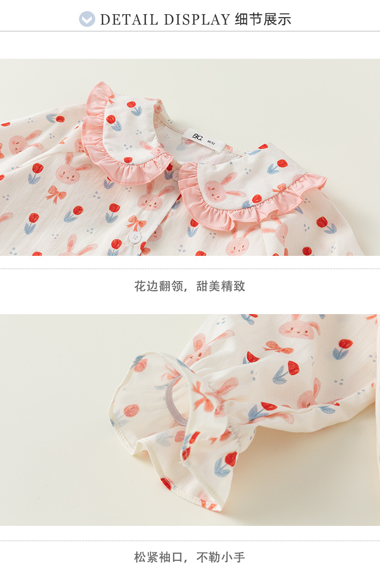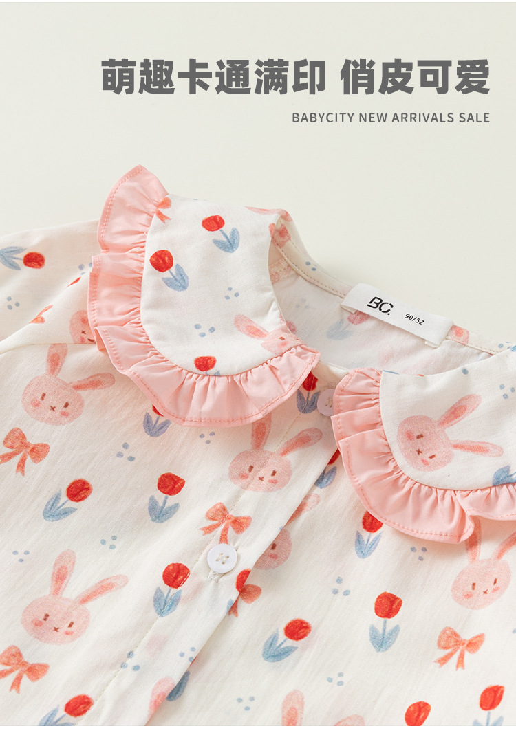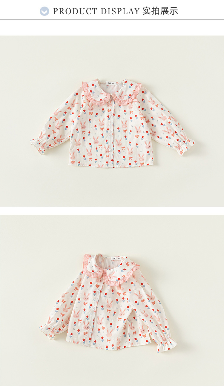 Beibei ciudad primavera y otoño 2024 dulce niña conejo pequeña flor muñeca camisa de los niños camisa de las muchachas CY23053