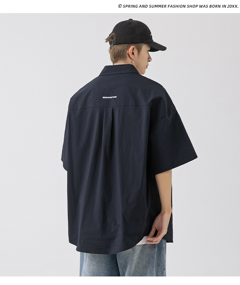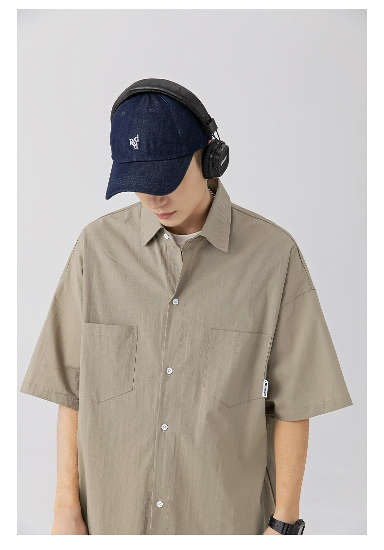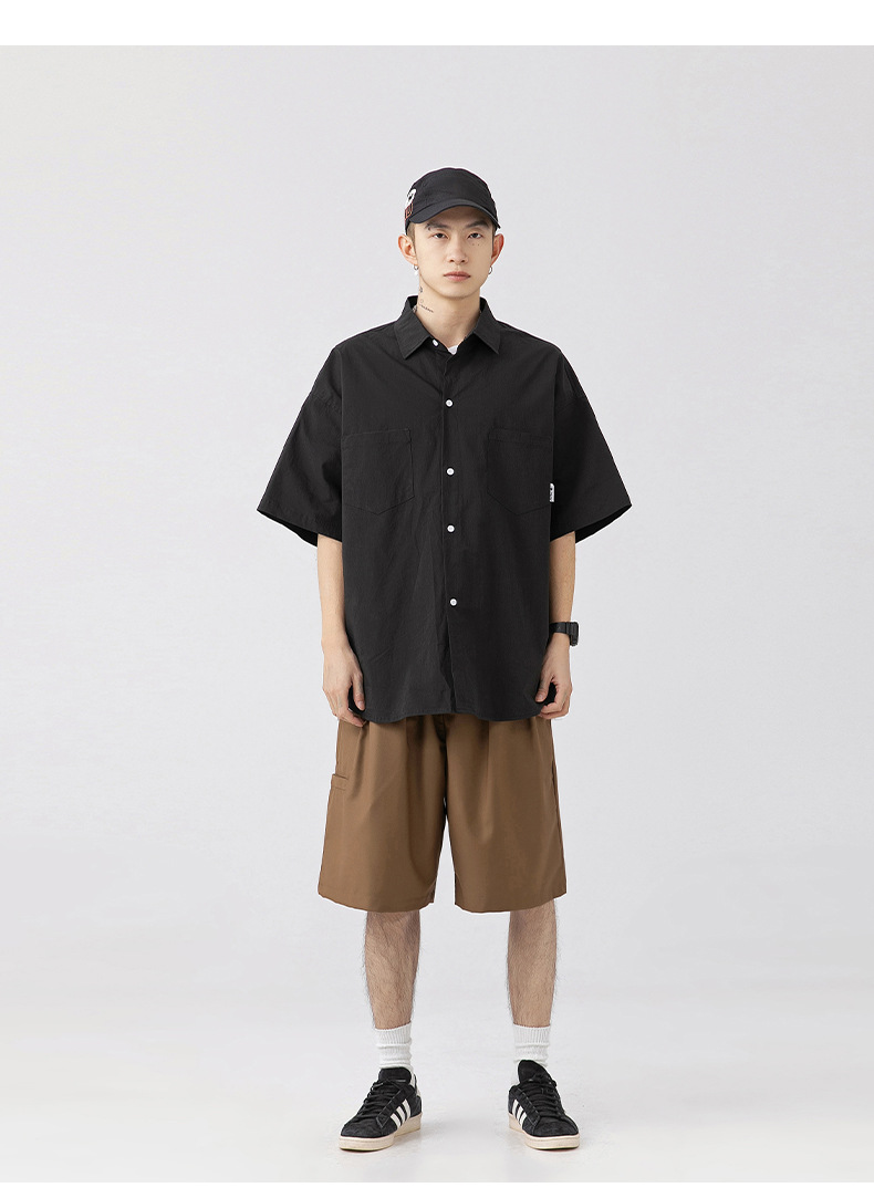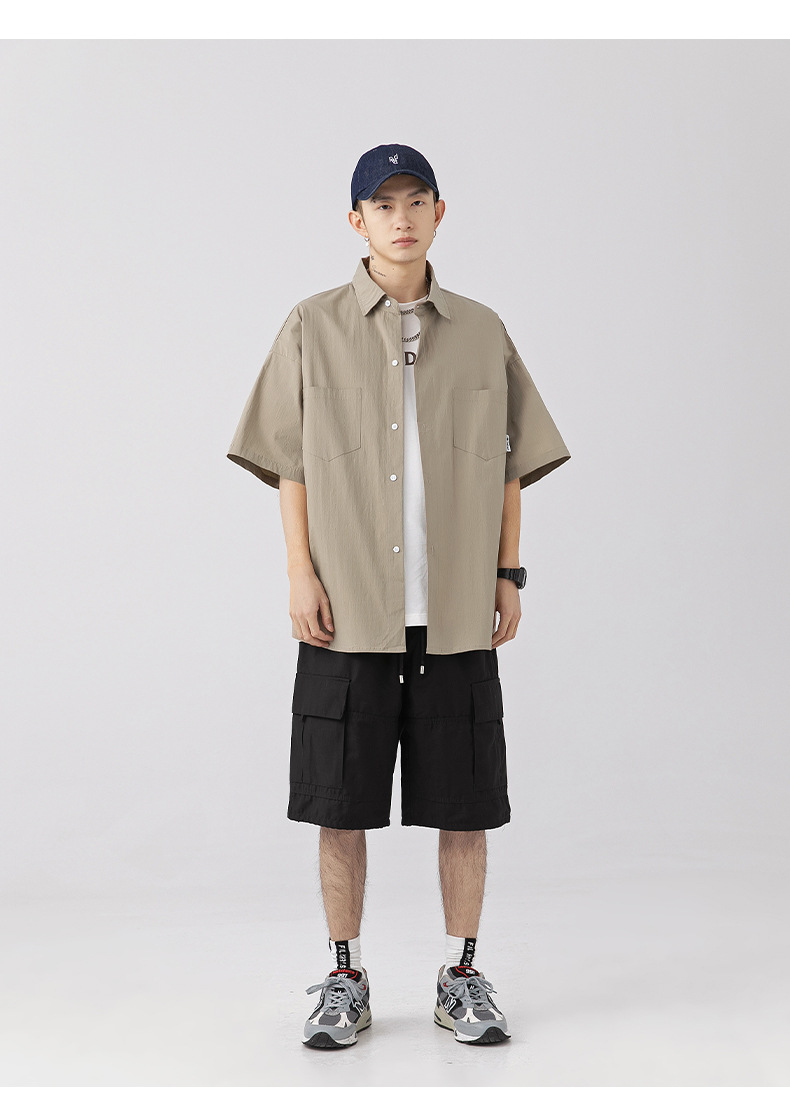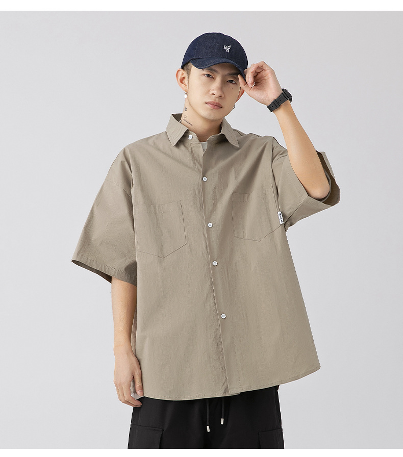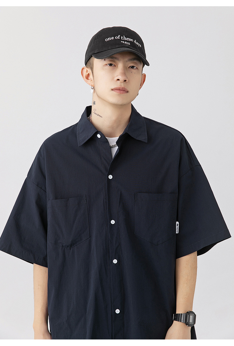 Camisa de manga corta con bolsillo de color sólido estilo retro coreano y japonés para hombre, camisa de trabajo de marca holgada y moderna para primavera y verano para hombre q