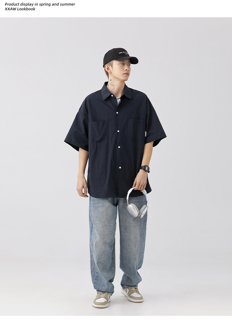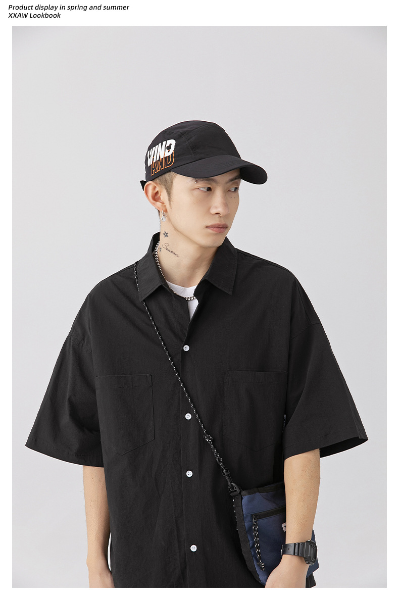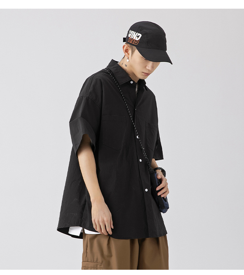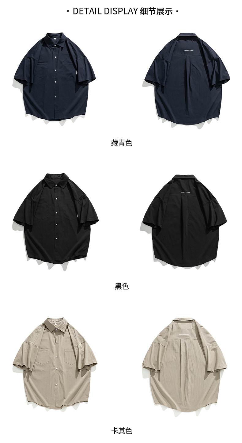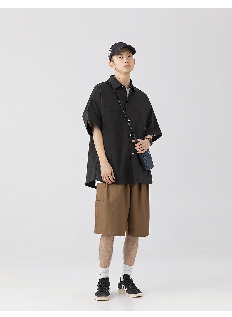Camisa de manga corta con bolsillo de color sólido estilo retro coreano y japonés para hombre, camisa de trabajo de marca holgada y moderna para primavera y verano para hombre q
