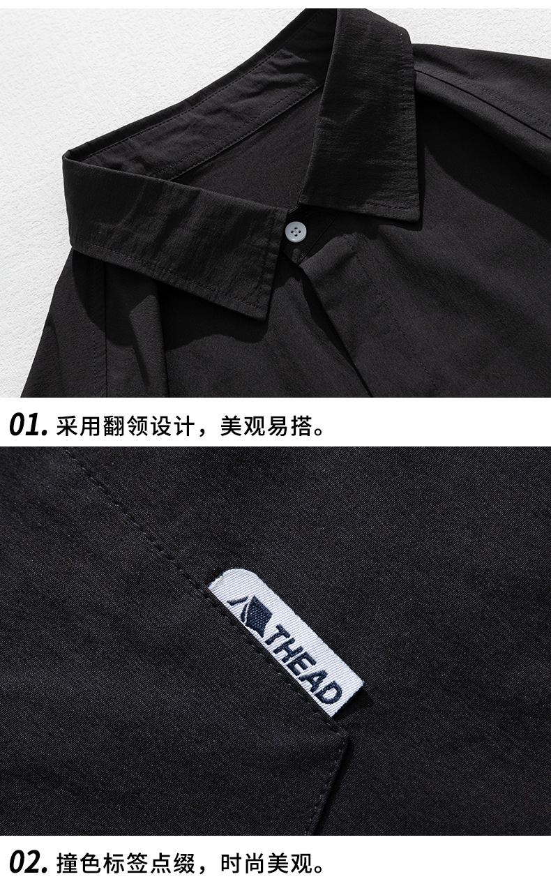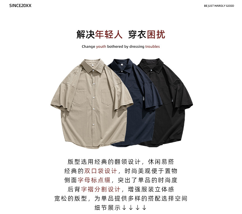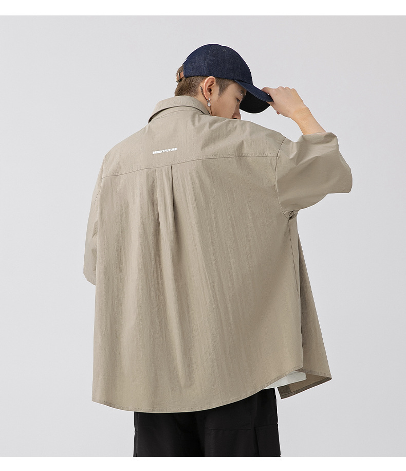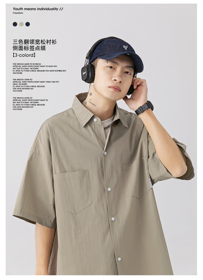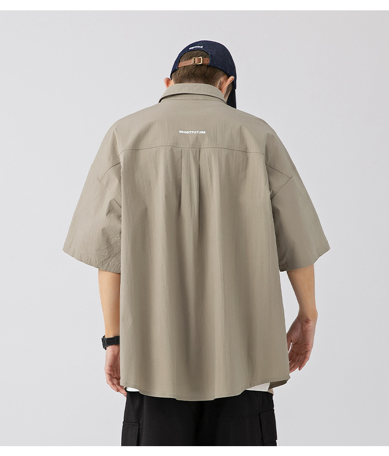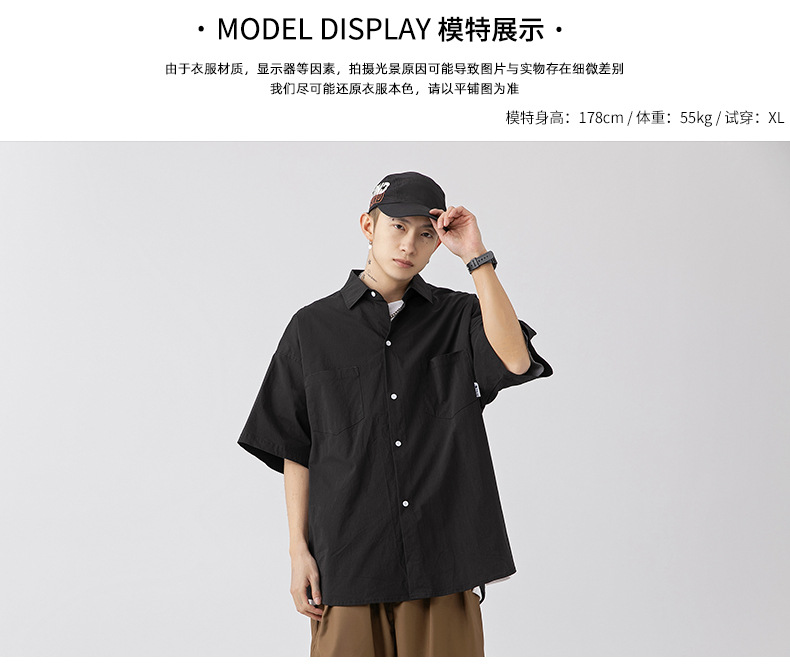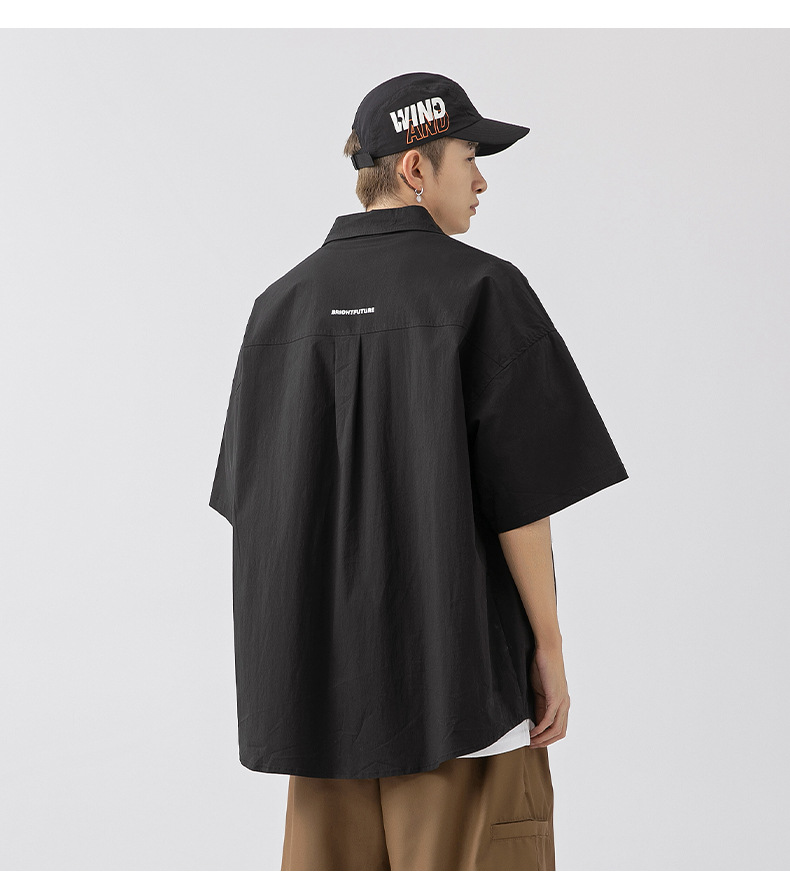 Camisa de manga corta con bolsillo de color sólido estilo retro coreano y japonés para hombre, camisa de trabajo de marca holgada y moderna para primavera y verano para hombre q