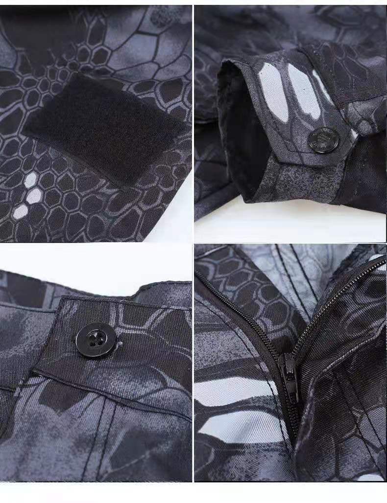Patrón de pitón negro nuevo traje de ropa de trabajo de una pieza para hombres traje de ropa de camuflaje ropa de trabajo delgada de verano para hombres ropa de trabajo resistente al desgaste