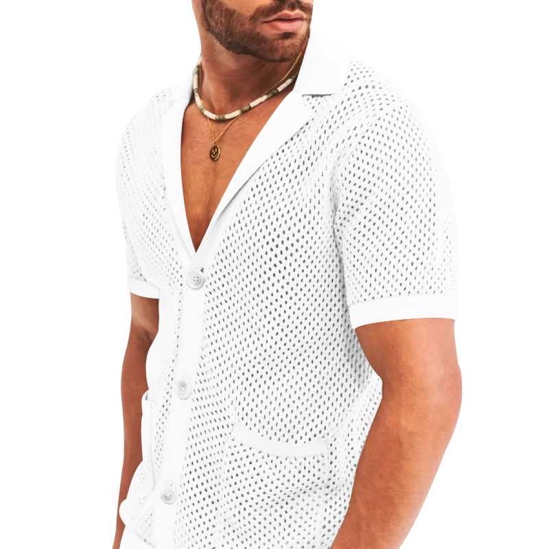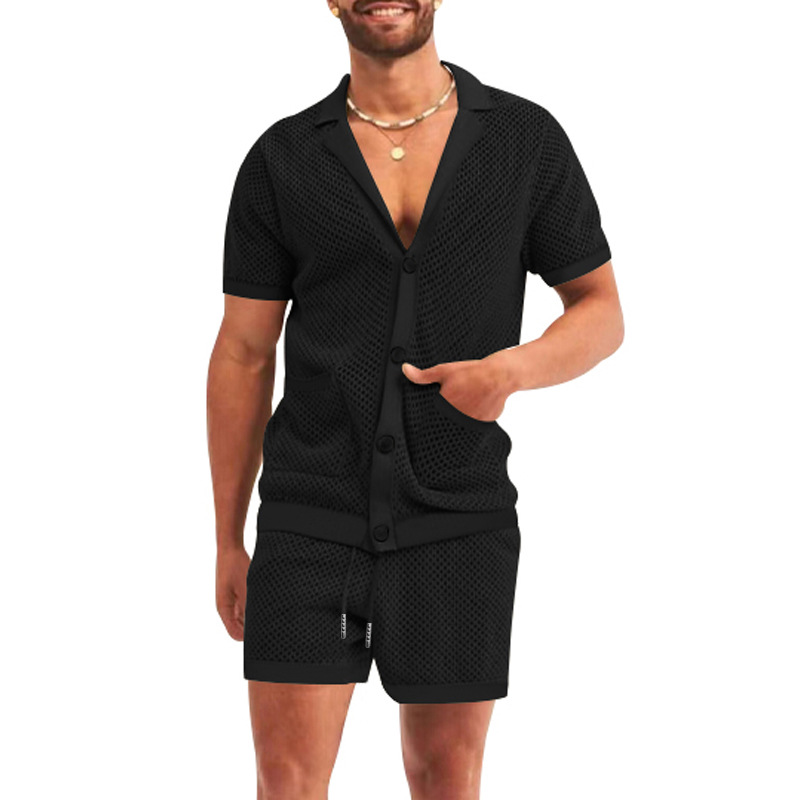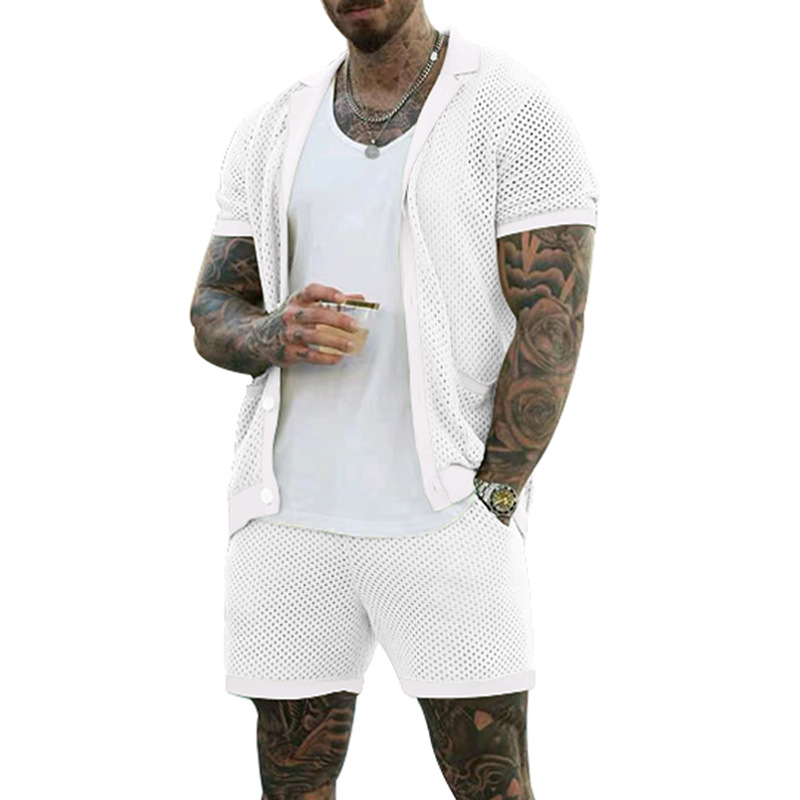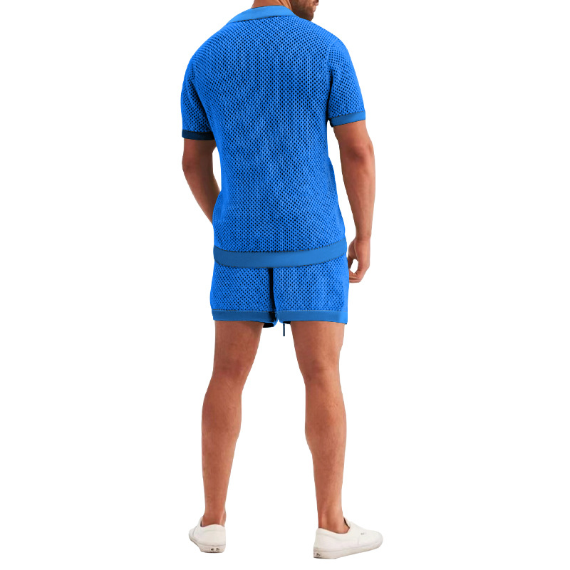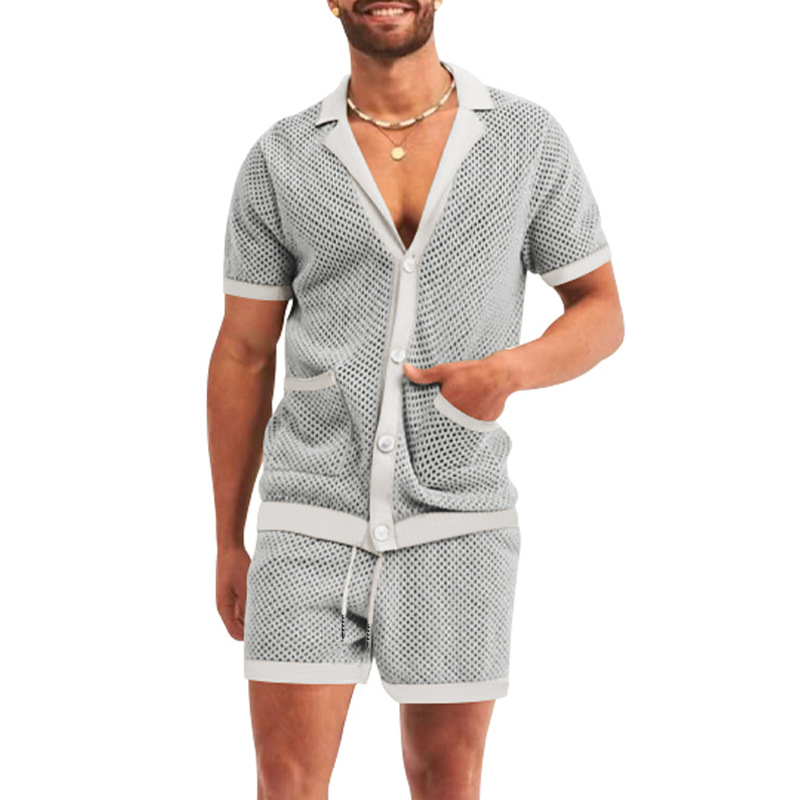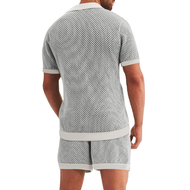 Traje de verano de ropa de hombre transfronterizo de Amazon de malla europea y americana de punto casual camiseta de solapa pantalones cortos de manga corta ropa de hombre