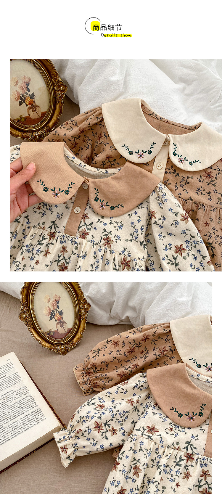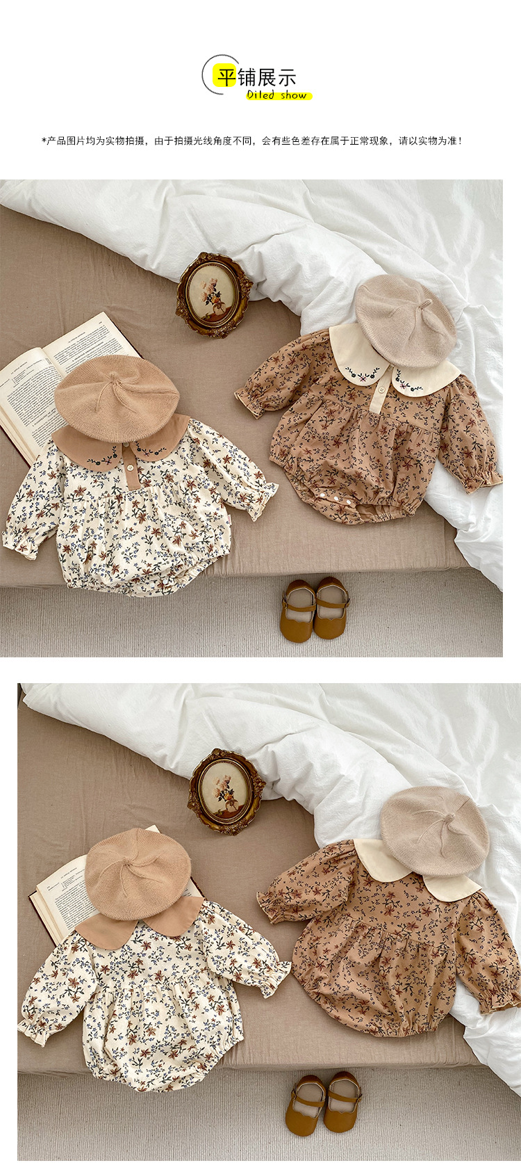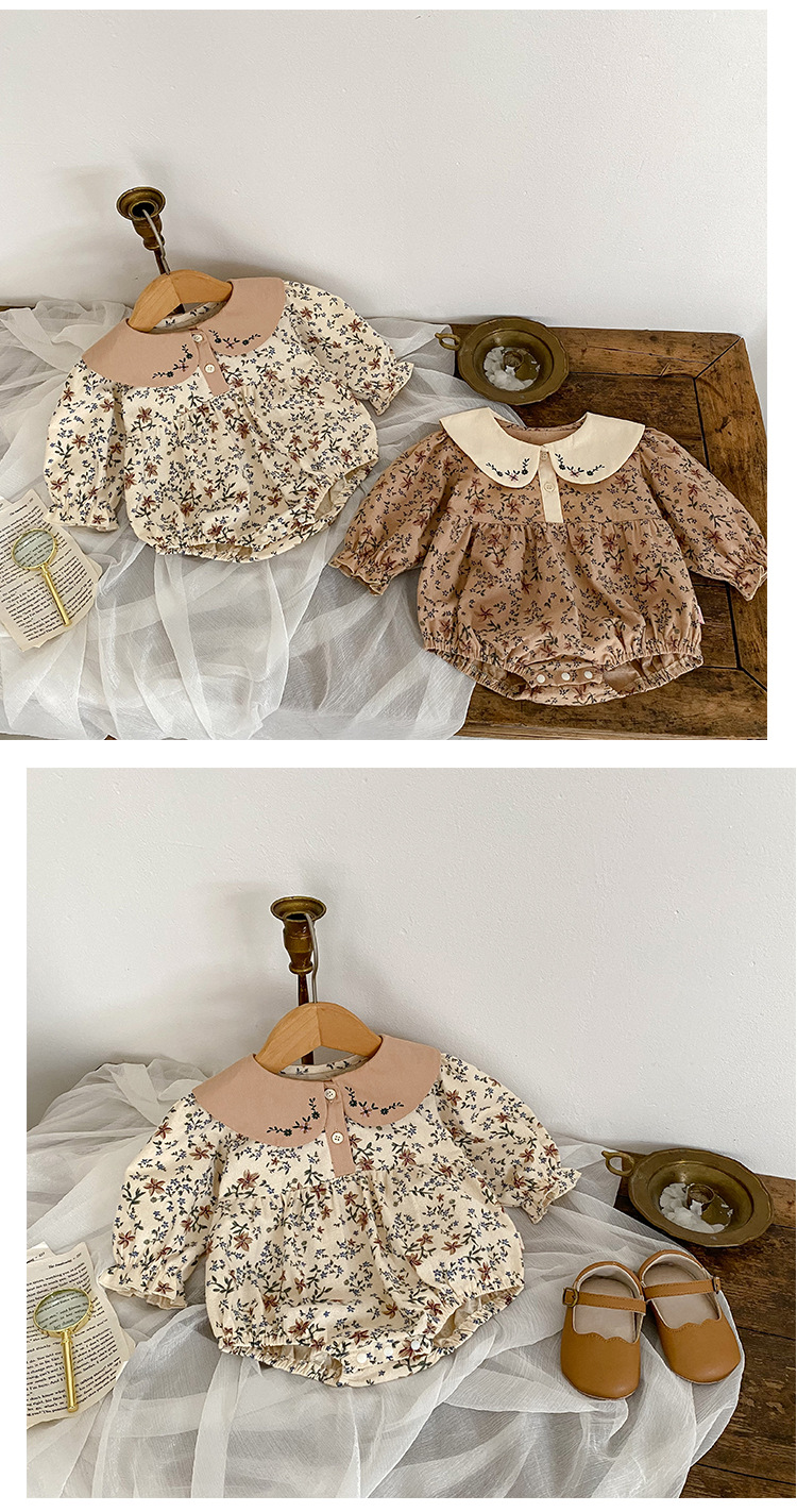 Primavera 2023 bebé niña manga larga vintage floral vaina bebé muñeca collar bordado mameluco estilo occidental Outwear