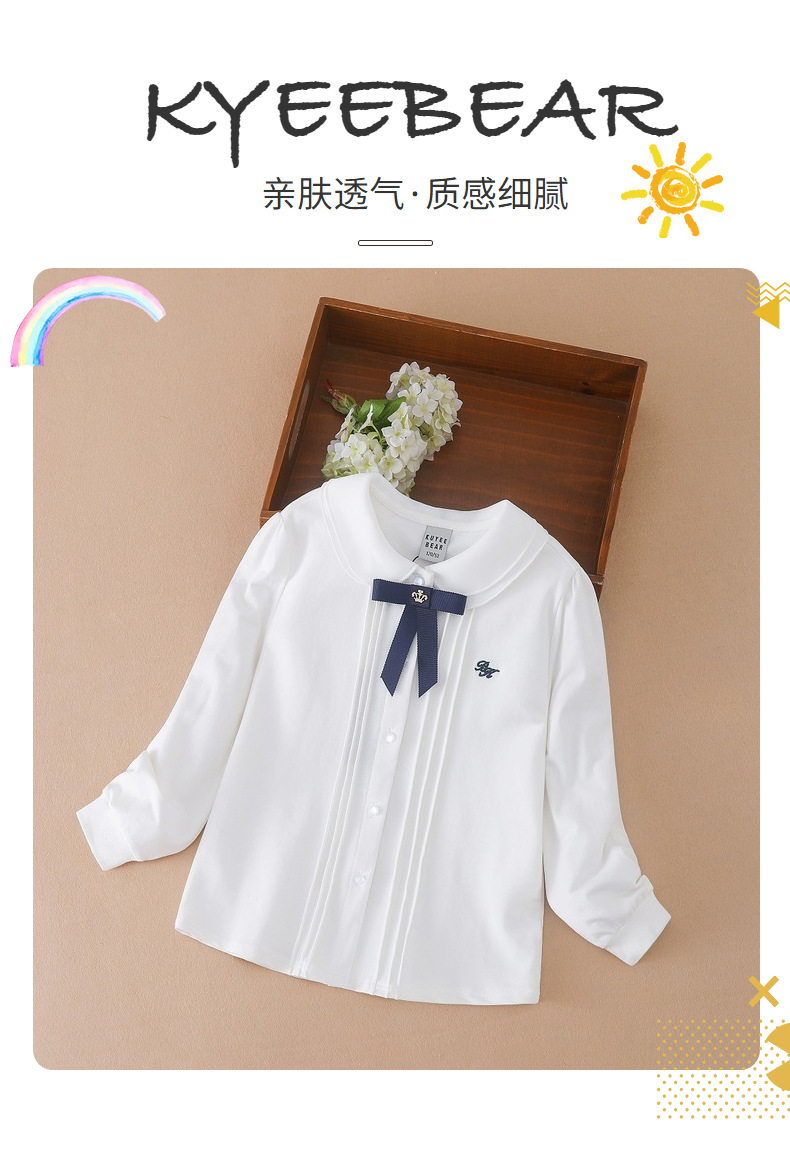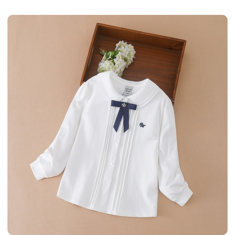 Camisa de las niñas de manga larga primavera camisa blanca de los nuevos niños camisa de la muñeca de algodón