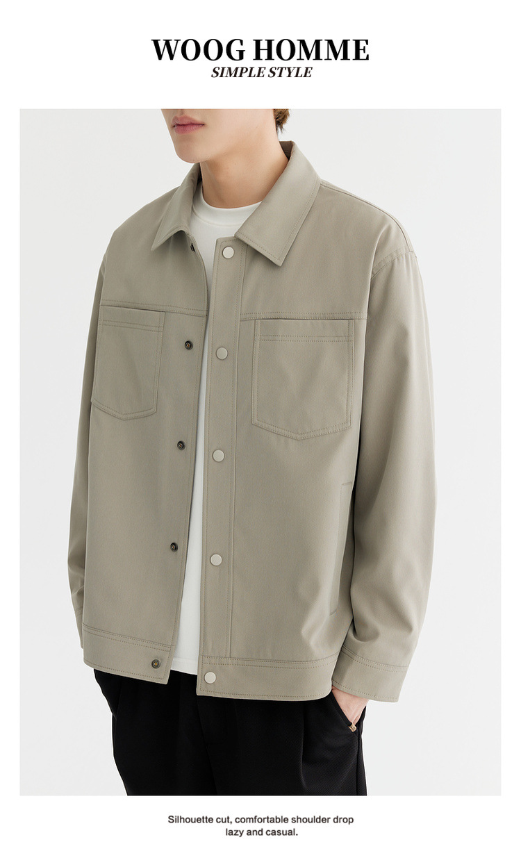 Chaqueta de Solapa Básica Simple de Color Sólido WOOG2005 para Hombre, Abrigo Informal Versátil de Moda Otoño 2025 para Hombre