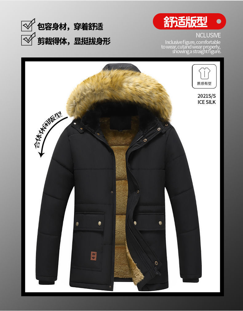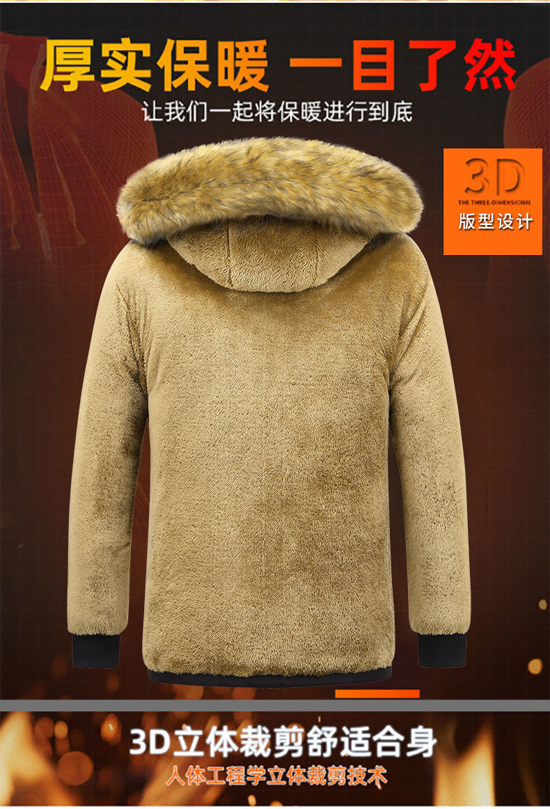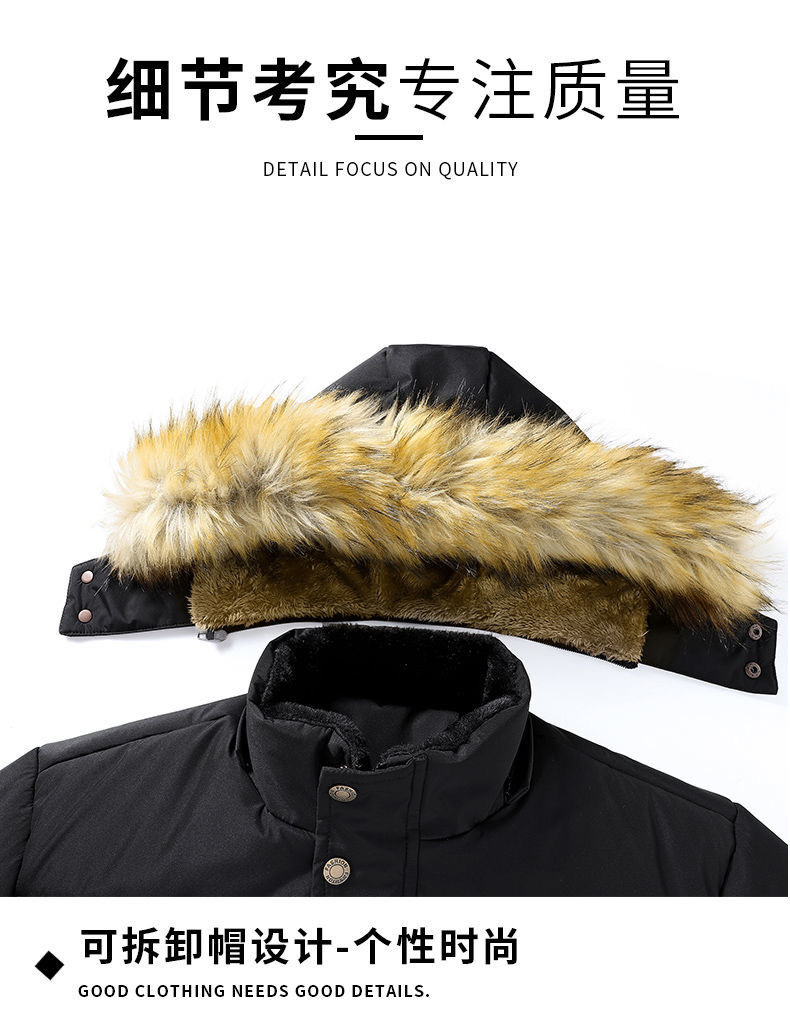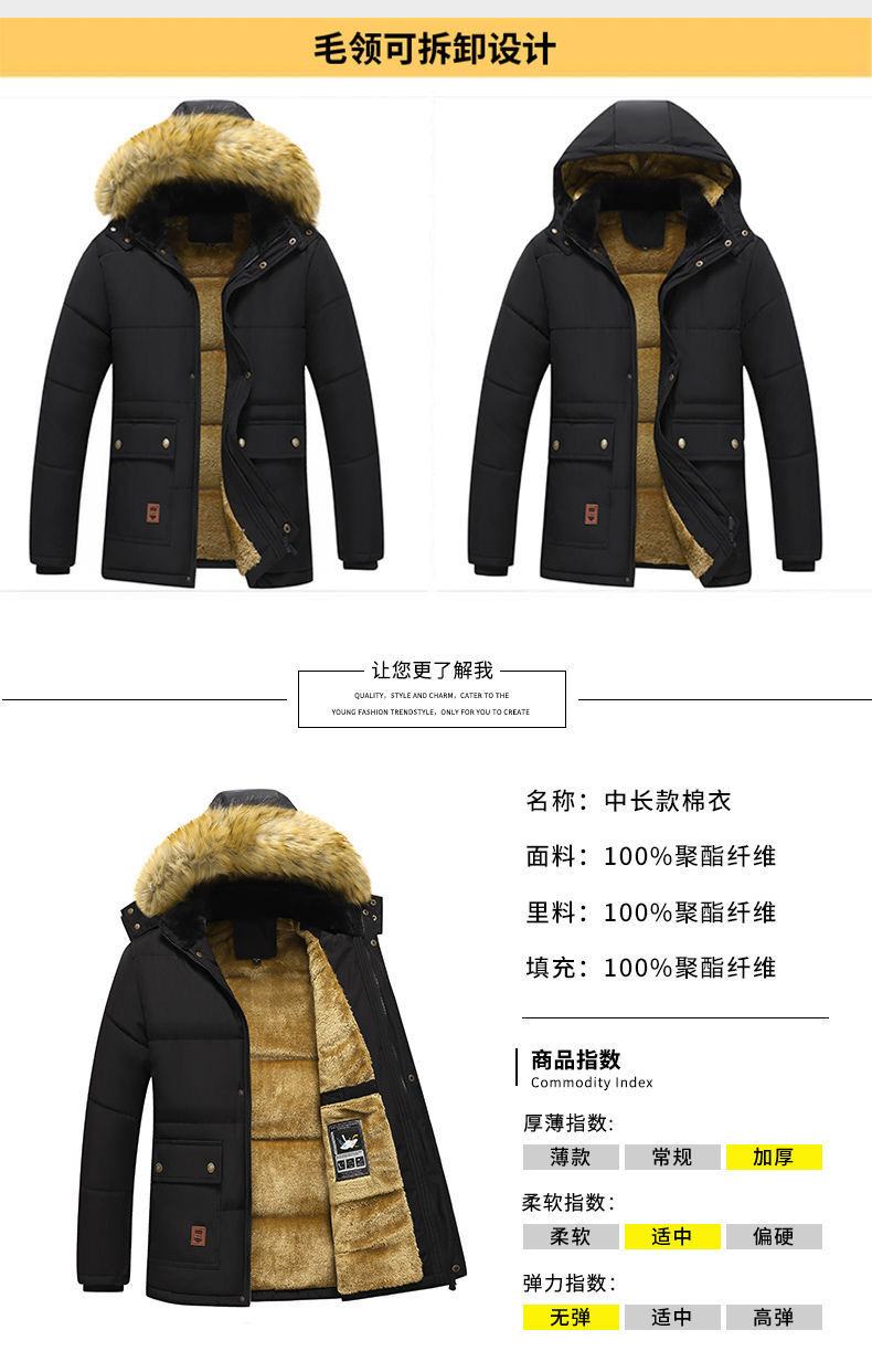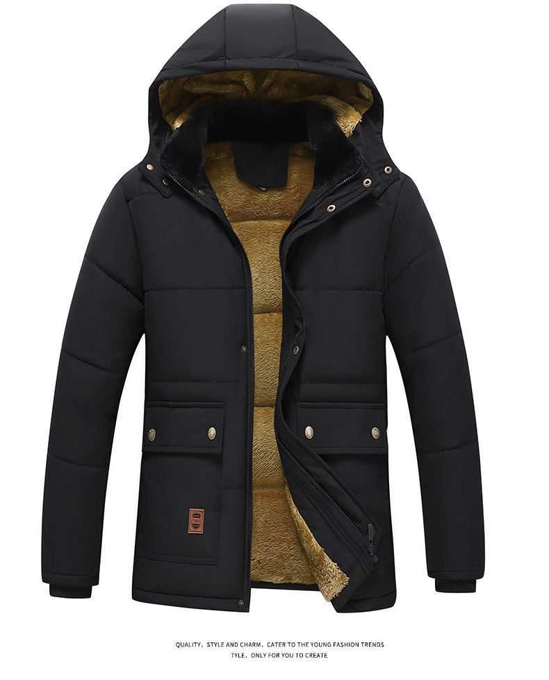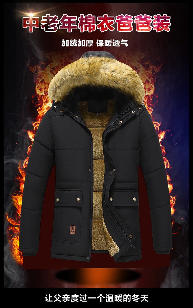 Se puede fijar patrón LOGO hombres de mediana edad forrado de lana engrosado Cuello de piel con capucha traje de algodón