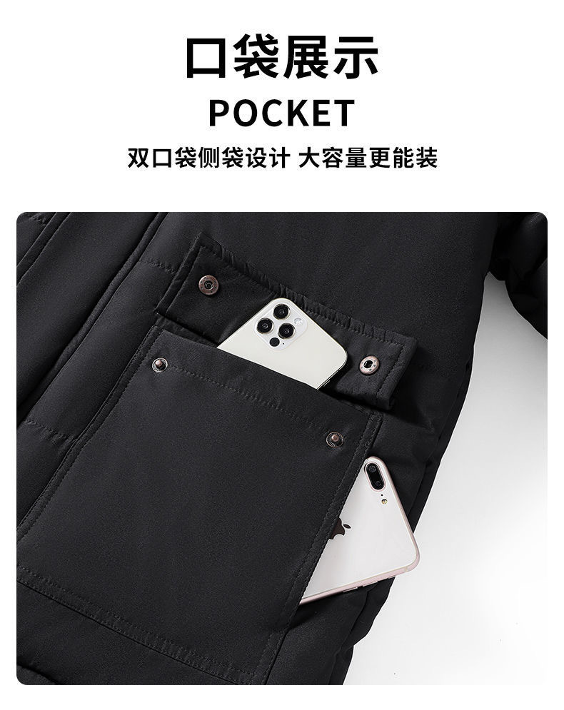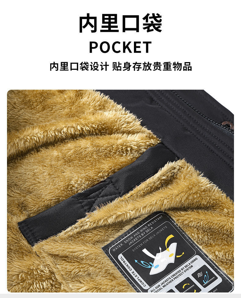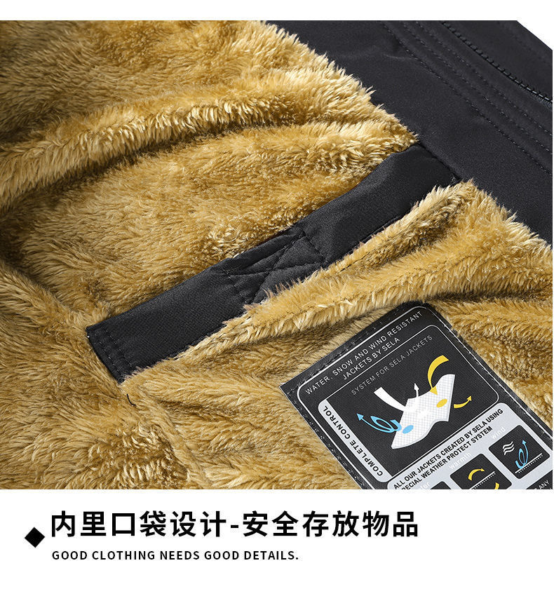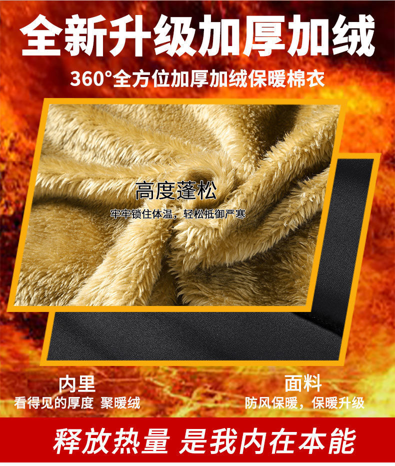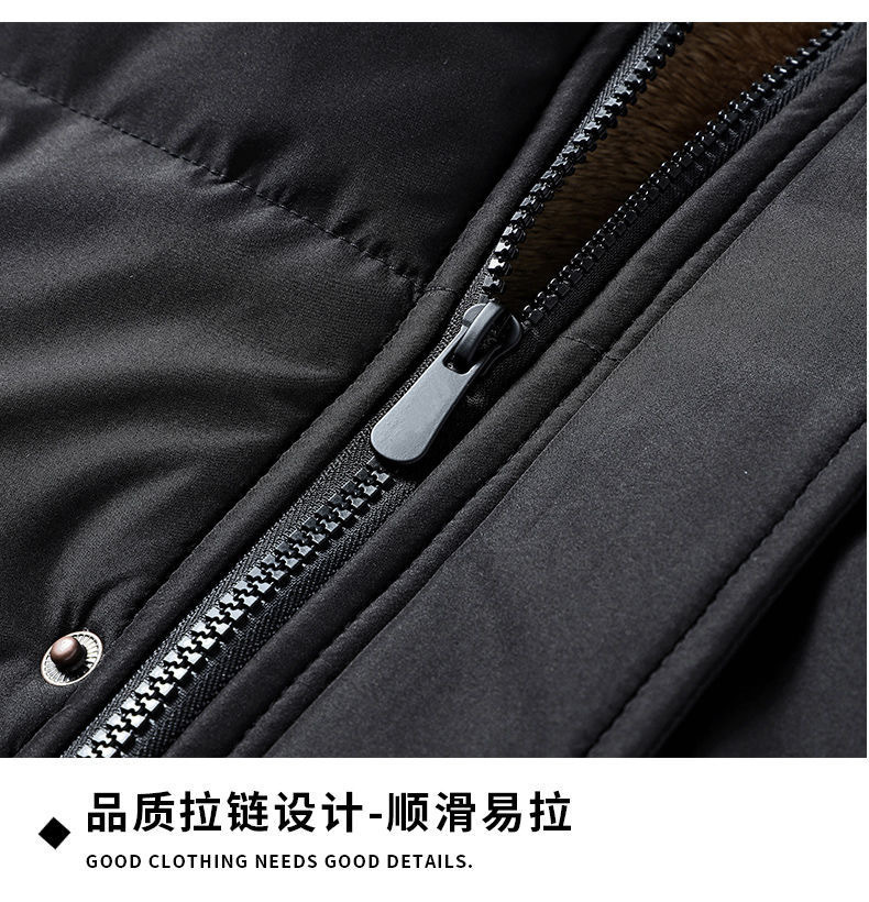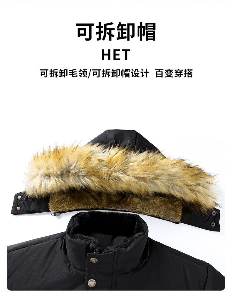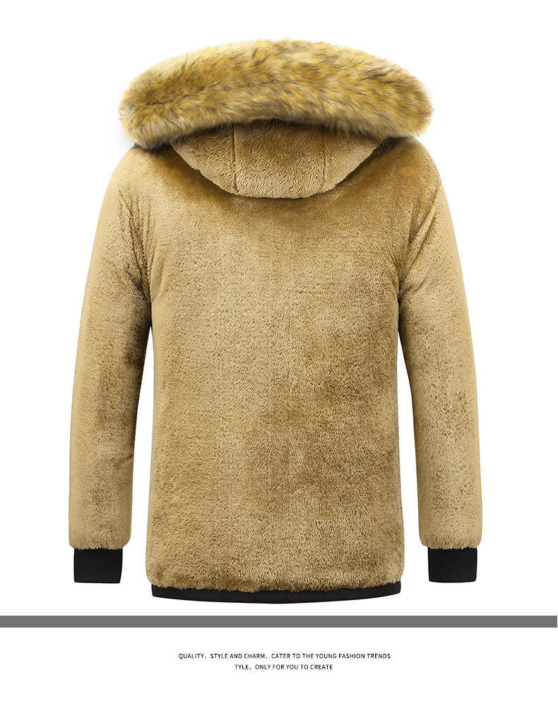 Se puede fijar patrón LOGO hombres de mediana edad forrado de lana engrosado Cuello de piel con capucha traje de algodón