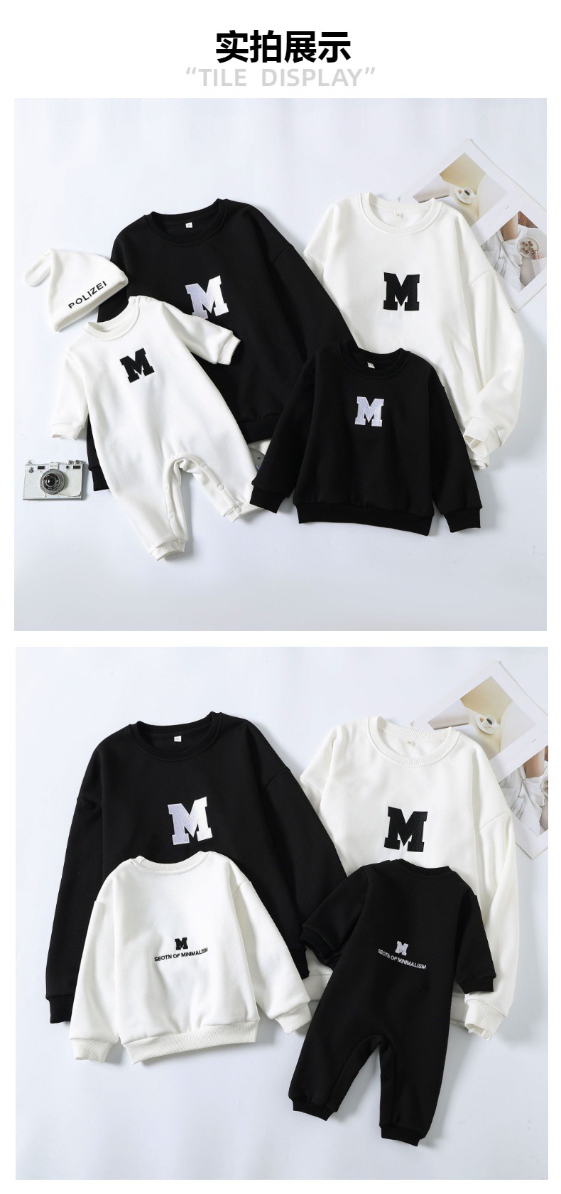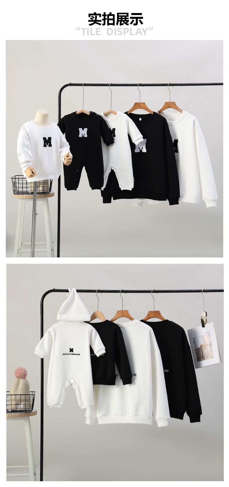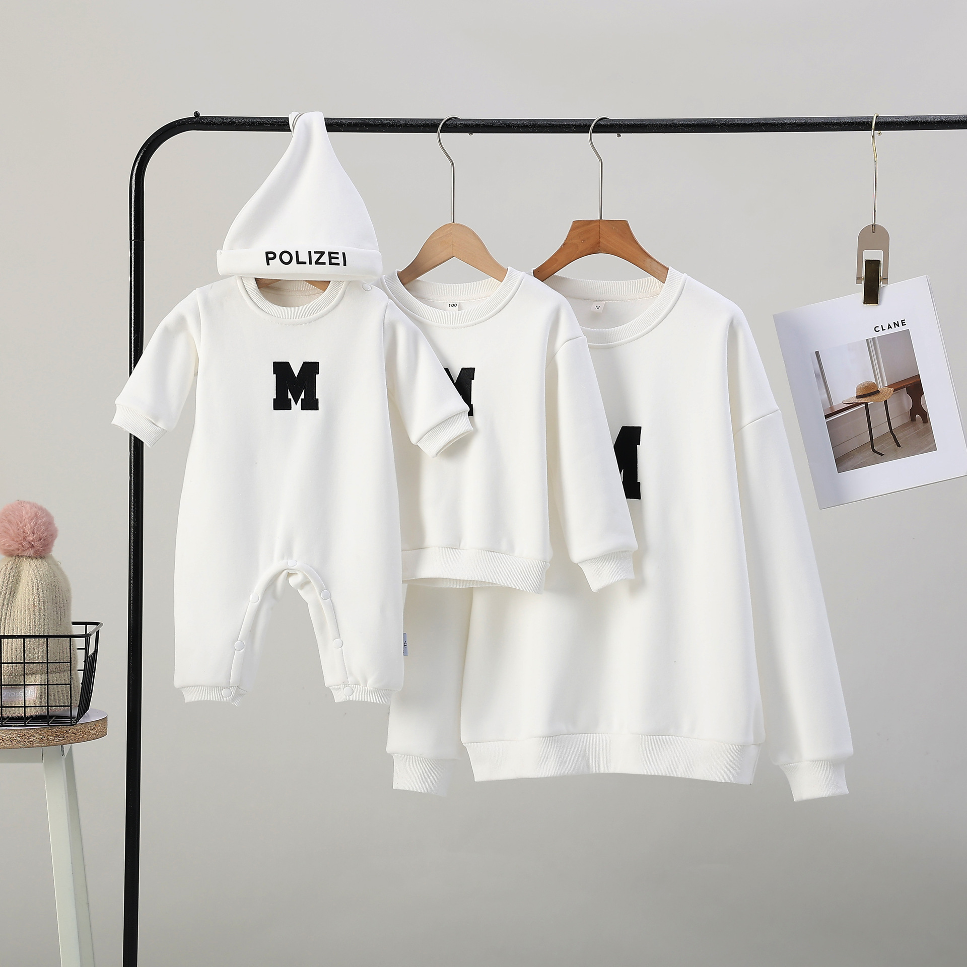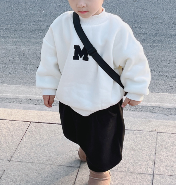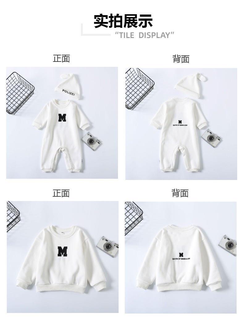 Ropa de padre e hijo ropa de invierno una letra de tres bocas de cuatro bocas M bordado suéter de cuello redondo forrado de lana engrosado Mono de bebé moda