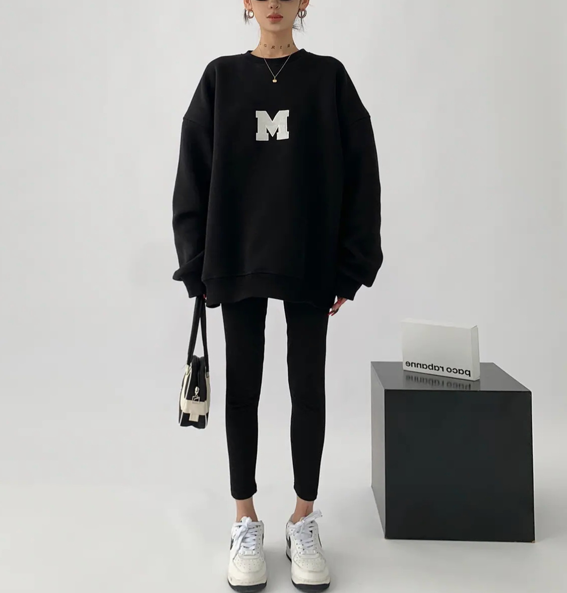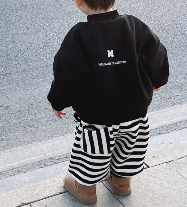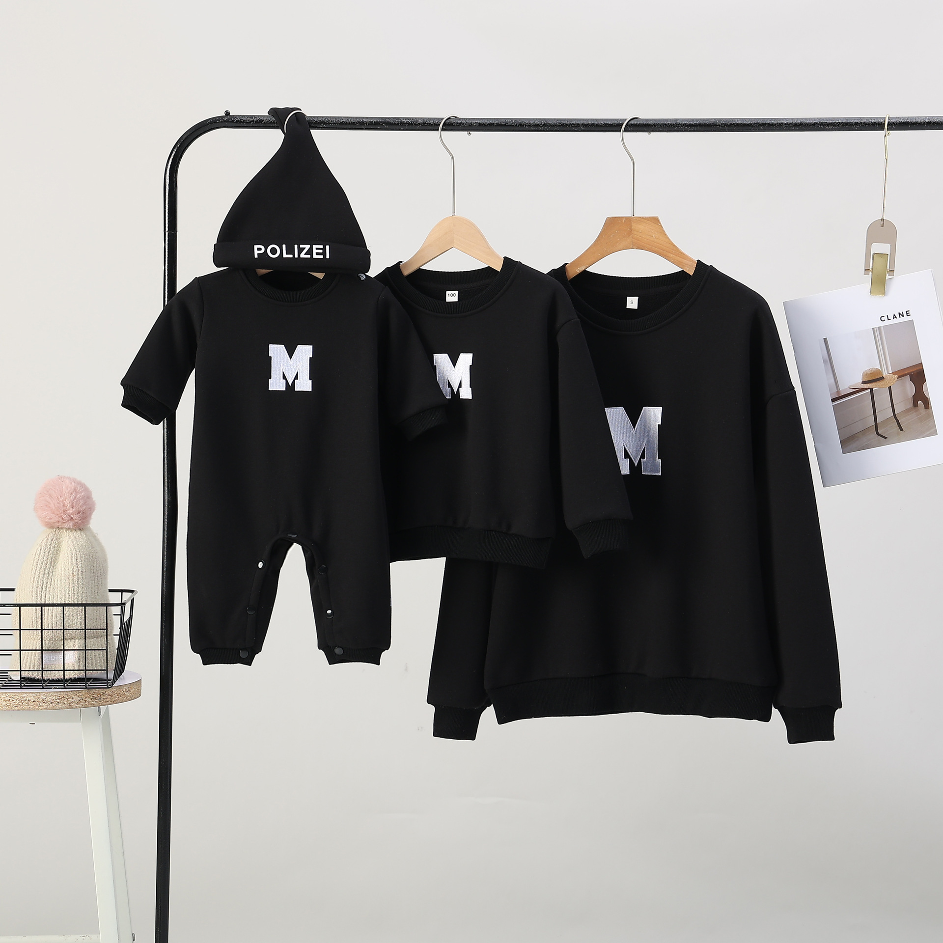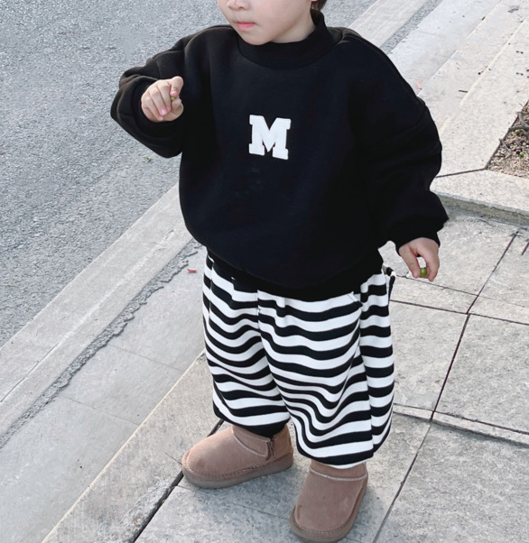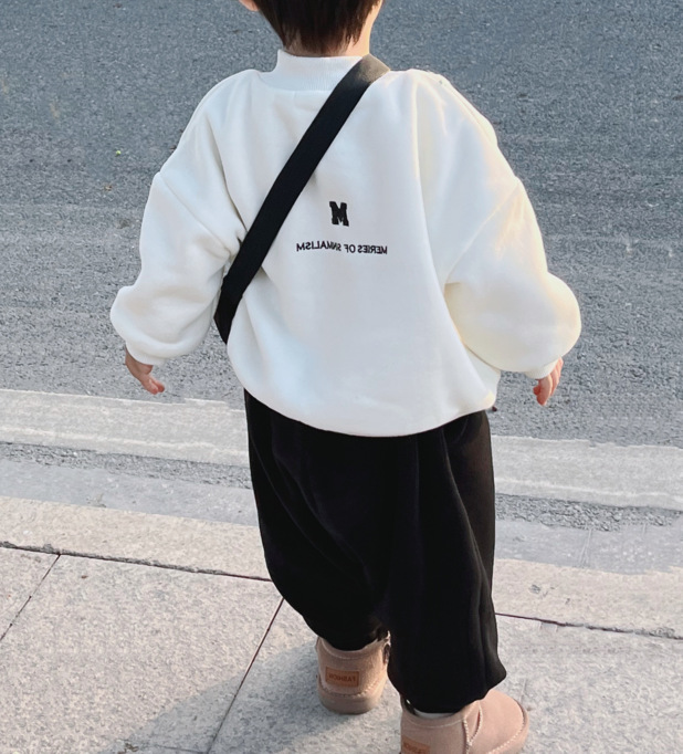 Ropa de padre e hijo ropa de invierno una letra de tres bocas de cuatro bocas M bordado suéter de cuello redondo forrado de lana engrosado Mono de bebé moda