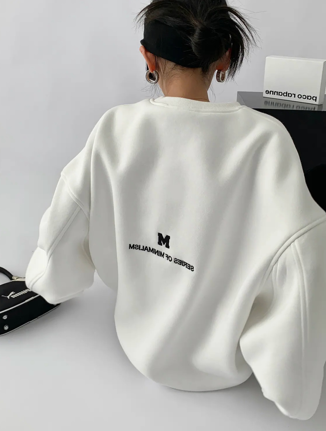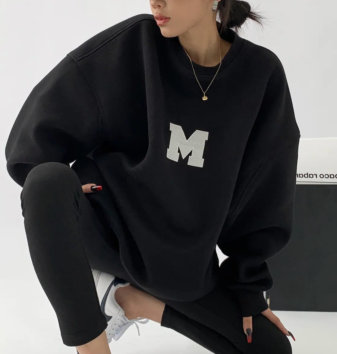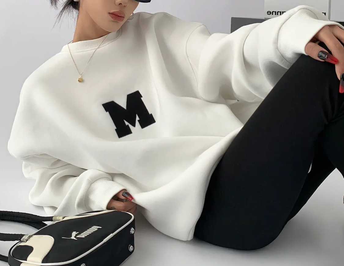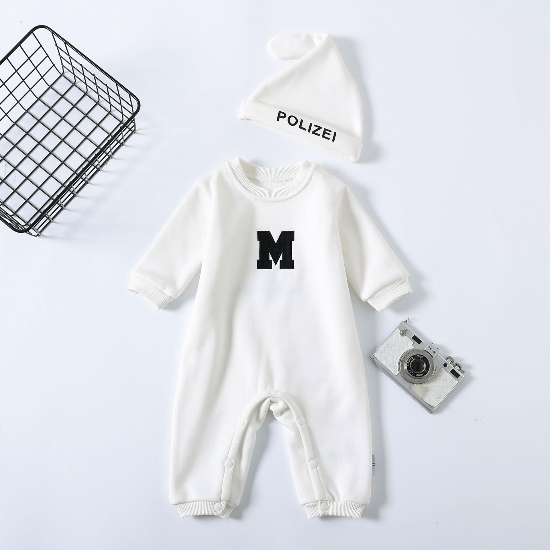 Ropa de padre e hijo ropa de invierno una letra de tres bocas de cuatro bocas M bordado suéter de cuello redondo forrado de lana engrosado Mono de bebé moda