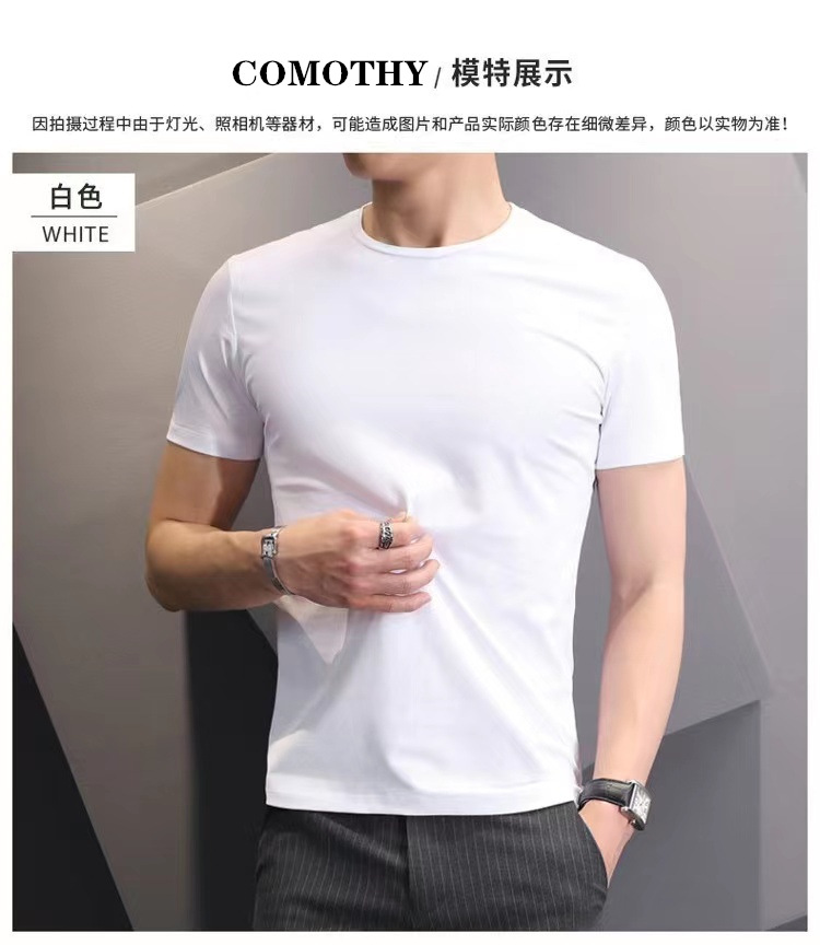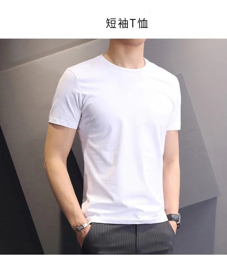 Venta al por mayor de los hombres de color sólido de manga corta Camiseta más tamaño verano estilo coreano slim fit moda guapo cuello redondo media manga camiseta