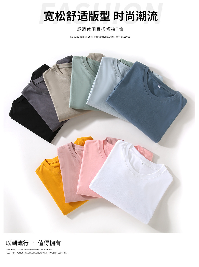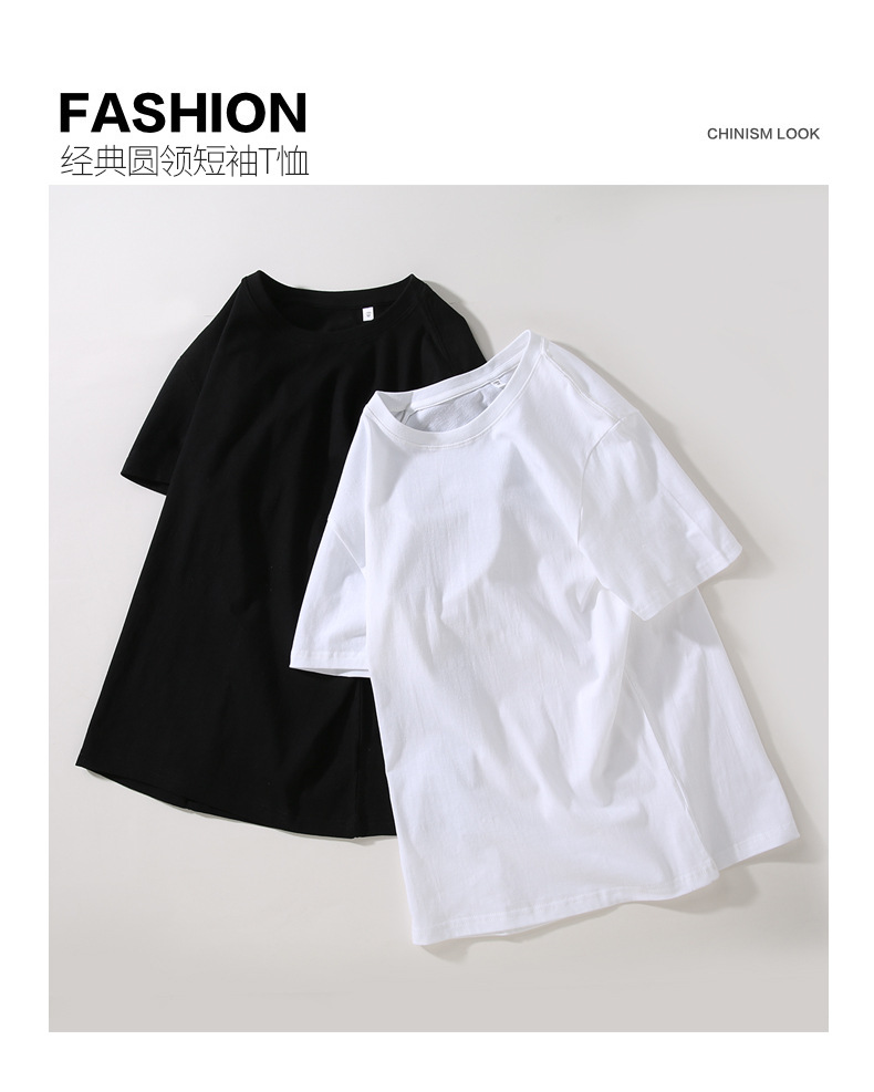 2025 Xinjiang algodón puro de fibra larga 180g cuello redondo hombres y mujeres color puro camisetas de manga corta ropa casual versátil de manga corta al por mayor