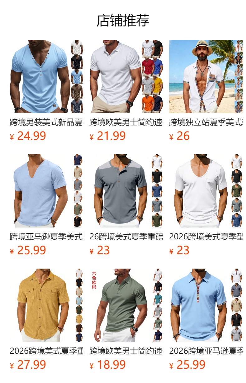 Camiseta Henley deportiva casual de manga corta con cuello redondo para hombre, color liso, estilo slim, para jóvenes, comercio exterior transfronterizo 2026