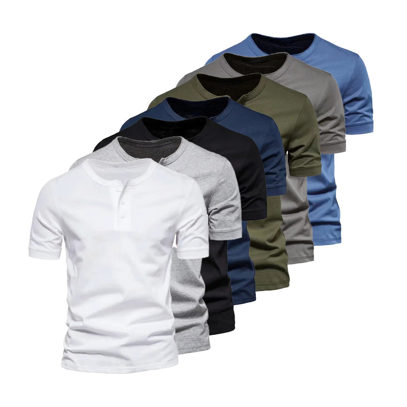 2025 comercio exterior hombres transfronterizos cuello redondo manga corta hombres jóvenes ocio delgado deportes Henry camisa color sólido camiseta hombres