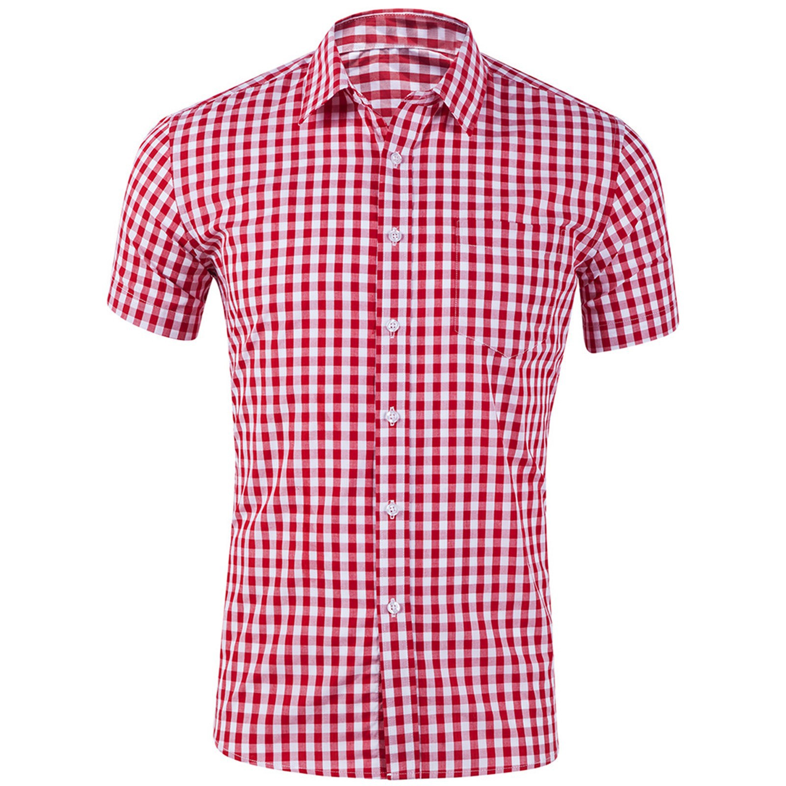 2023 Comercio exterior transfronterizo camisa de tamaño estadounidense solapa de los hombres camisa de manga corta casual pequeña camisa de manga corta a cuadros