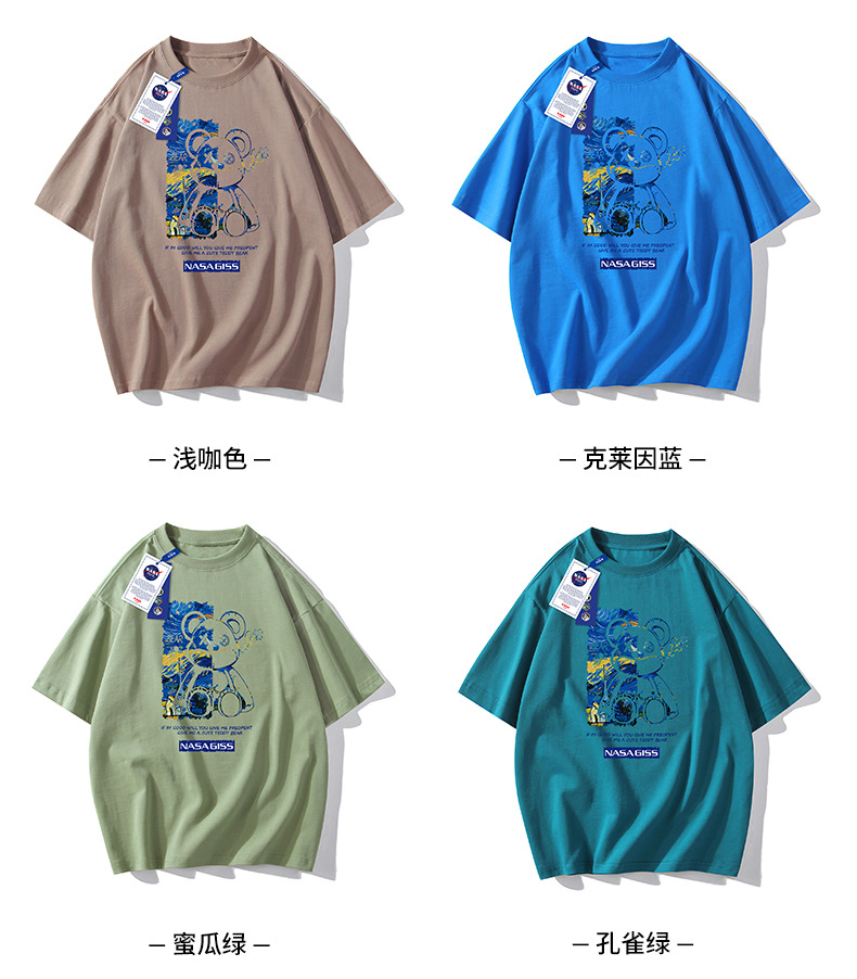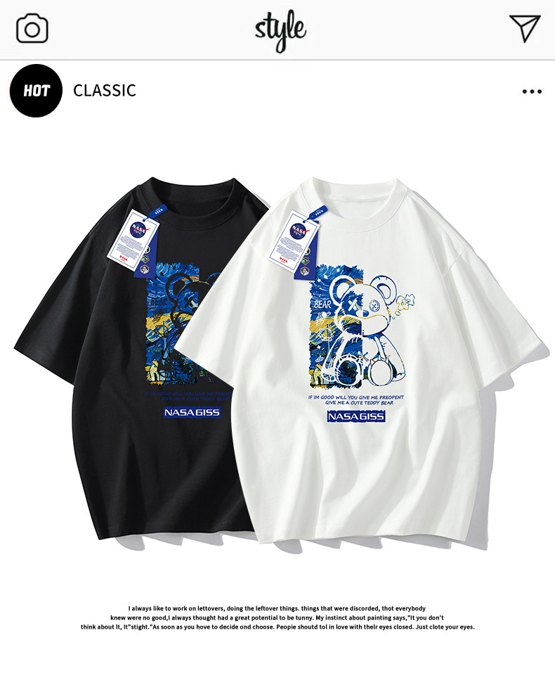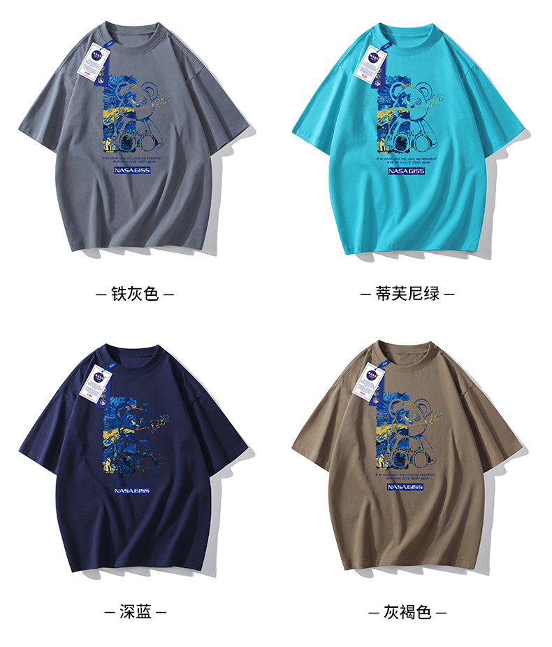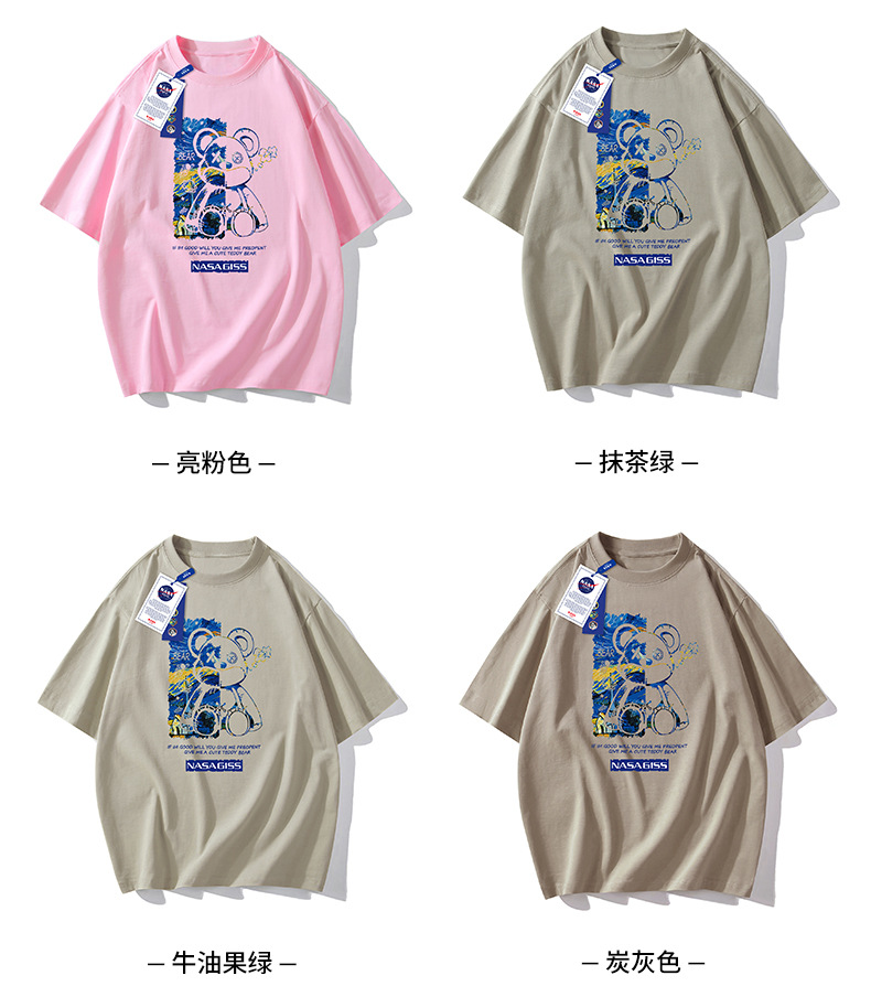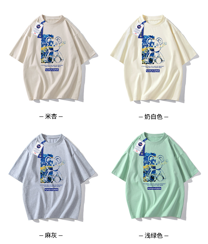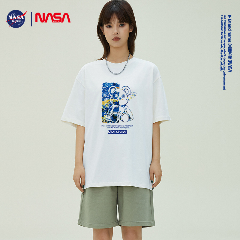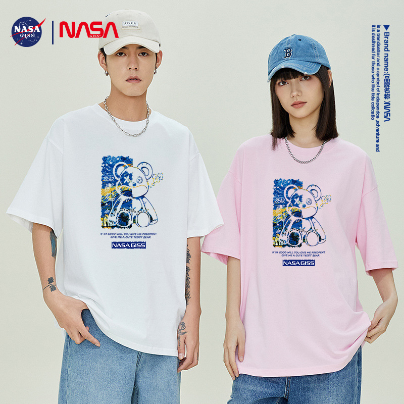 NASAGISS pesado nombre conjunto de los hombres de manga corta Camiseta de la pareja de las mujeres de la marca de moda de verano suelta media manga adolescentes