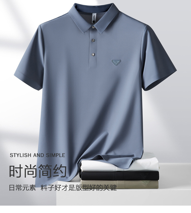 Polo de manga corta sin costuras para hombre, ropa masculina de alta gama, camiseta informal profesional para hombre, top negro de lujo ligero y moderno