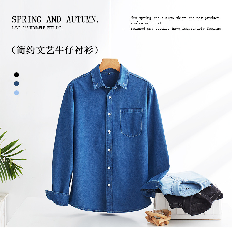 Comercio exterior primavera y otoño puro algodón lavado camisa de mezclilla manga larga moda todo fósforo de los hombres ropa de trabajo camisa japonesa chaqueta casual