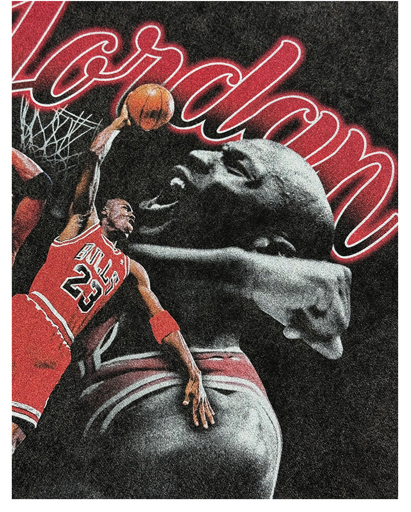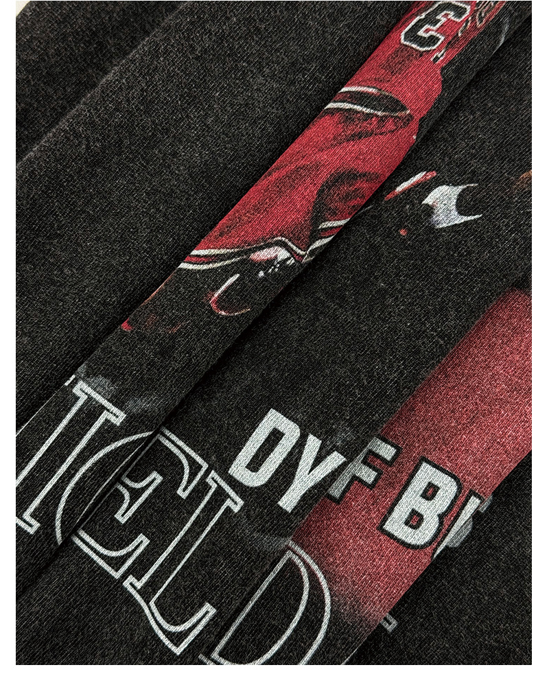 Leyenda aérea transfronteriza vintage Camiseta de manga larga con estampado retro americano con cuello pequeño y pesado lavado
