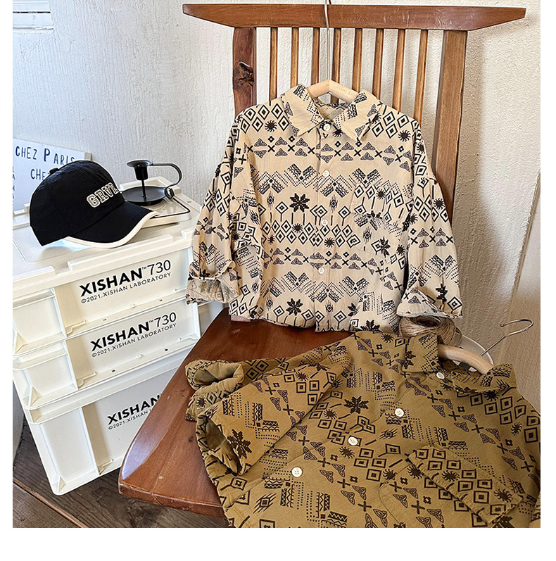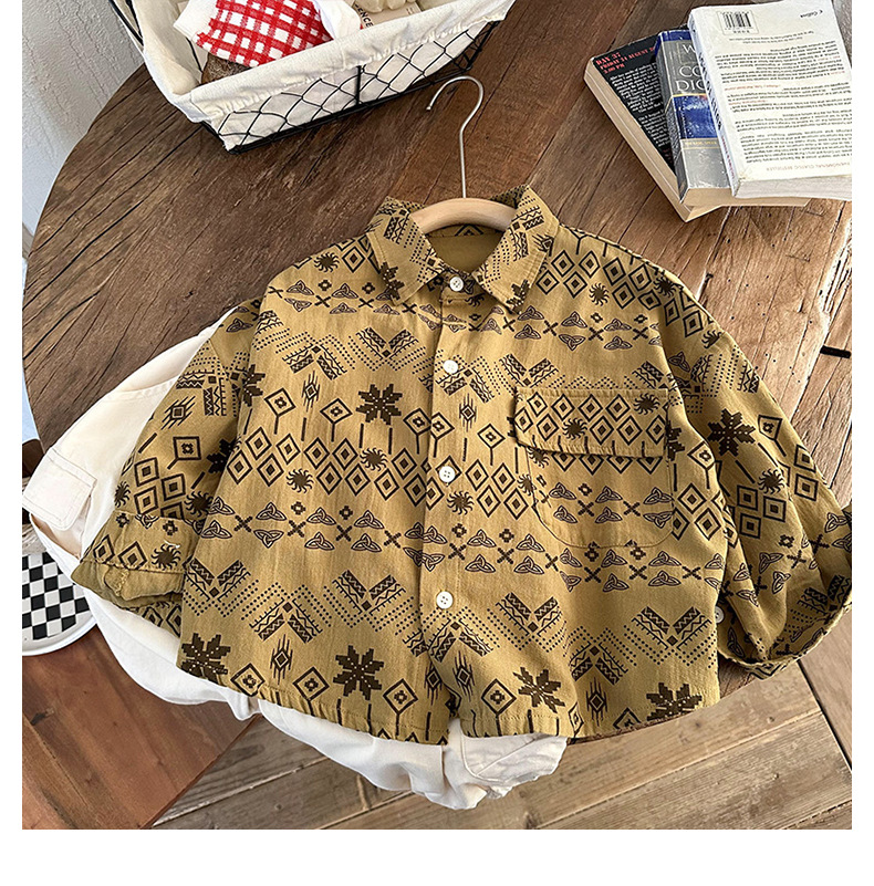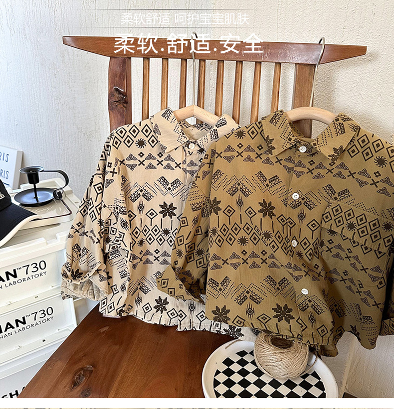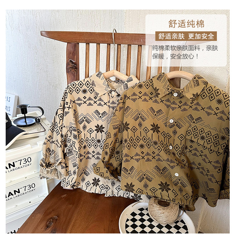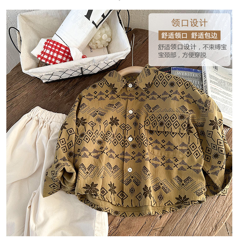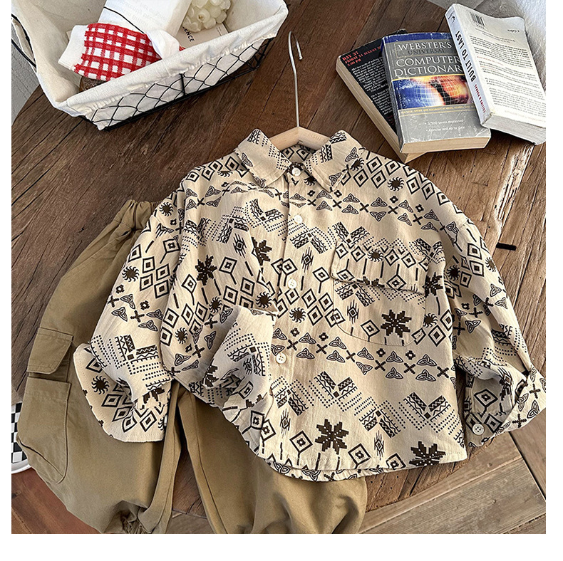 Camisa para niños fritos calle primavera y otoño moda casual solapa de manga larga camisa floral para niños otoño Estilo coreano estilo de Hong Kong top