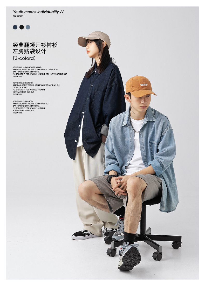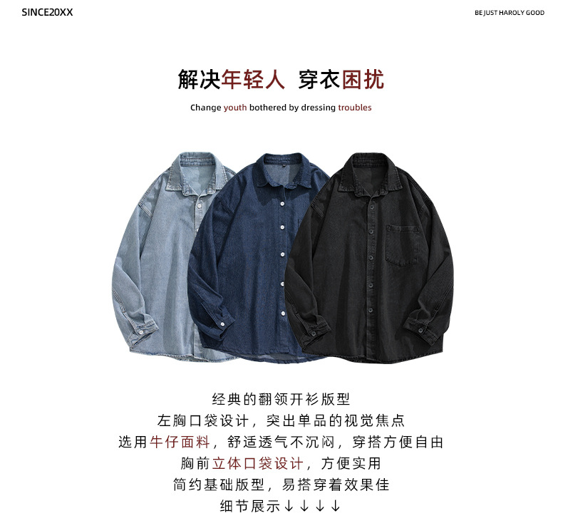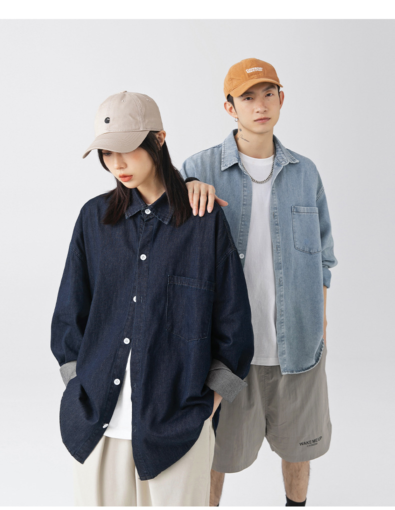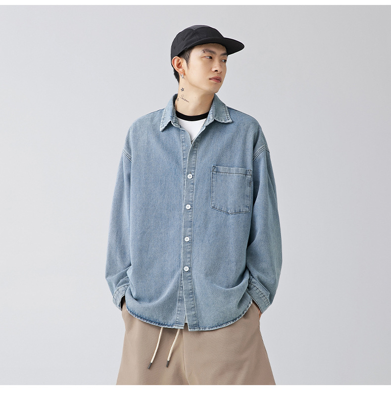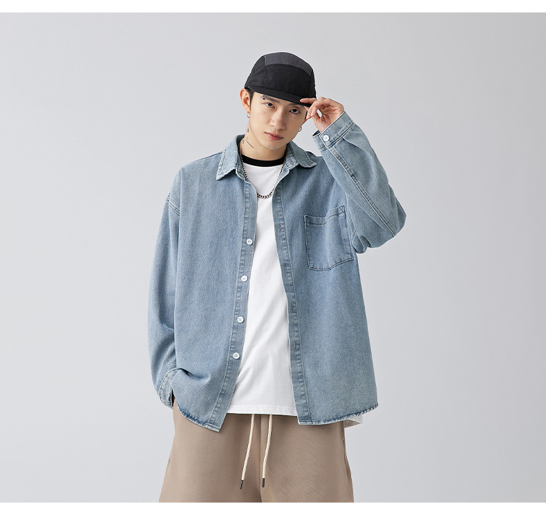 Ropa de hombre estilo coreano y japonés, camisa vaquera vintage para hombre, nuevo estilo primavera 2025, chaqueta camisa holgada lavada para parejas.
