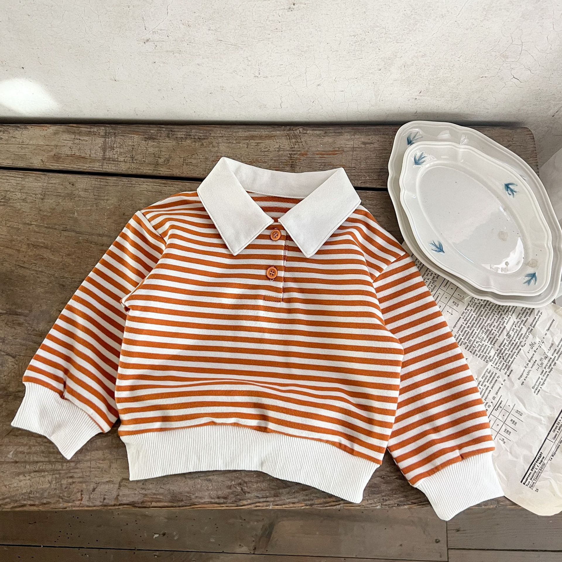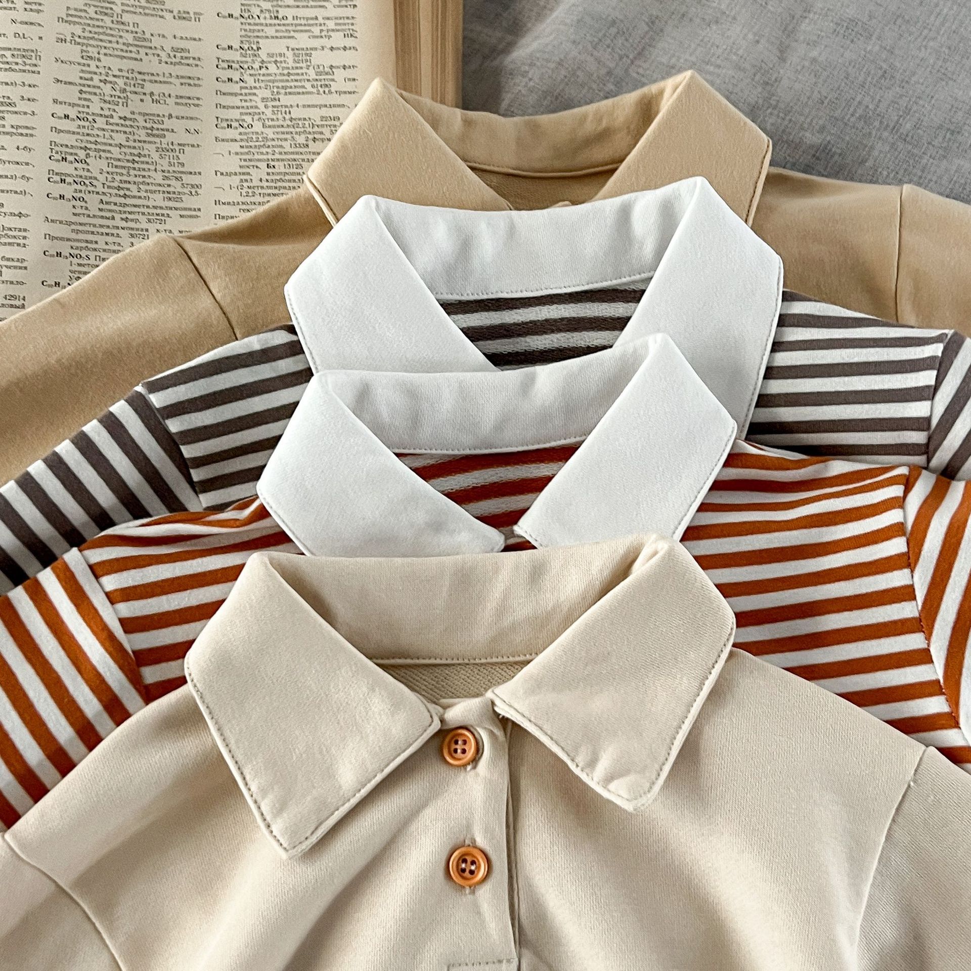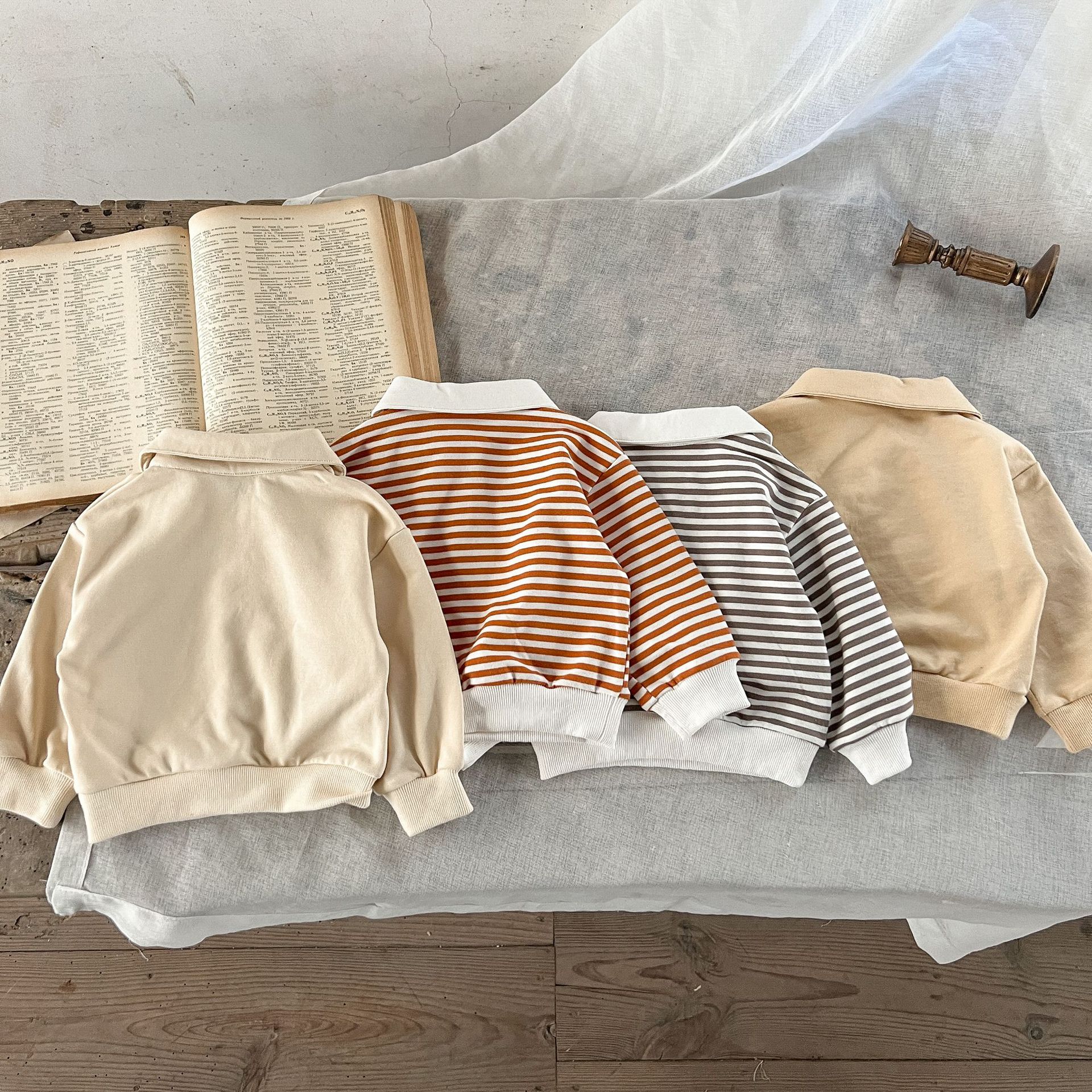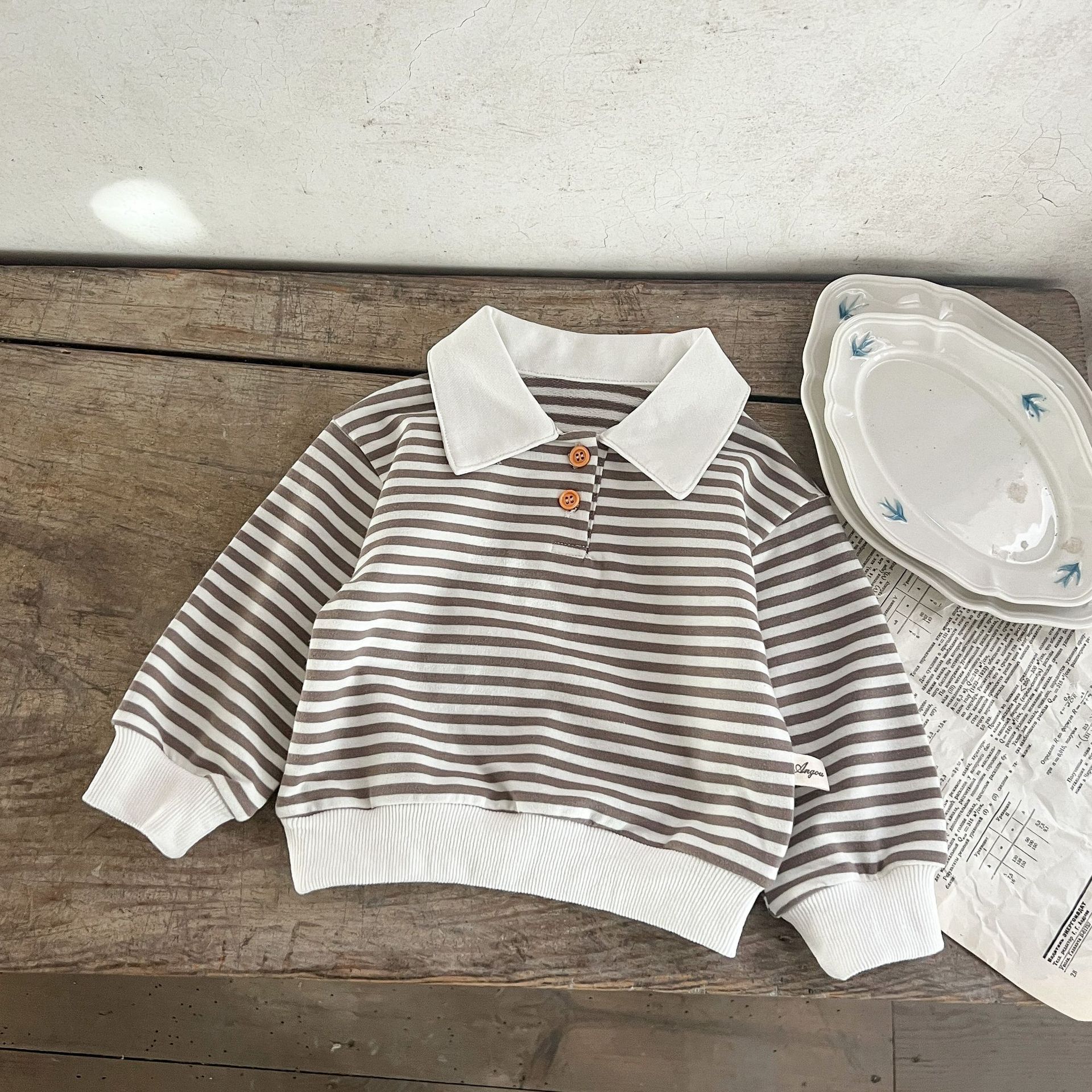 Estilo coreano ins suéter rayado del bebé neutral de los hombres flojos y niñas cuello POLO primavera superior